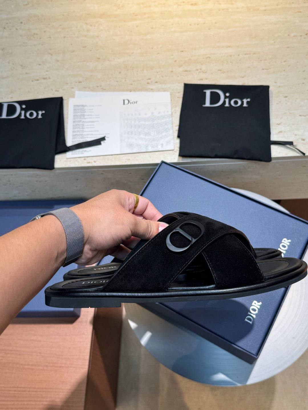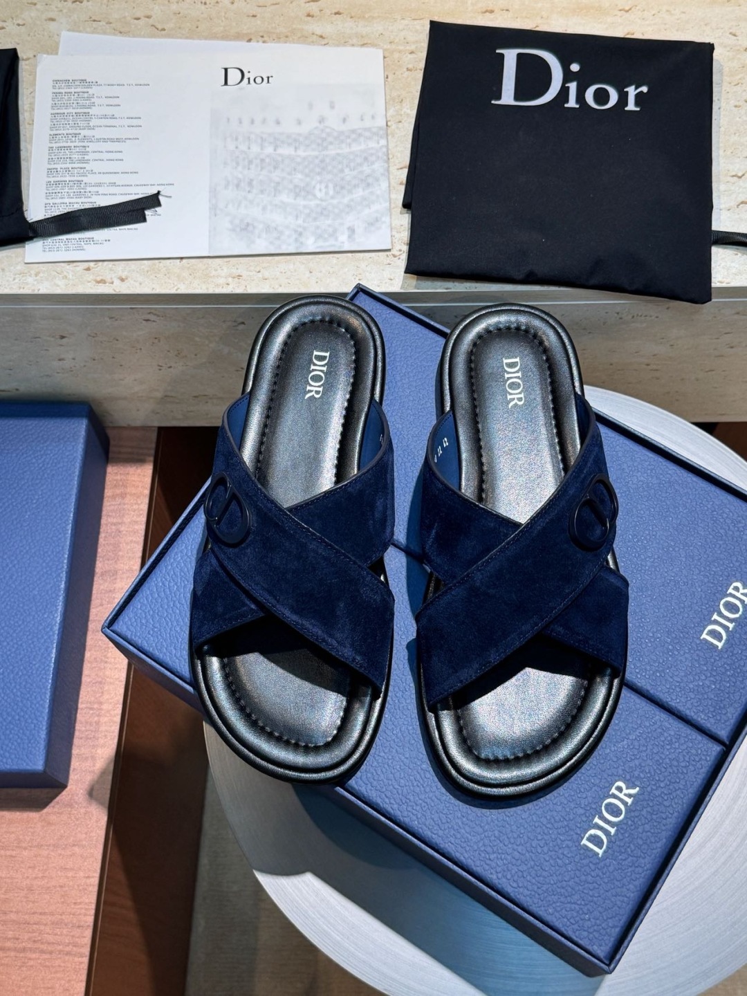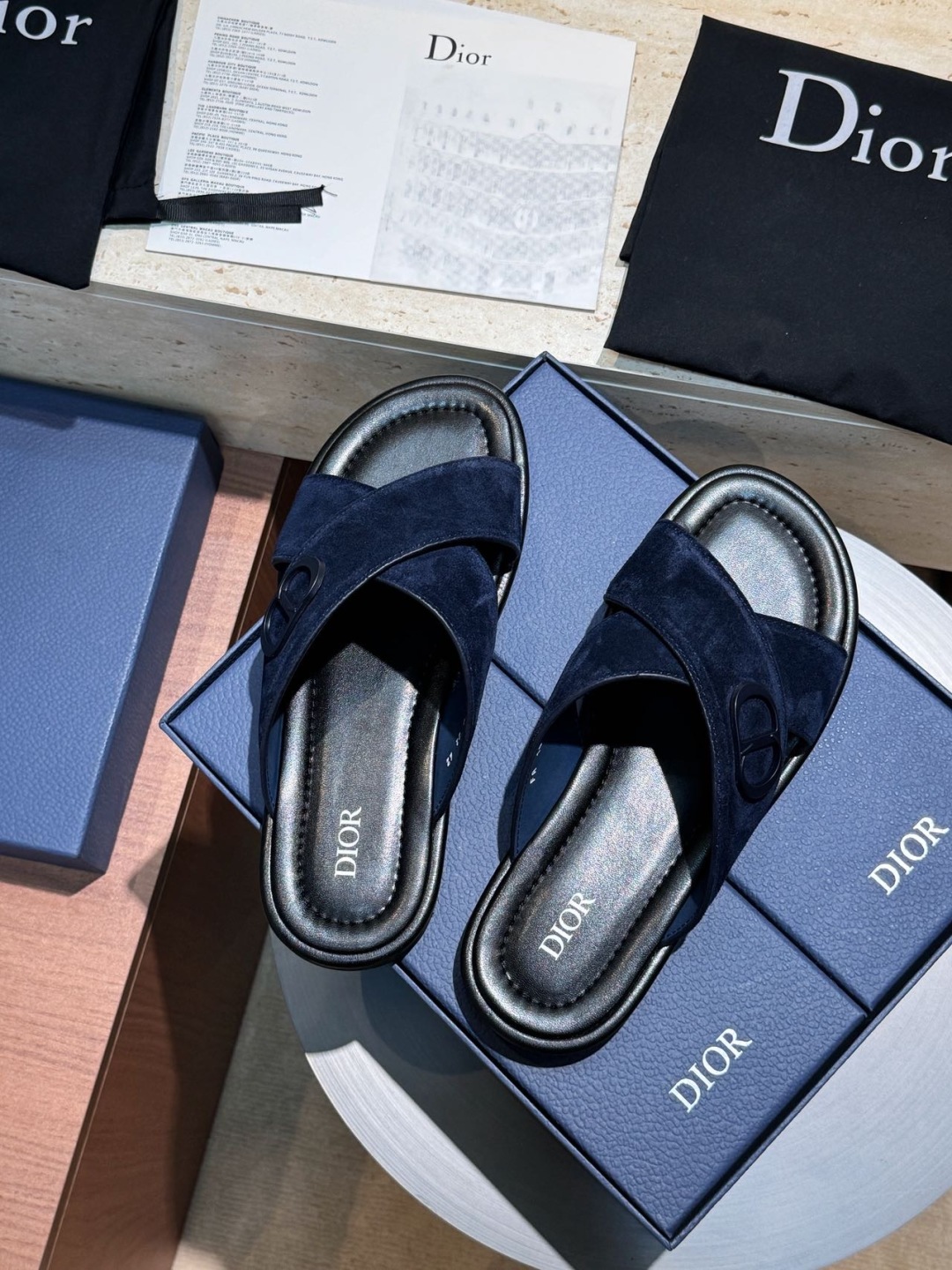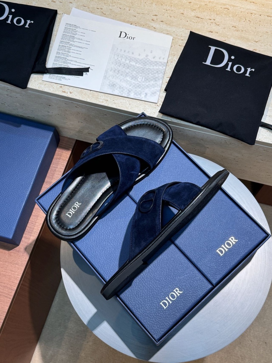 Стильные и элегантные тапки-шлёпанцы Dior — воплощение премиального комфорта и утончённого дизайна. Модель выполнена из высококачественной натуральной замши и кожи с фактурной поверхностью, что обеспечивает долговечность и приятные тактильные ощущения. Крестовые ремешки украшены фирменным логотипом Dior, придавая обуви узнаваемый и статусный вид.