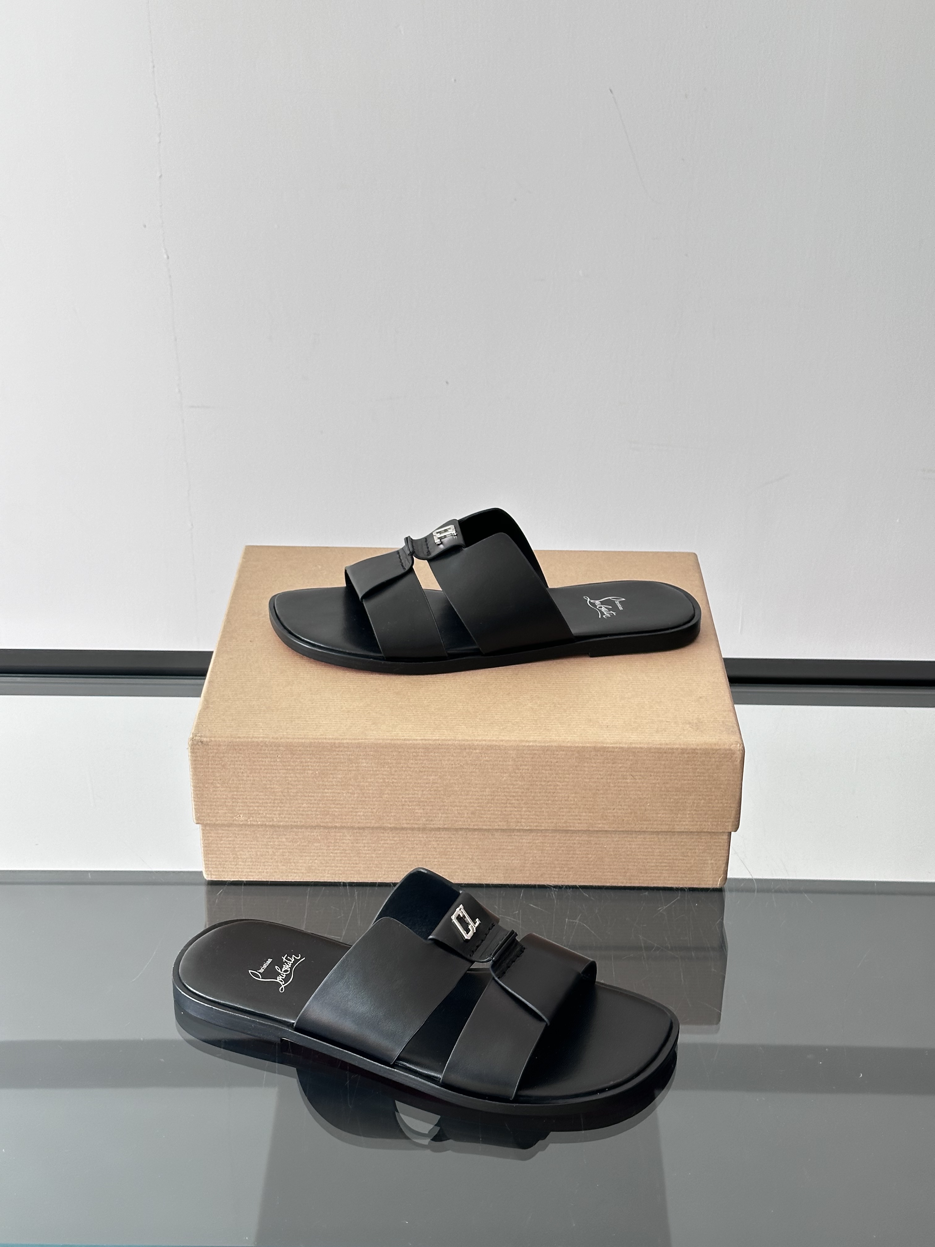 CHRISTIAN LOUBOUTIN Мужские шлёпанцы из кожи