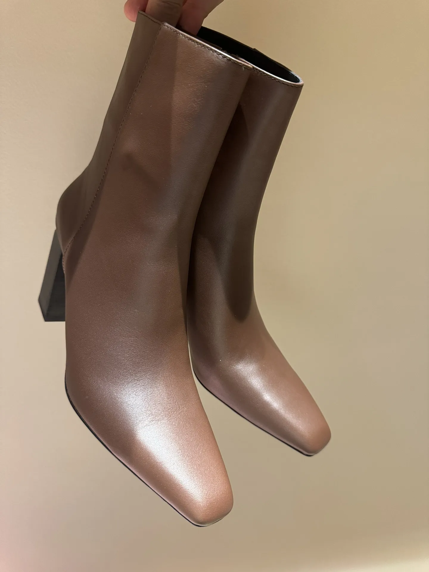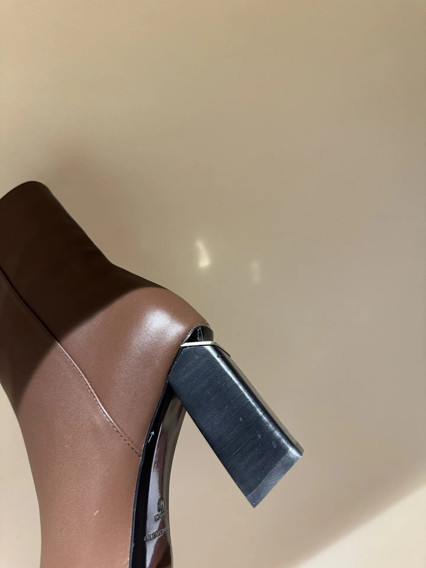 Новые осенне-зимние короткие сапоги на высоком каблуке с застежкой-молнией представляют собой идеальное сочетание стиля и комфорта. Эти сапоги выполнены из оригинальной импортной телячьей кожи, что обеспечивает высокое качество и долговечность. Внутренняя набивка из овчины гарантирует тепло и комфорт в холодное время года. Подошва из натуральной кожи добавляет элегантности, а высота каблука в 8,5 см создает эффектный силуэт, придавая образу изысканность.