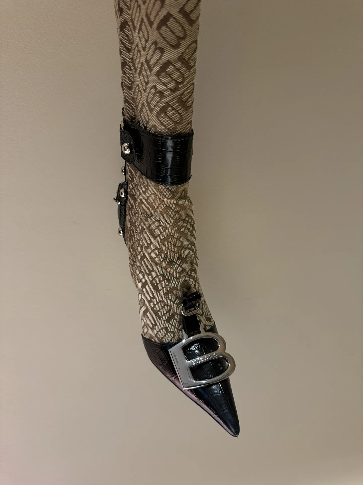 Эти высокие сапоги Balenciaga - это воплощение модного и дерзкого стиля. Изготовленные из прочной коровьей кожи, они имеют острый носок и молнию по бокам, что делает их идеальным выбором для создания модного образа в мотоциклетном стиле. Внутренняя подкладка: смесовая овчина. Высота каблука: 10,5 см.