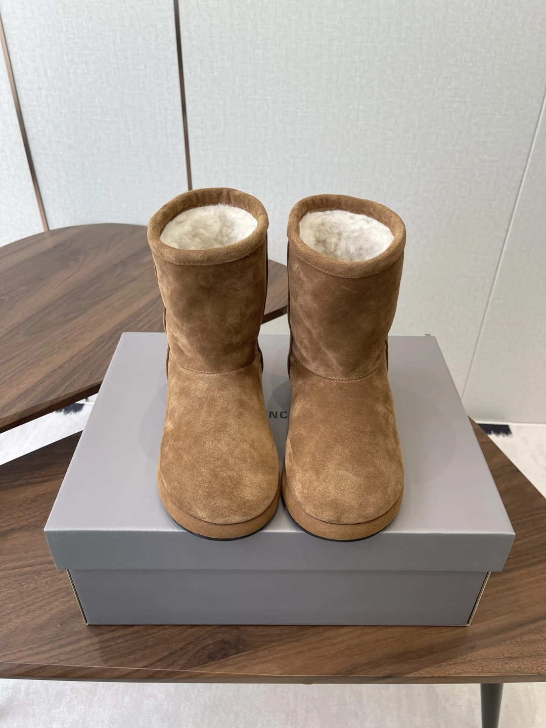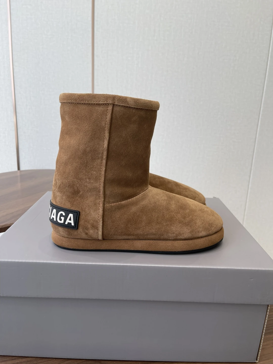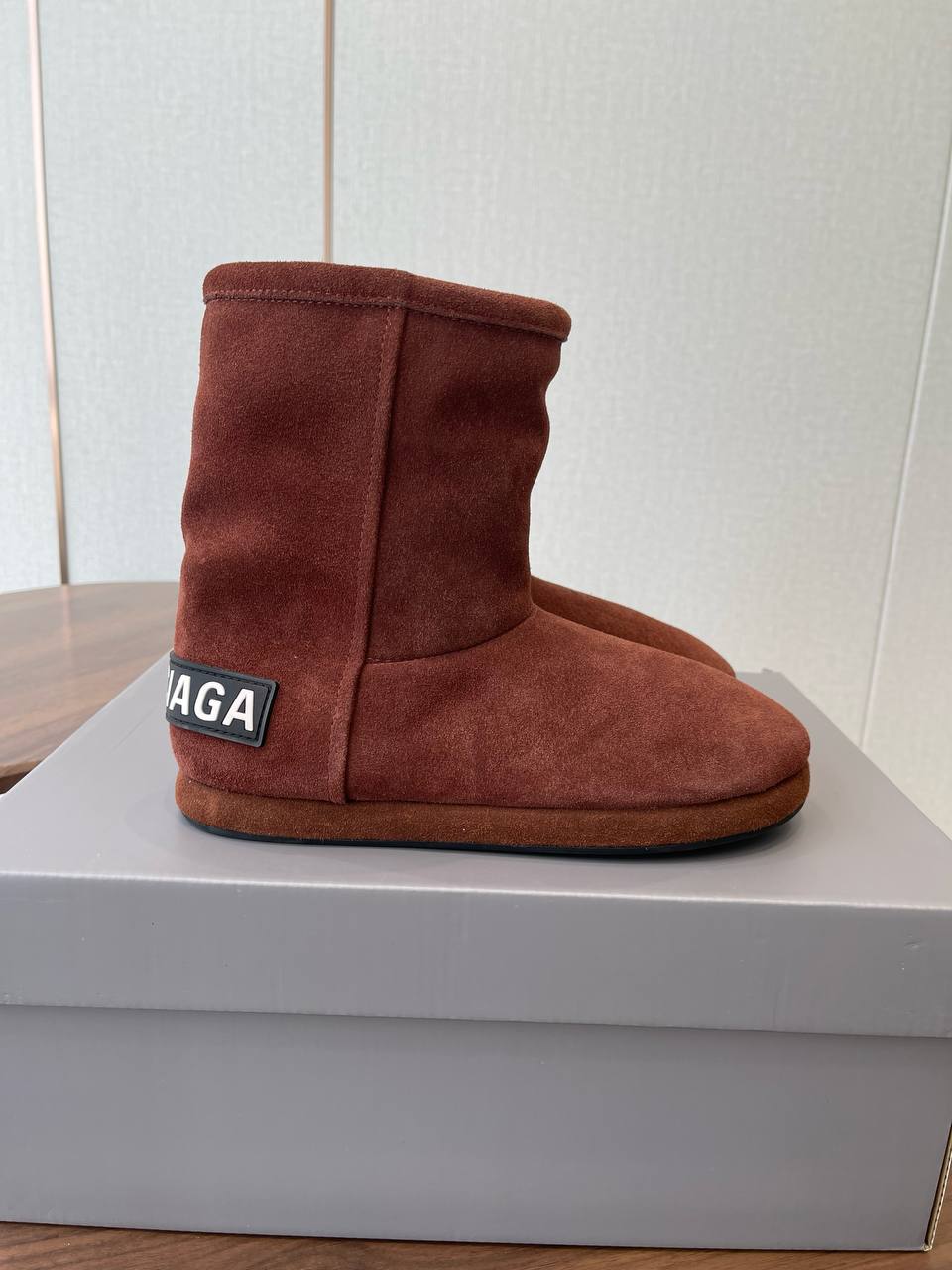 Классические женские угги в лаконичном минималистичном исполнении, представленные в глубокого черного цвета. Модель сочетает комфорт традиционных угг и премиальную эстетику Balenciaga: аккуратный замшевый внешний материал, густая меховая подкладка и фирменная нашивка сзади. Отличный вариант для холодного сезона — тепло и стильно.