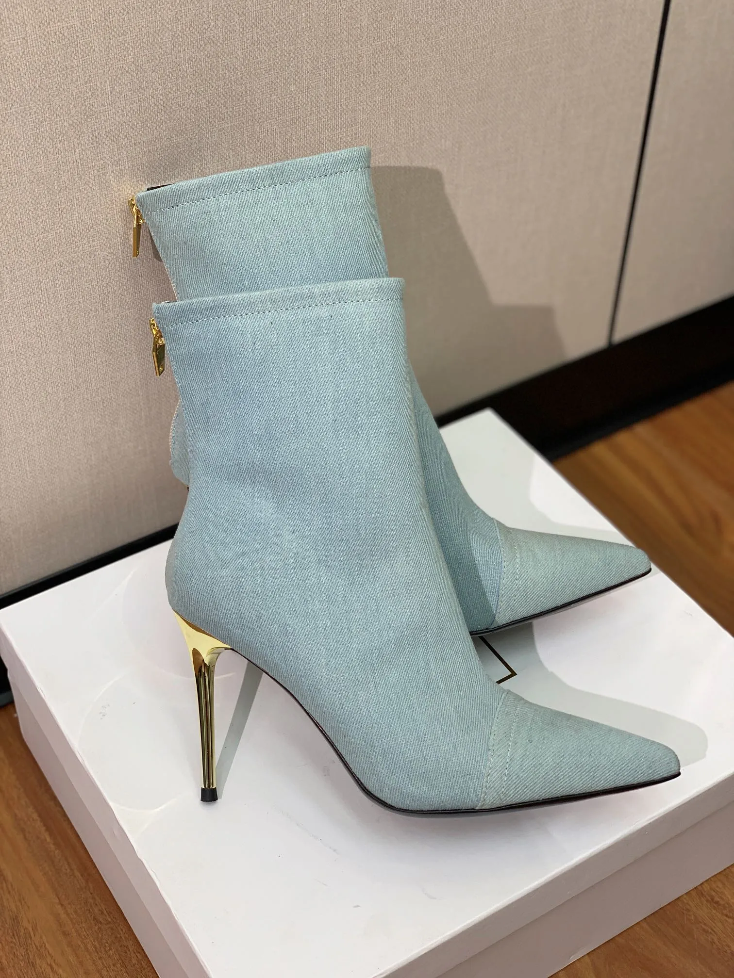 Эти короткие джинсовые сапоги выглядят как уникальное и стильное дополнение к любому образу. Их сочетание джинсовой ткани и воловьей кожи придает им оригинальность, а итальянская кожаная подошва гарантирует комфорт и долговечность. Высота каблука в 10,5 см идеально подойдет для создания женственного силуэта и добавит немного стиля в повседневные наряды.