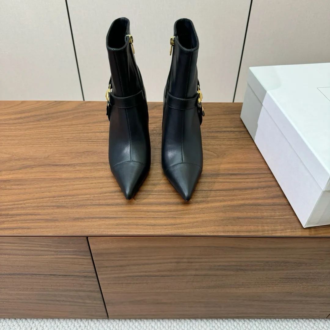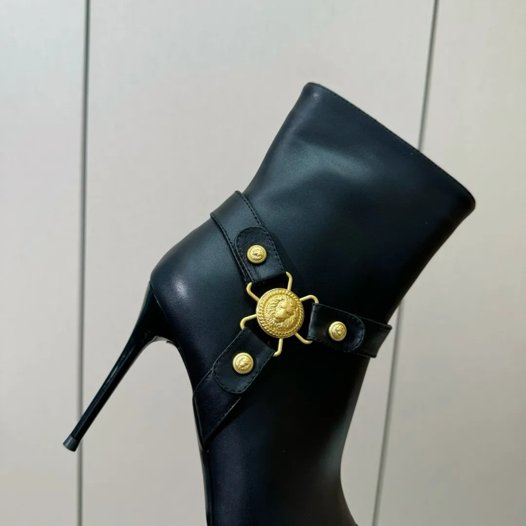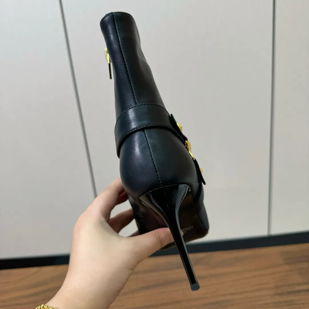 Короткие сапоги на высоком каблуке с металлической пряжкой и острым носком действительно выглядят стильно и элегантно. Высота каблука в 9,5 см придает женственности и утонченности образу, а использование импортной воловьей кожи обеспечивает не только презентабельный внешний вид, но и долговечность. Оригинальная литая металлическая пряжка добавляет оригинальности и акцента на детали, делая обувь по-настоящему уникальной.