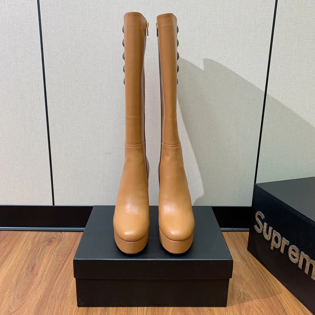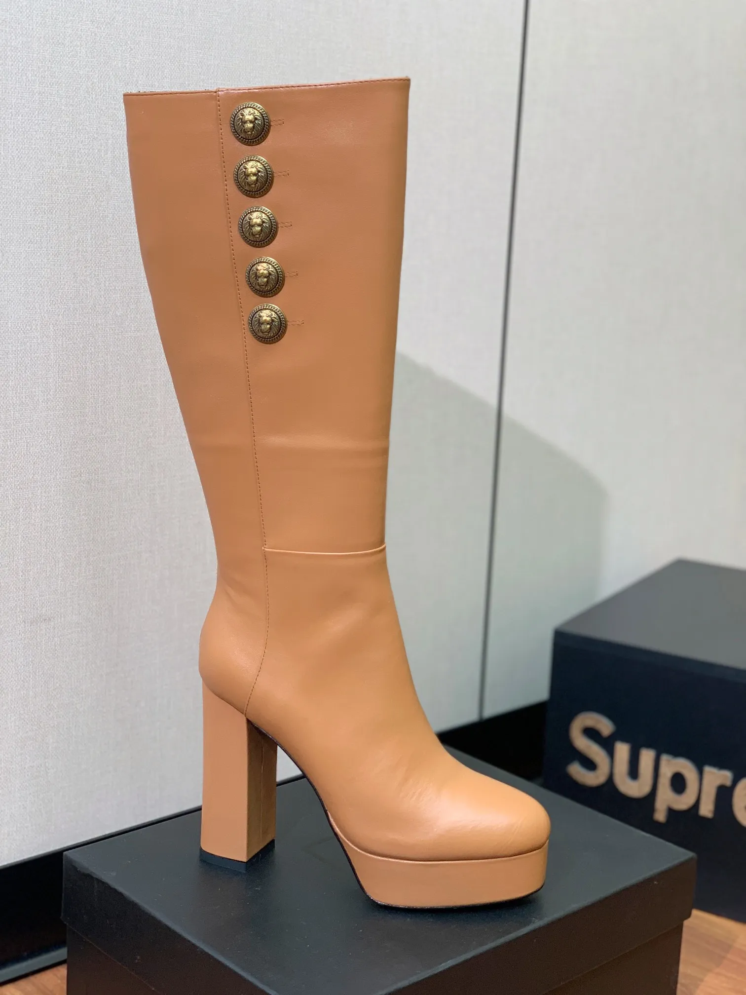 Уникальный дизайн этих сапог подчеркивает женственность и стиль, и делает их отличным выбором для особых случаев или вечерних выходов. Использование импортной коровьей кожи гарантирует высокое качество и долговечность. Оригинальная литая металлическая пряжка добавляет нотку изысканности и смелости в общий облик. Высота каблука в 11,5 см обеспечивает эффектный силуэт и визуально удлиняет ноги, а кожаная подошва обеспечивает комфорт при носке.