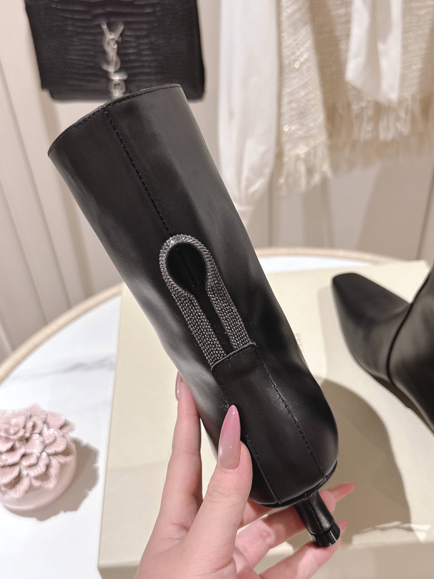• Каблук: низкий и изящный (5,5 см), подчёркивающий утончённость силуэта.