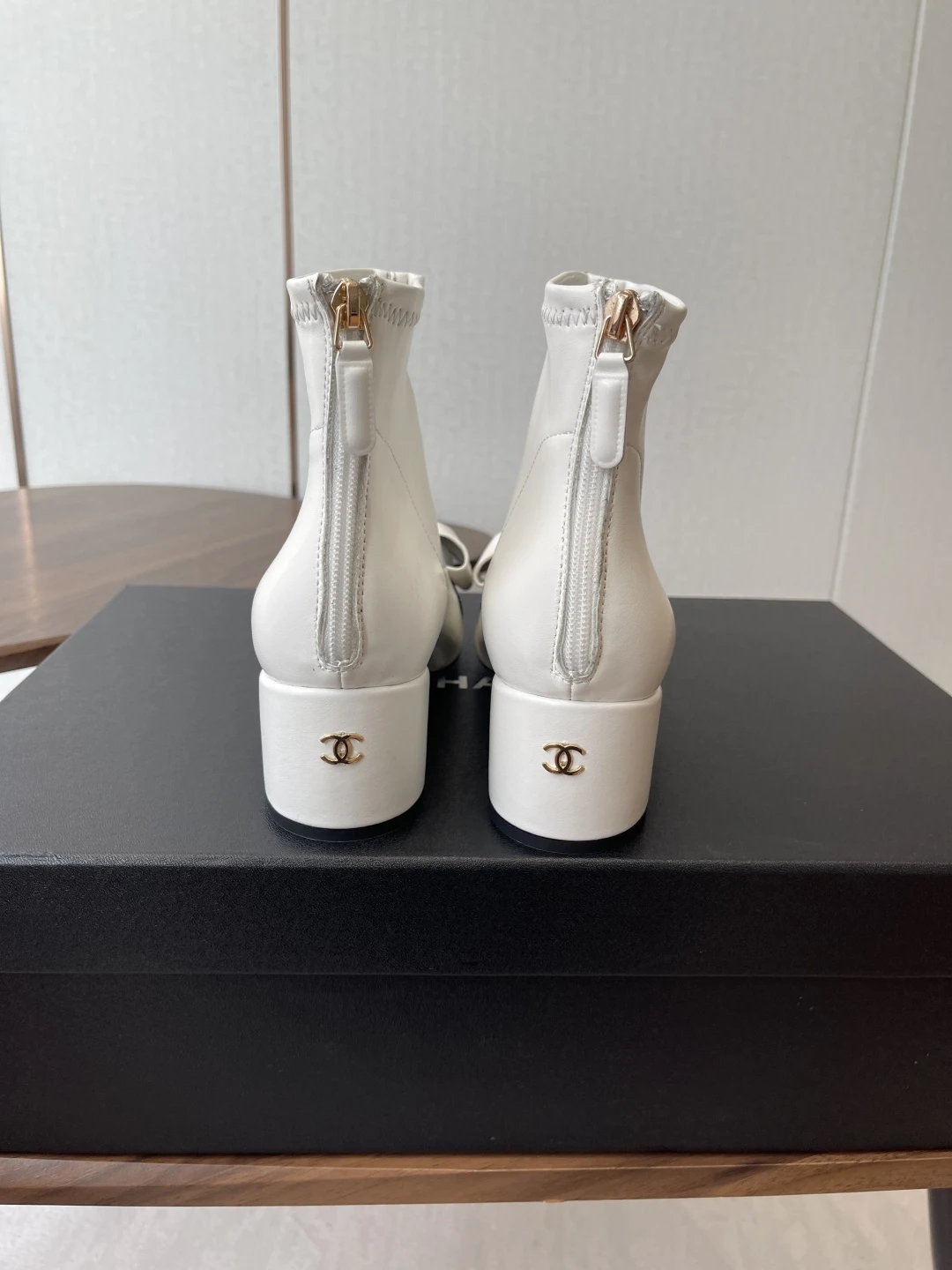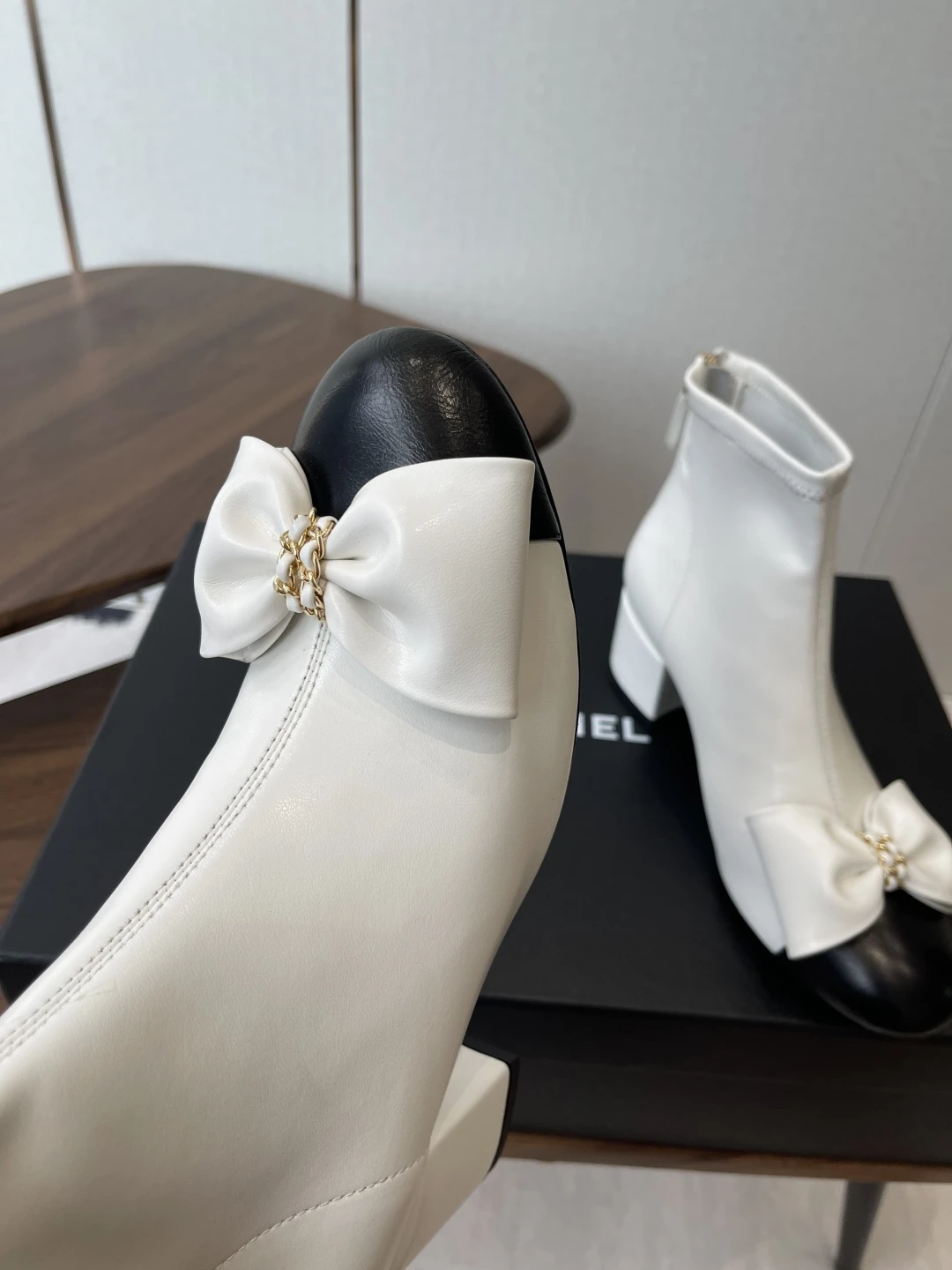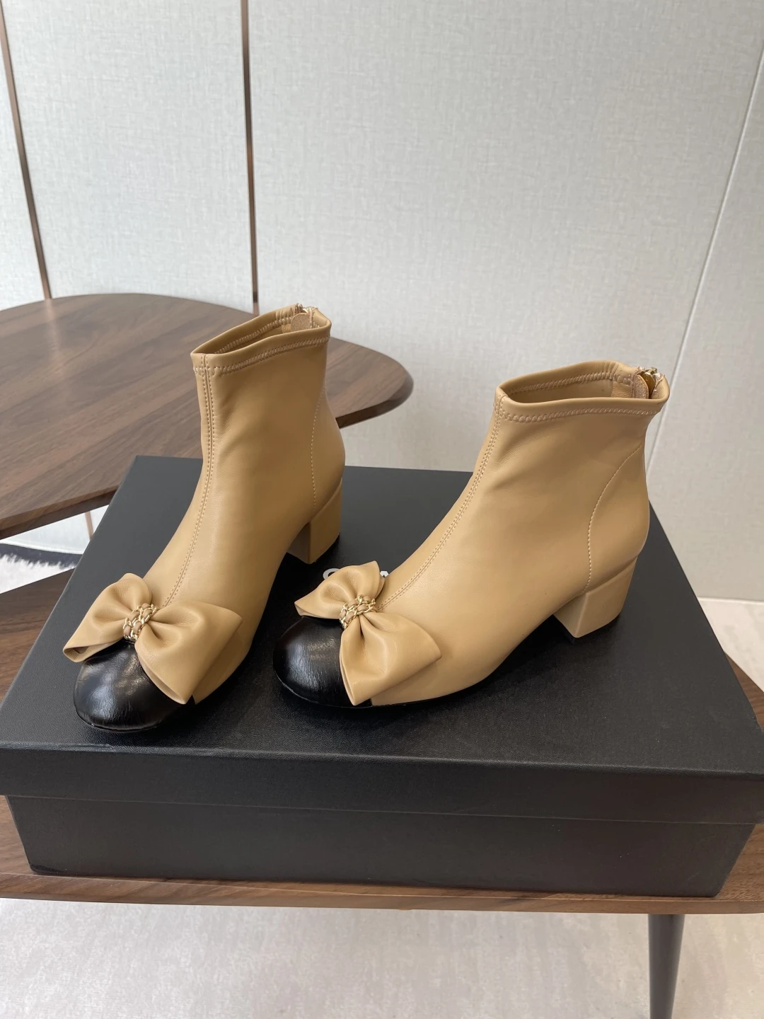 Элегантные ботильоны, выполненные из мягкой овчины, сочетают в себе изысканную женственность и повседневный комфорт. Стильный зауженный силуэт, аккуратный кожаный носок и декоративный бантик с золотистой цепочкой создают утончённый образ, идеально подходящий как для делового гардероба, так и для вечерних выходов.