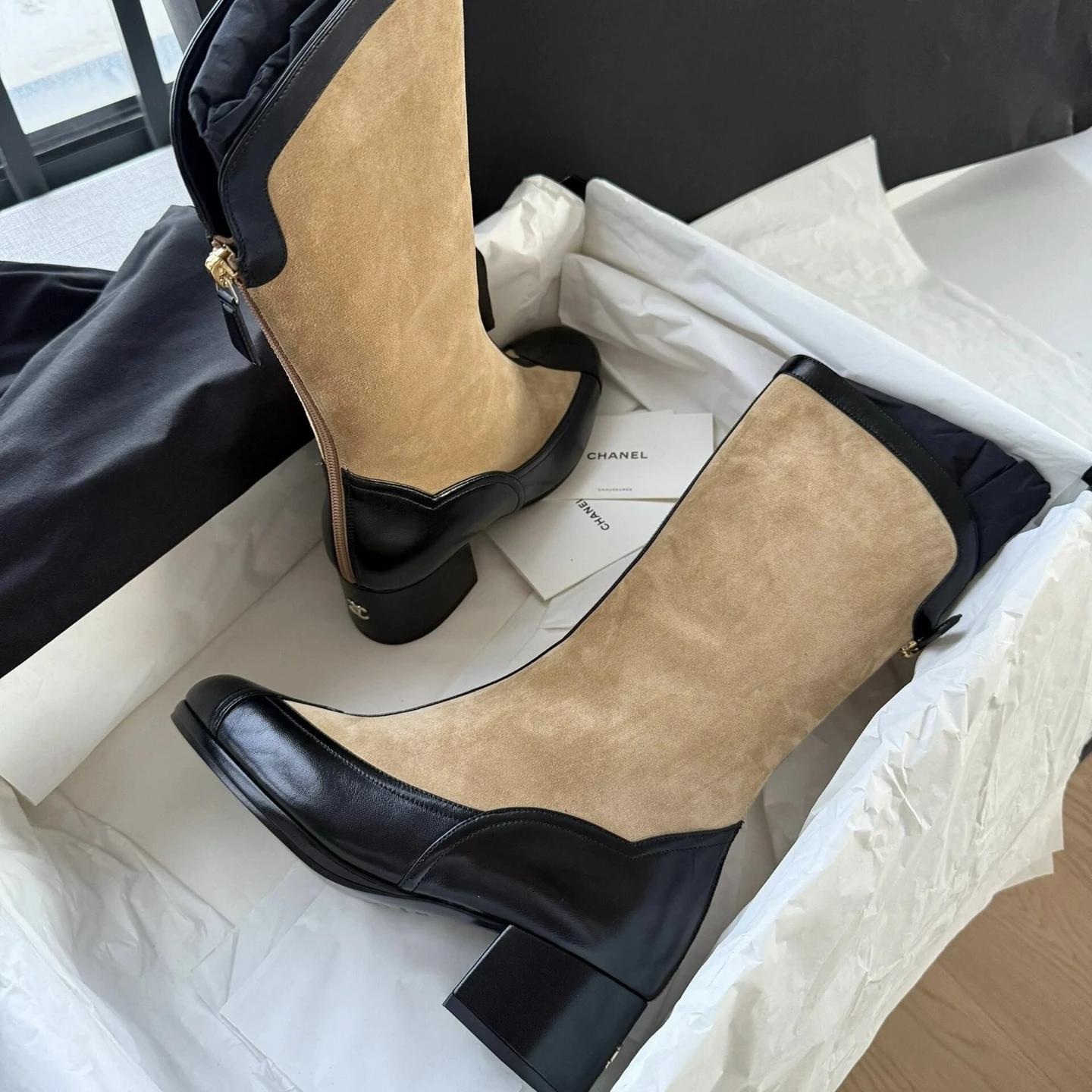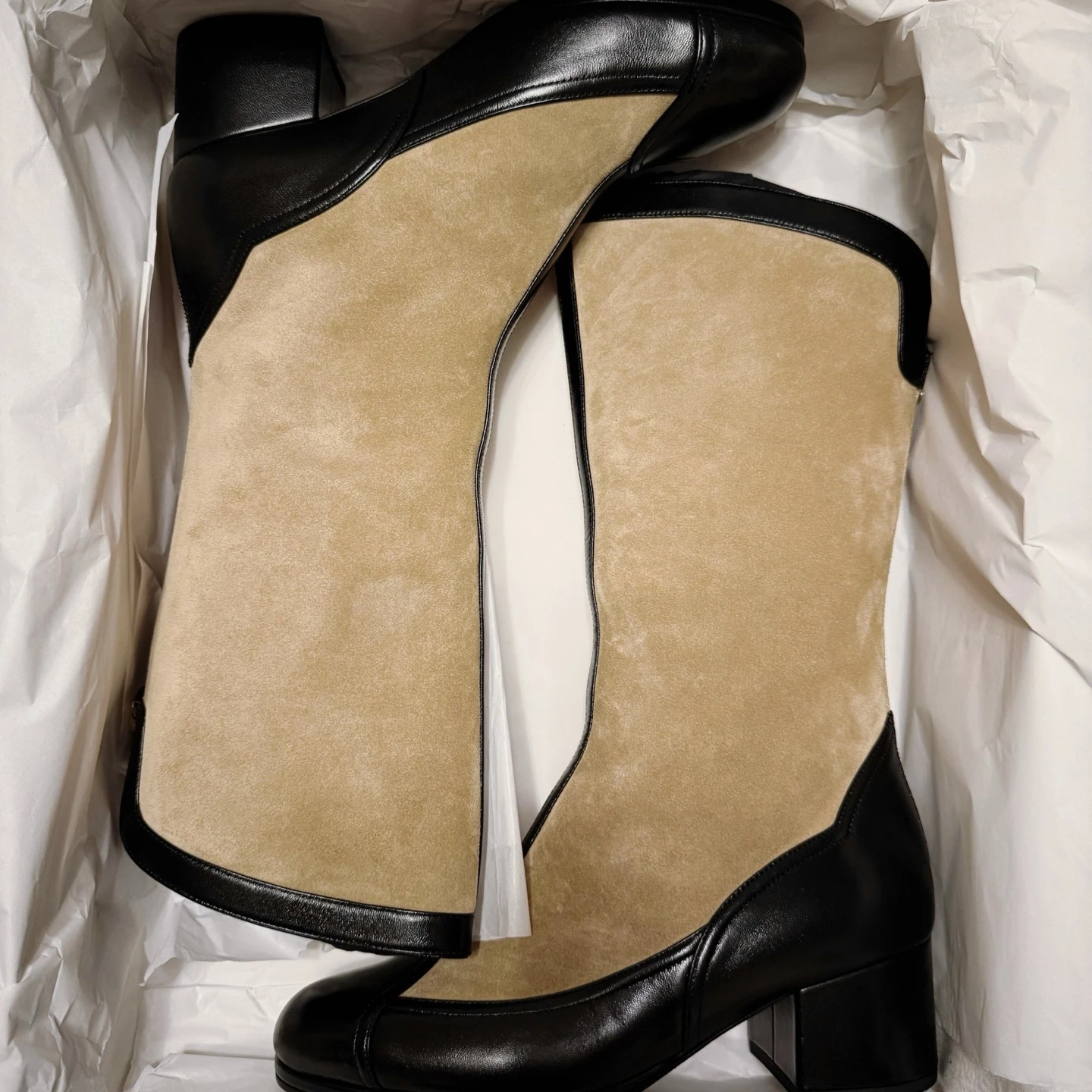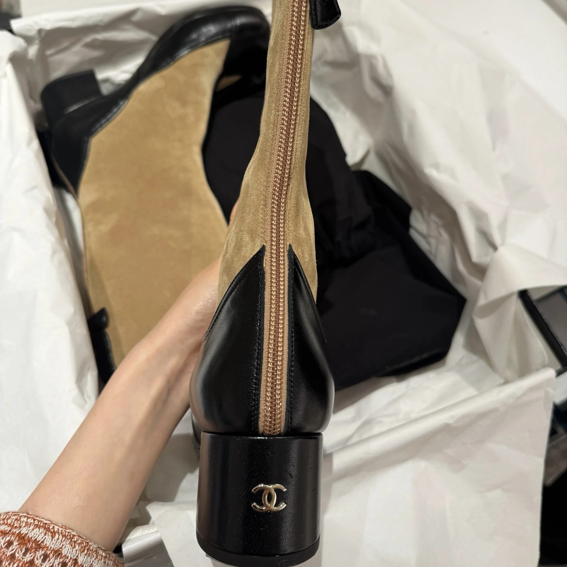 CHANEL Женские сапоги из замши и кожи