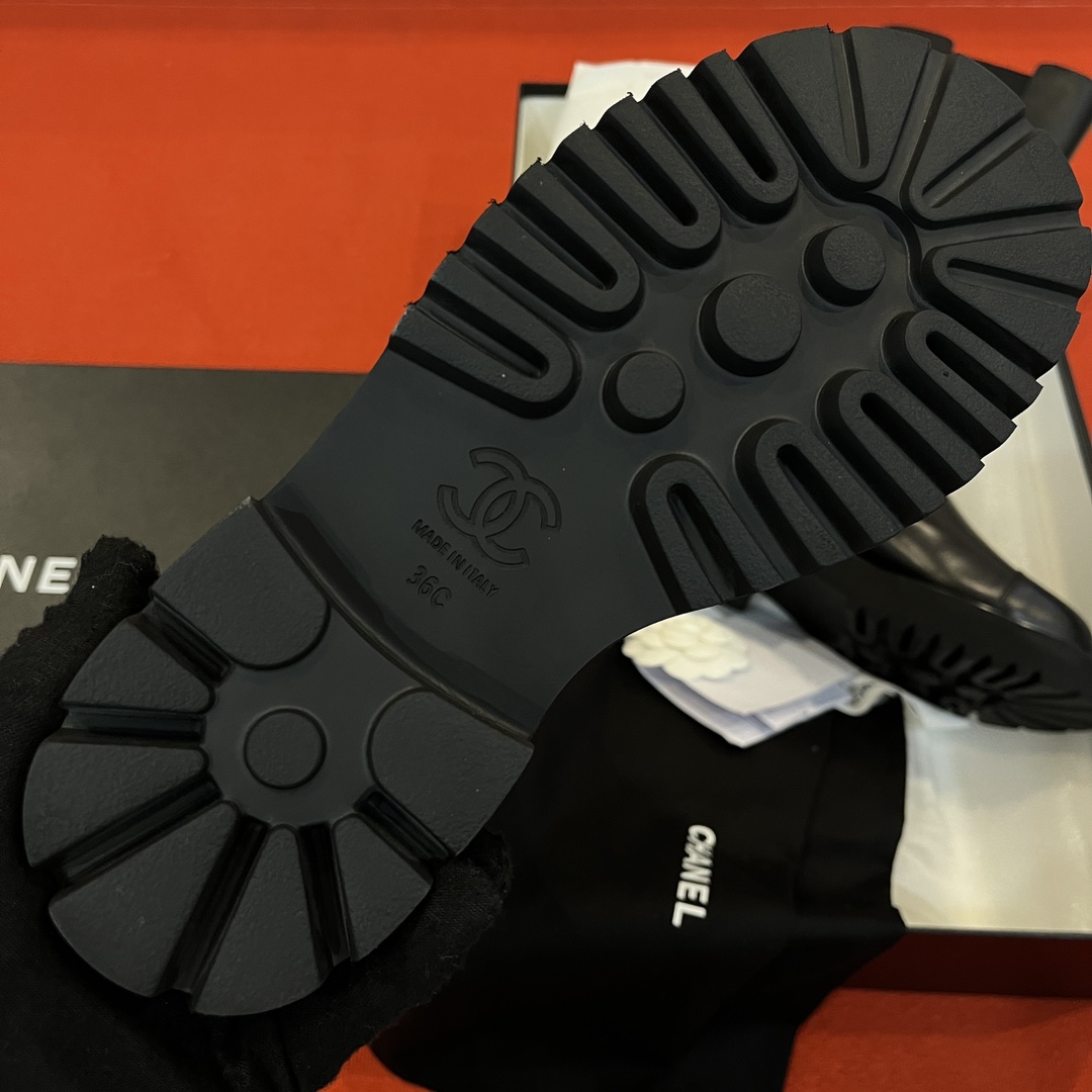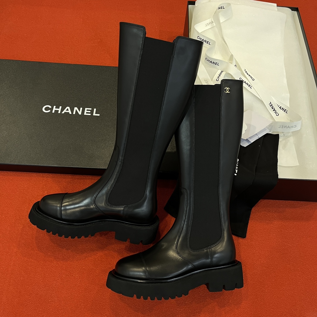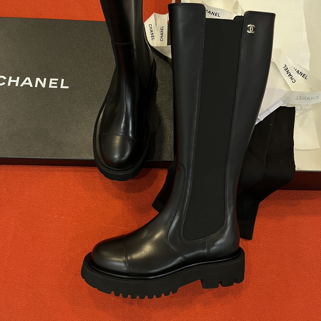 Лаконичный чёрный цвет подходит к любому гардеробу, а изящный минималистичный дизайн отражает фирменную эстетику Дома Chanel. Прямая высокая голенище визуально вытягивает силуэт, красиво подчёркивая ноги, а качественная внутренняя отделка обеспечивает максимальный комфорт при носке.