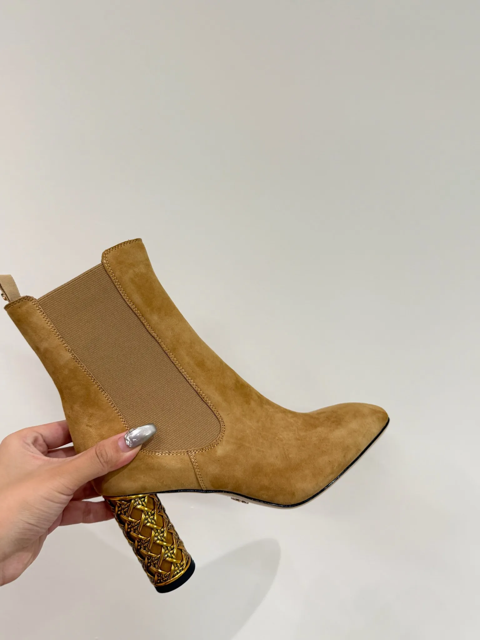 Женские ботильоны CHRISTIAN DIOR на толстом каблуке — это воплощение элегантности и стиля. Их лаконичный дизайн без лишних украшений подчеркивает утонченность, делая обувь универсальным элементом гардероба. Изготовленные из высококачественной коровьей кожи, они обеспечивают комфорт и долговечность. Эластичная конструкция позволяет ботильонам идеально адаптироваться к различным размерам ног, обеспечивая надежную посадку. Уникальный дизайн каблука создает эффект роскоши, словно окружая вас золотым сиянием. Подошва из натуральной кожи, импортированной из Италии, добавляет дополнительный уровень качества и стиля. Эти ботильоны станут отличным выбором для любого случая, сочетая в себе комфорт и шик.