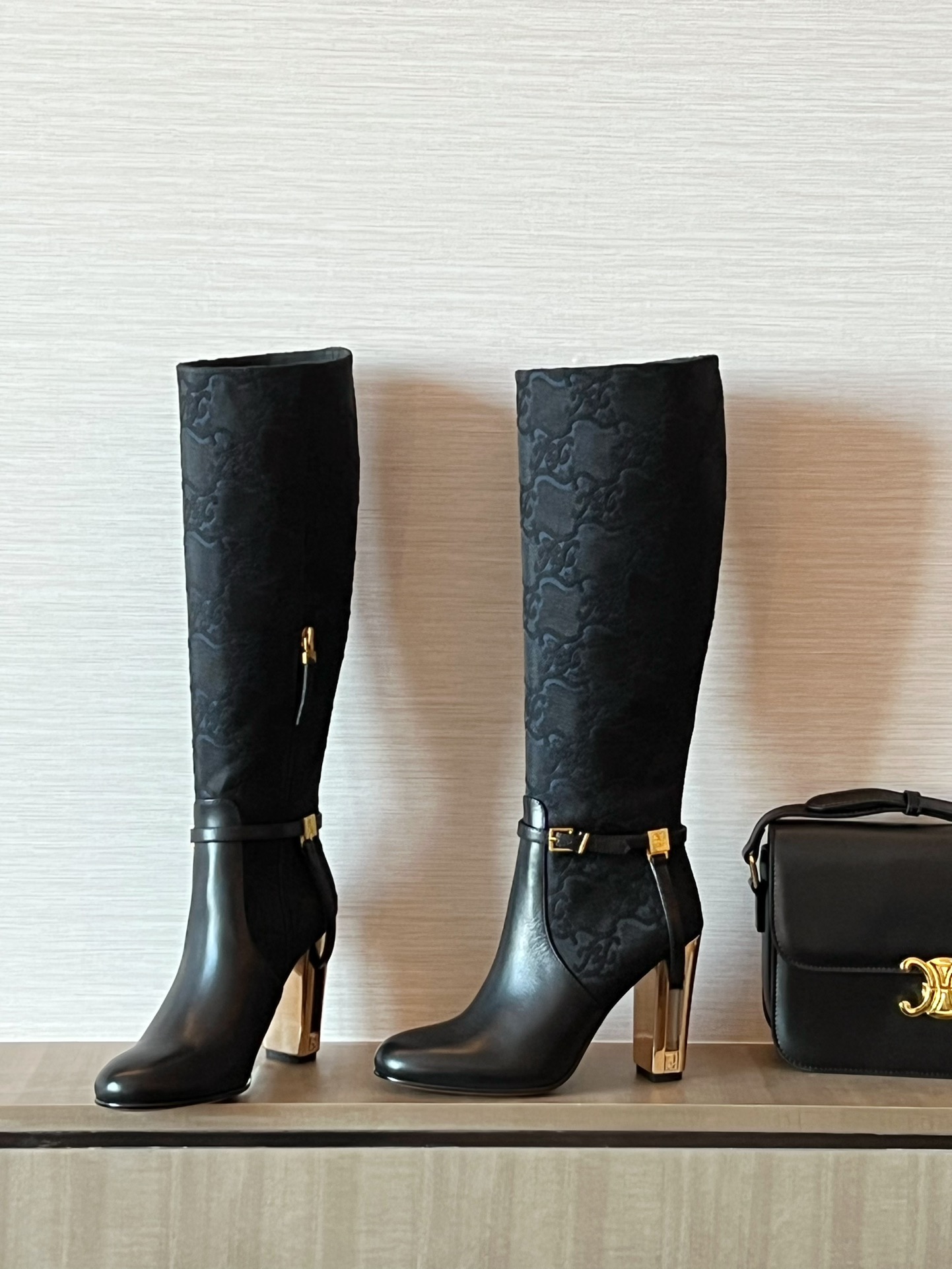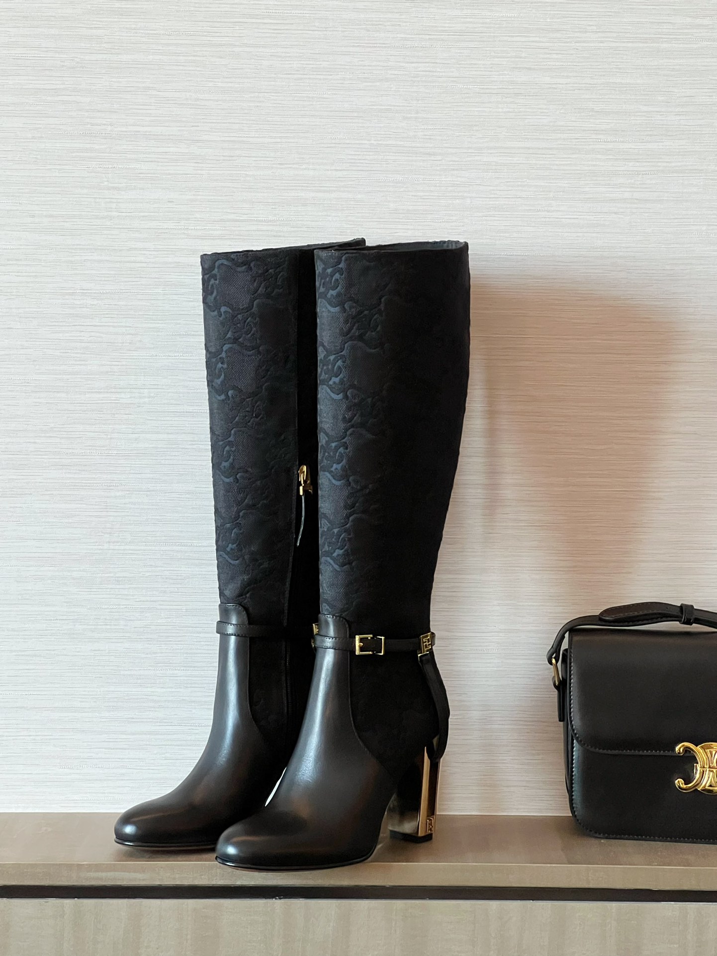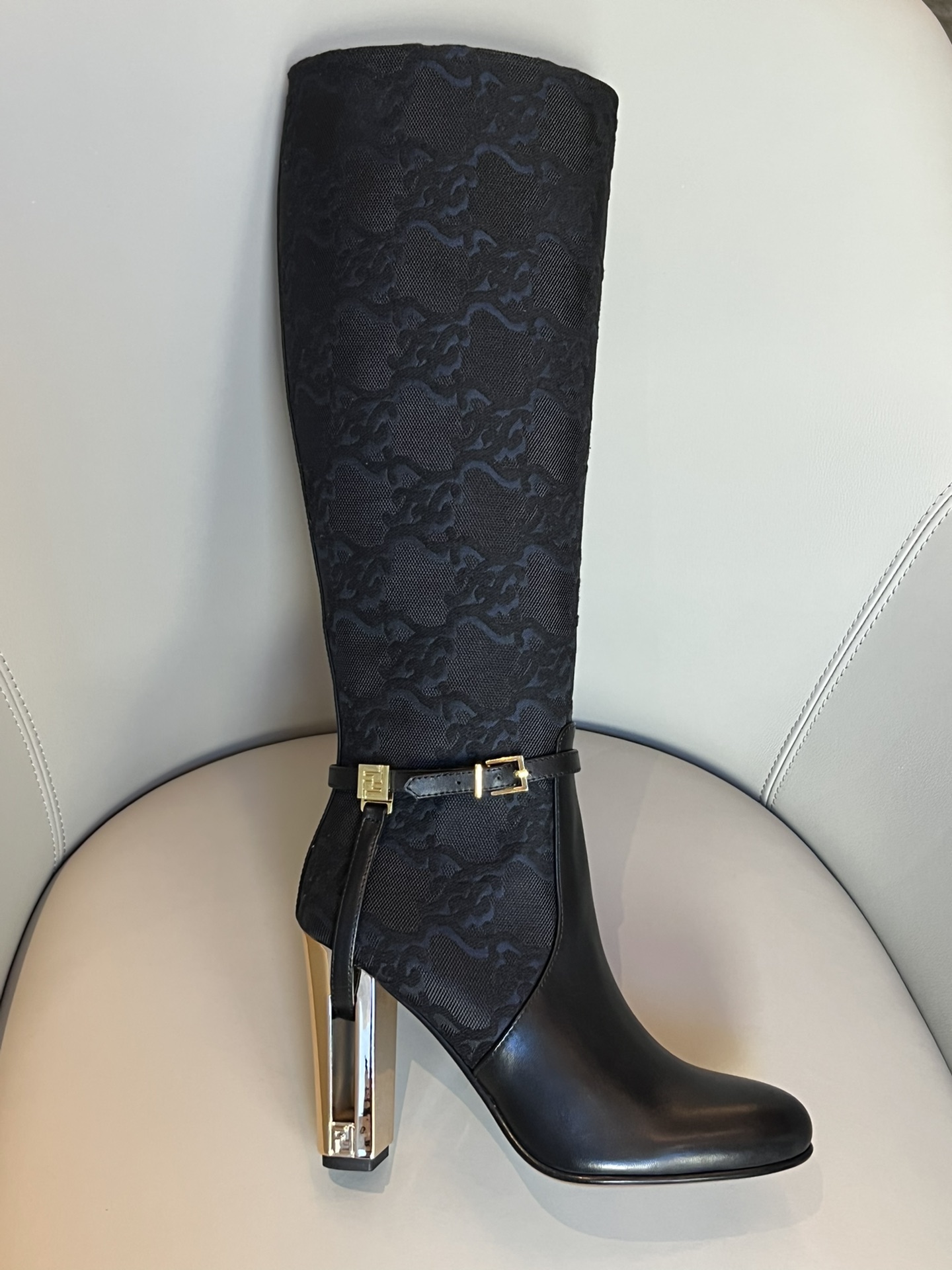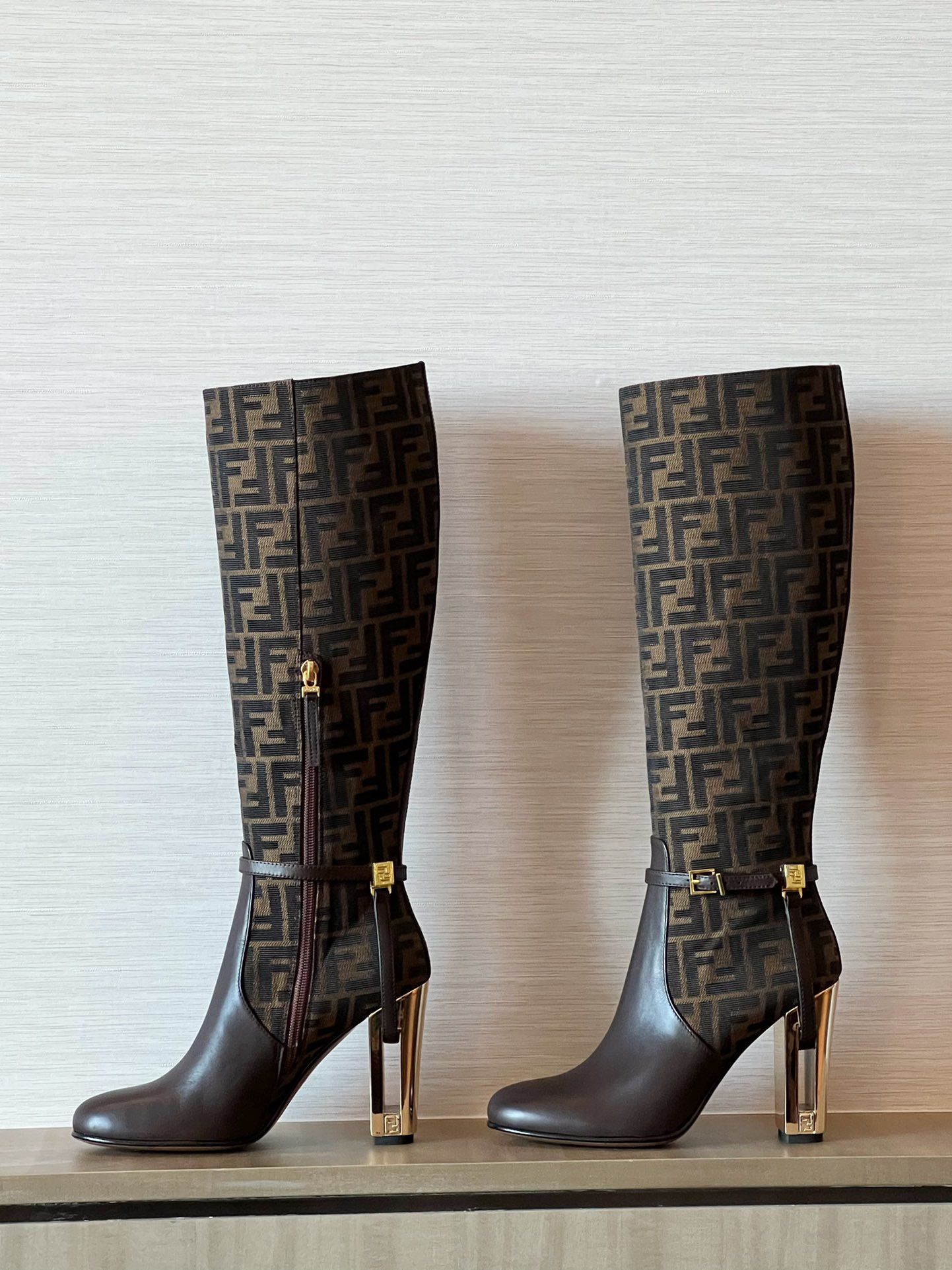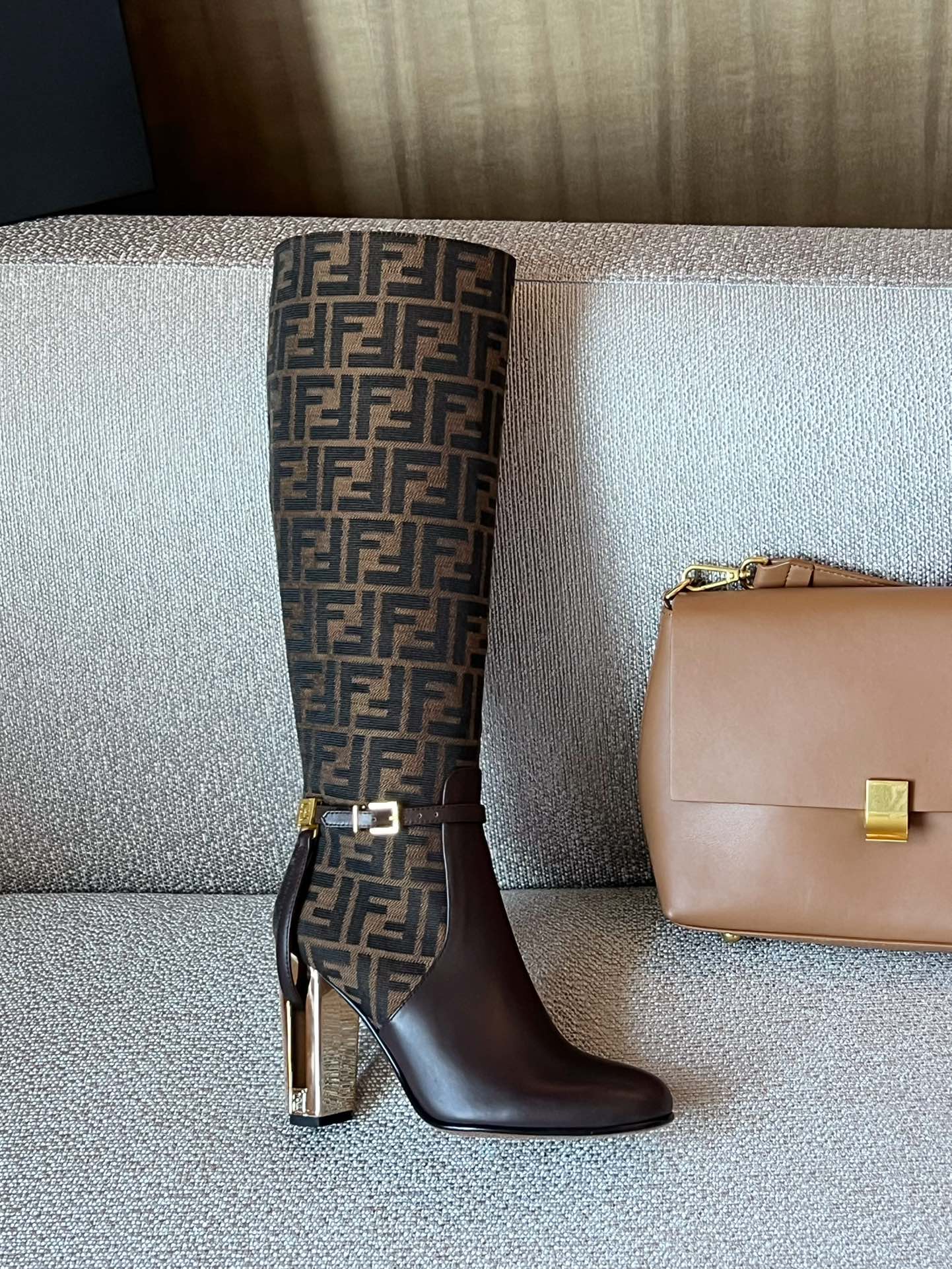 Погрузитесь в мир итальянской роскоши с женскими сапогами Fendi Delfina. Эффектное сочетание высококачественной гладкой кожи и премиального жаккарда придаёт паре особую глубину и фактуру. Элегантный силуэт подчеркивает линию ноги, а устойчивый каблук с золотистыми акцентами добавляет женственности и изысканности.