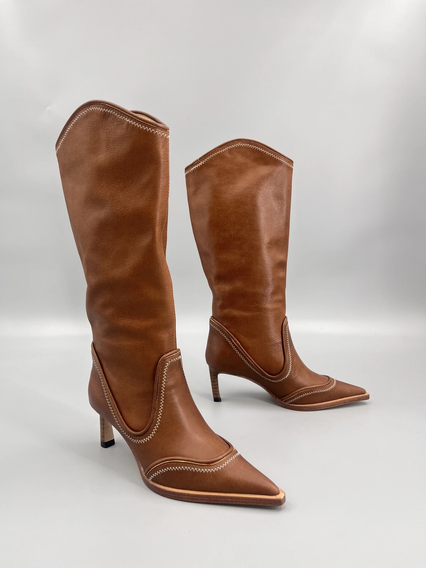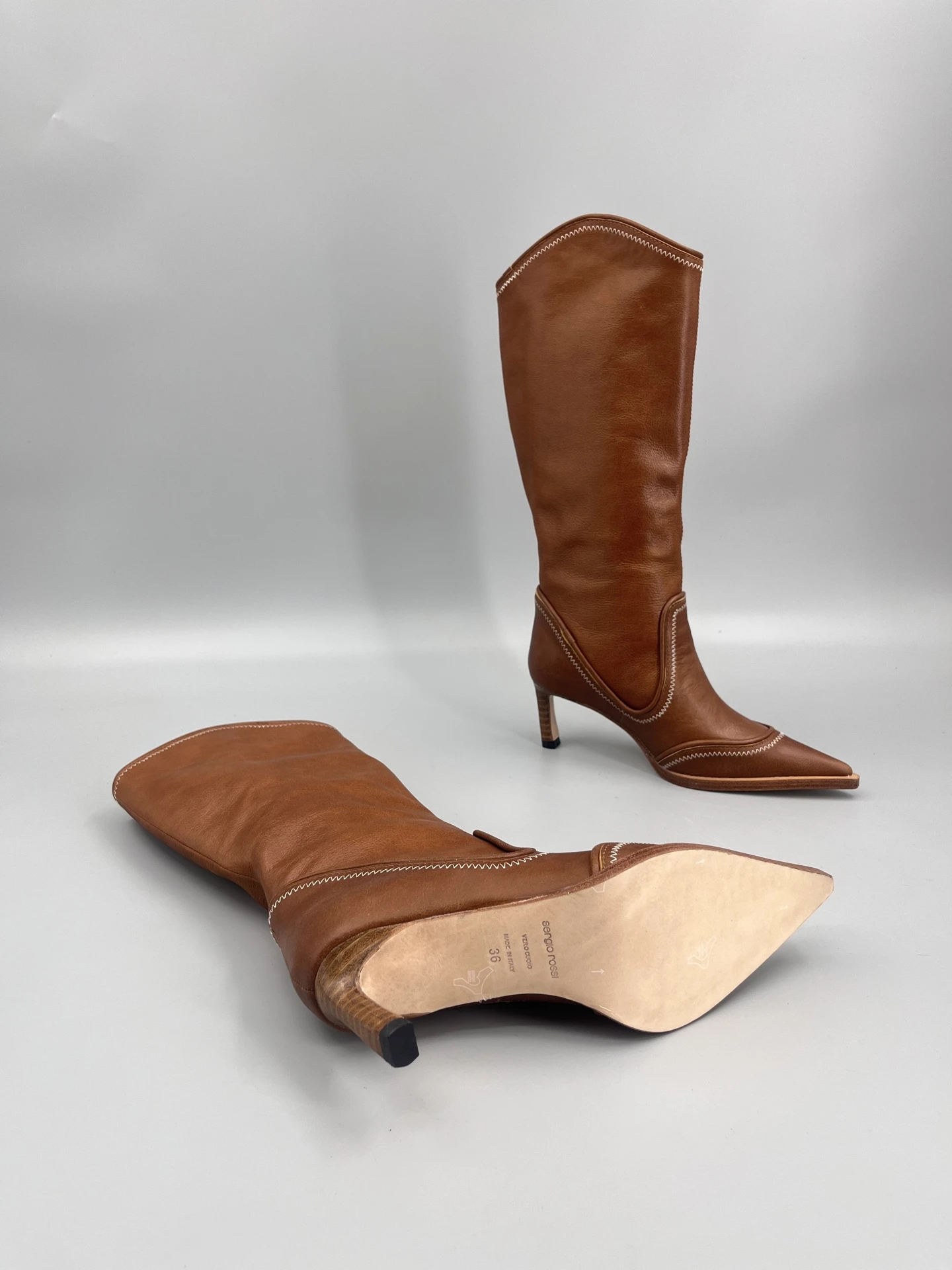 Добавьте изысканности вашему образу с сапогами Gianvito Kossi. Модель выполнена из высококачественной кожи, что подчеркивает их роскошный вид. Заостренный мысок и каблук средней высоты придают сапогам женственность и визуально вытягивают силуэт. Уникальный дизайн голенища с плавными линиями делает эту пару идеальным выбором для современных модниц, ценящих стиль и комфорт.