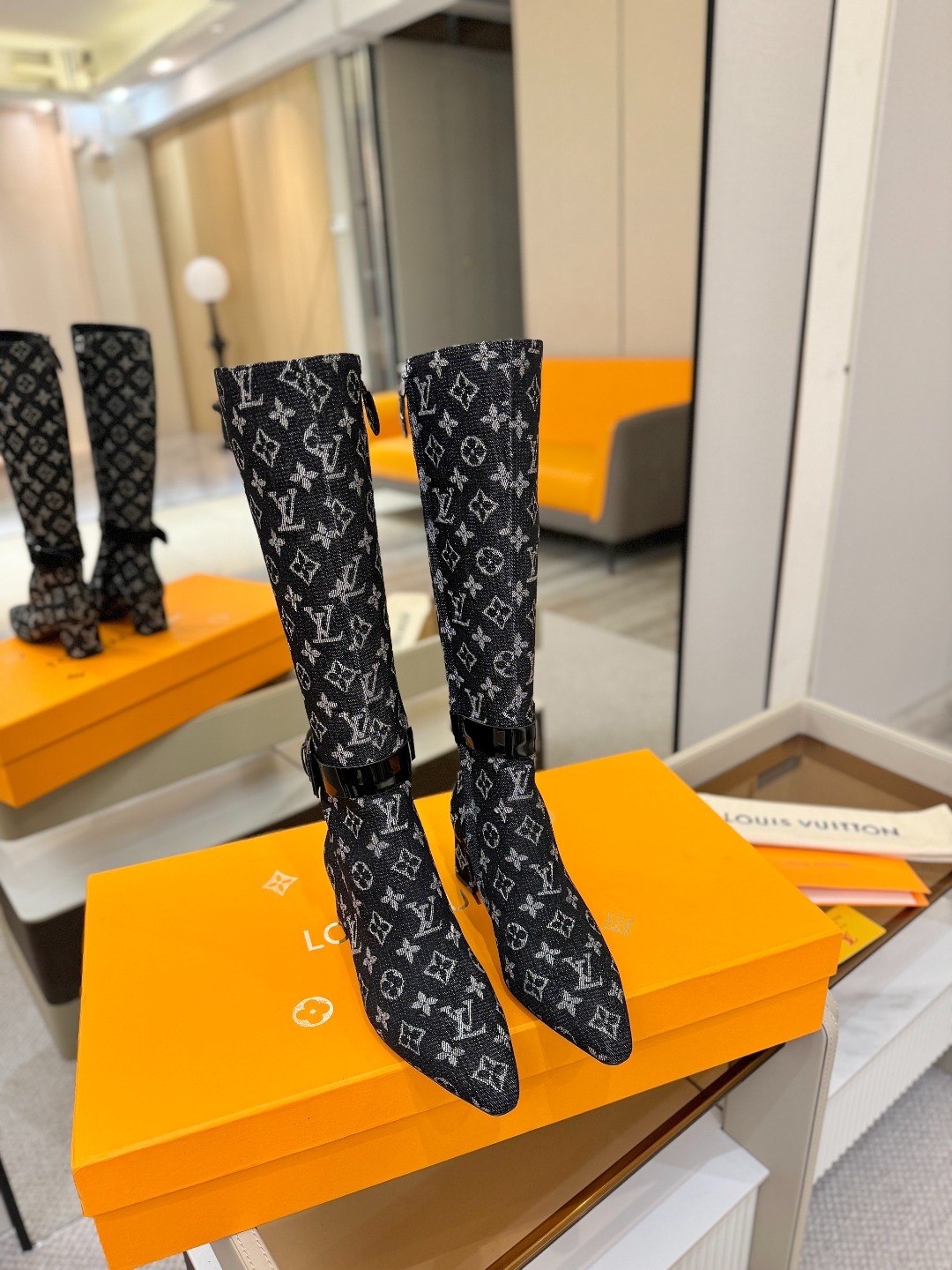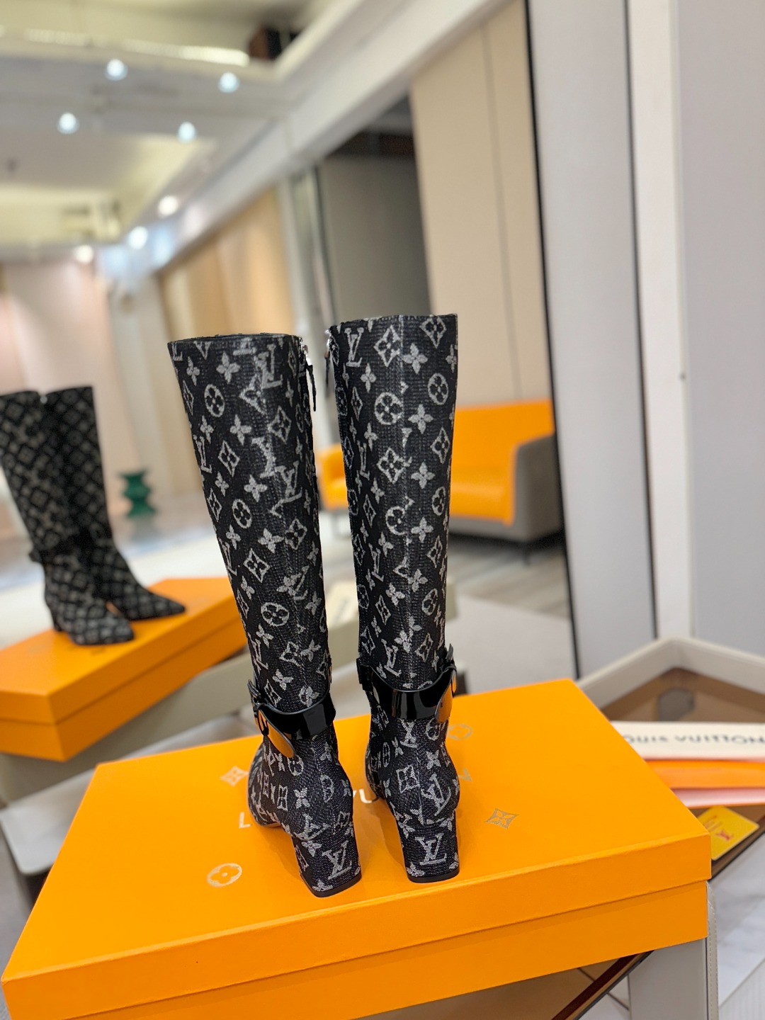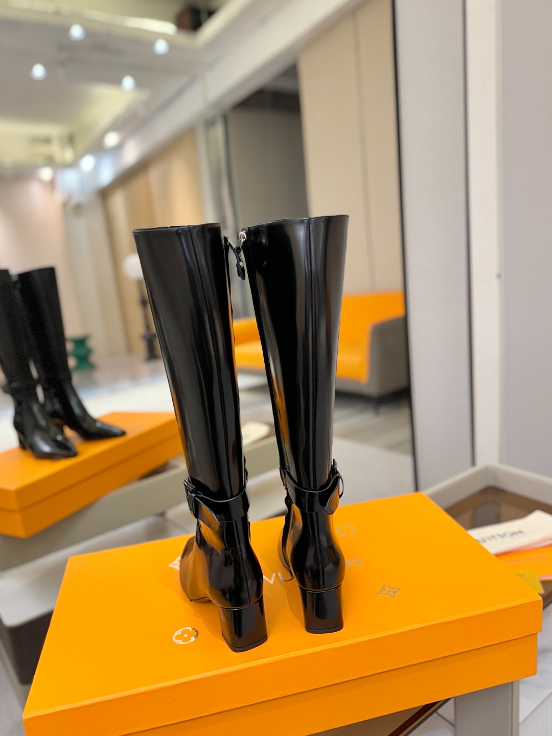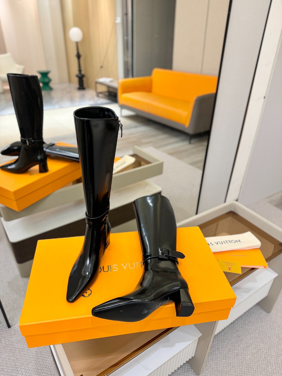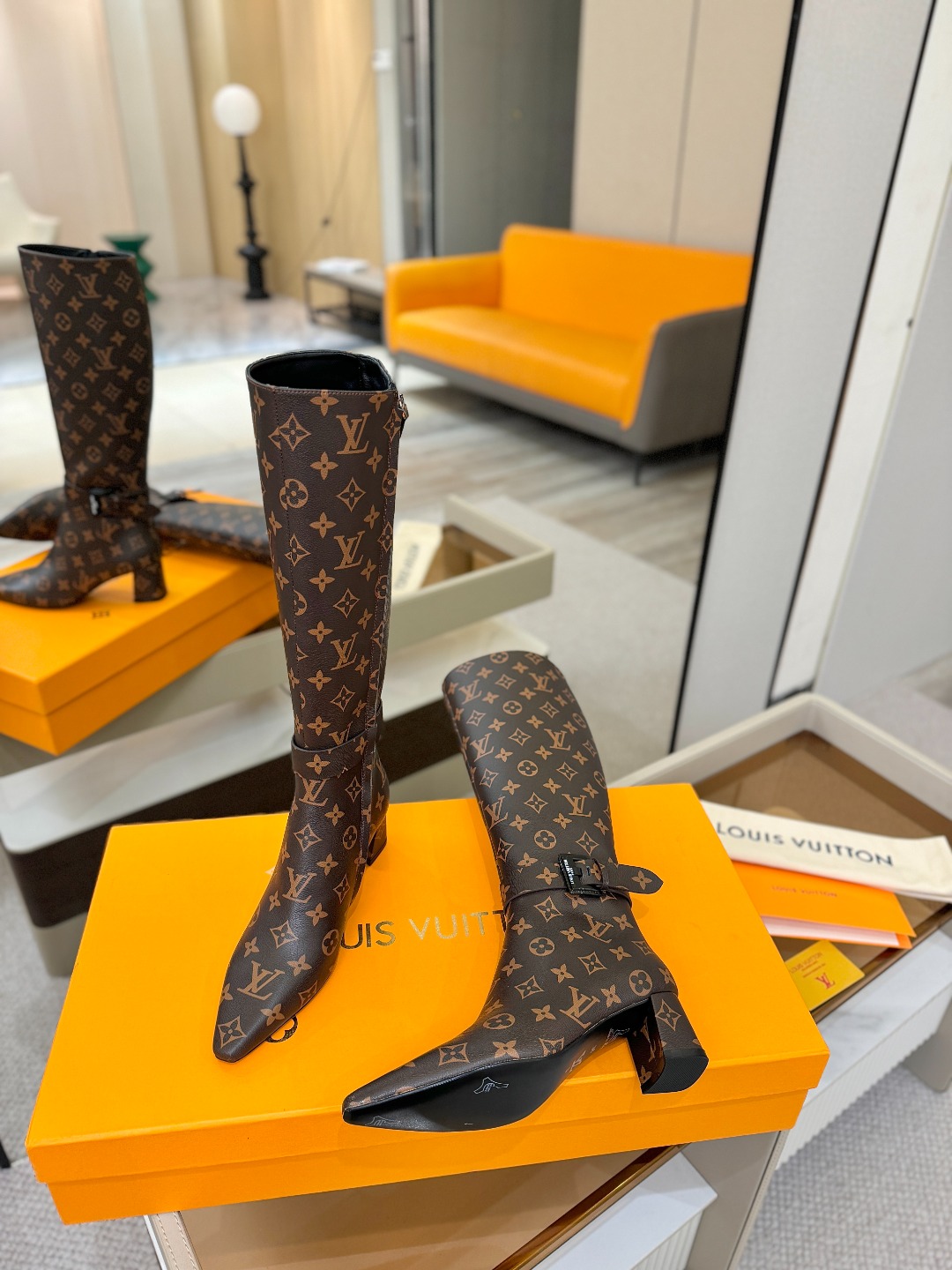 Эти стильные женские сапоги Louis Vuitton выполнены из высококачественной натуральной кожи в классическом цвете. Удлинённый мысок и элегантная пряжка с фирменным логотипом LV придают обуви изысканный и современный вид. Средний устойчивый каблук обеспечивает комфорт на каждый день, а боковая молния — легкость и удобство при надевании. Эта пара идеально дополнит как деловой, так и повседневный гардероб, подчеркнув Вашу индивидуальность и безупречное чувство стиля.