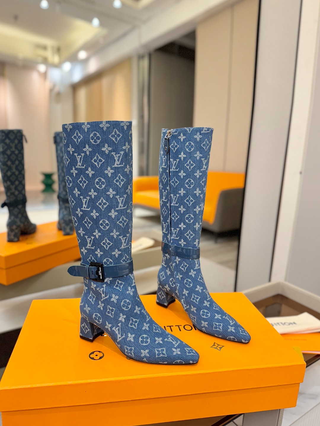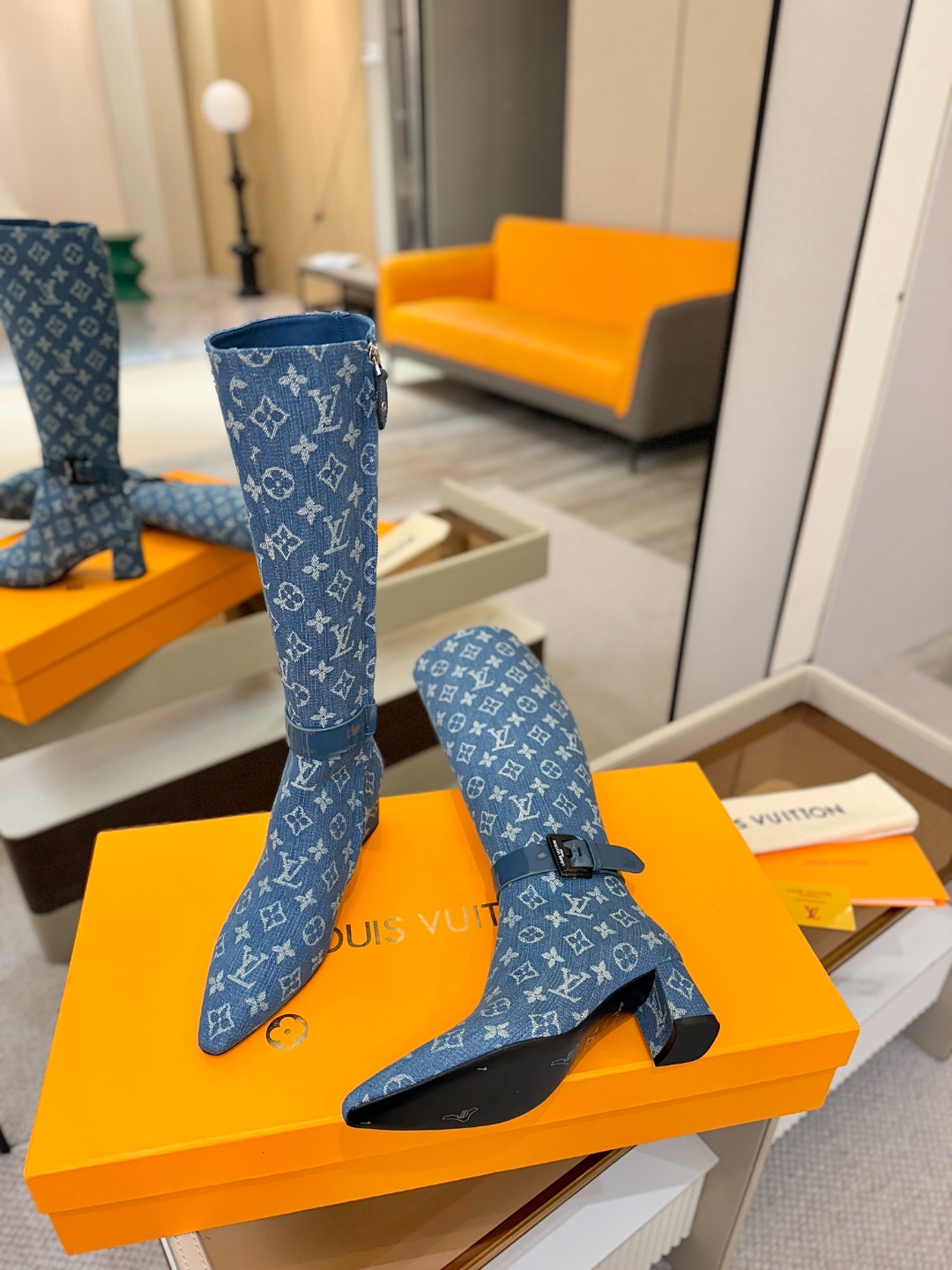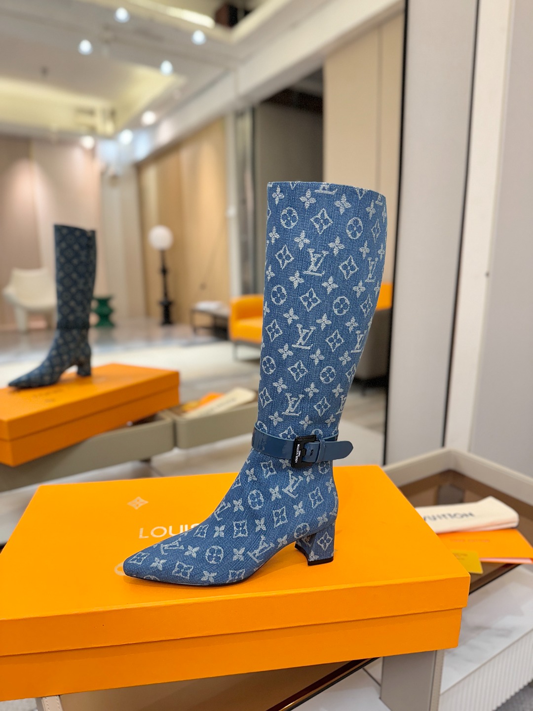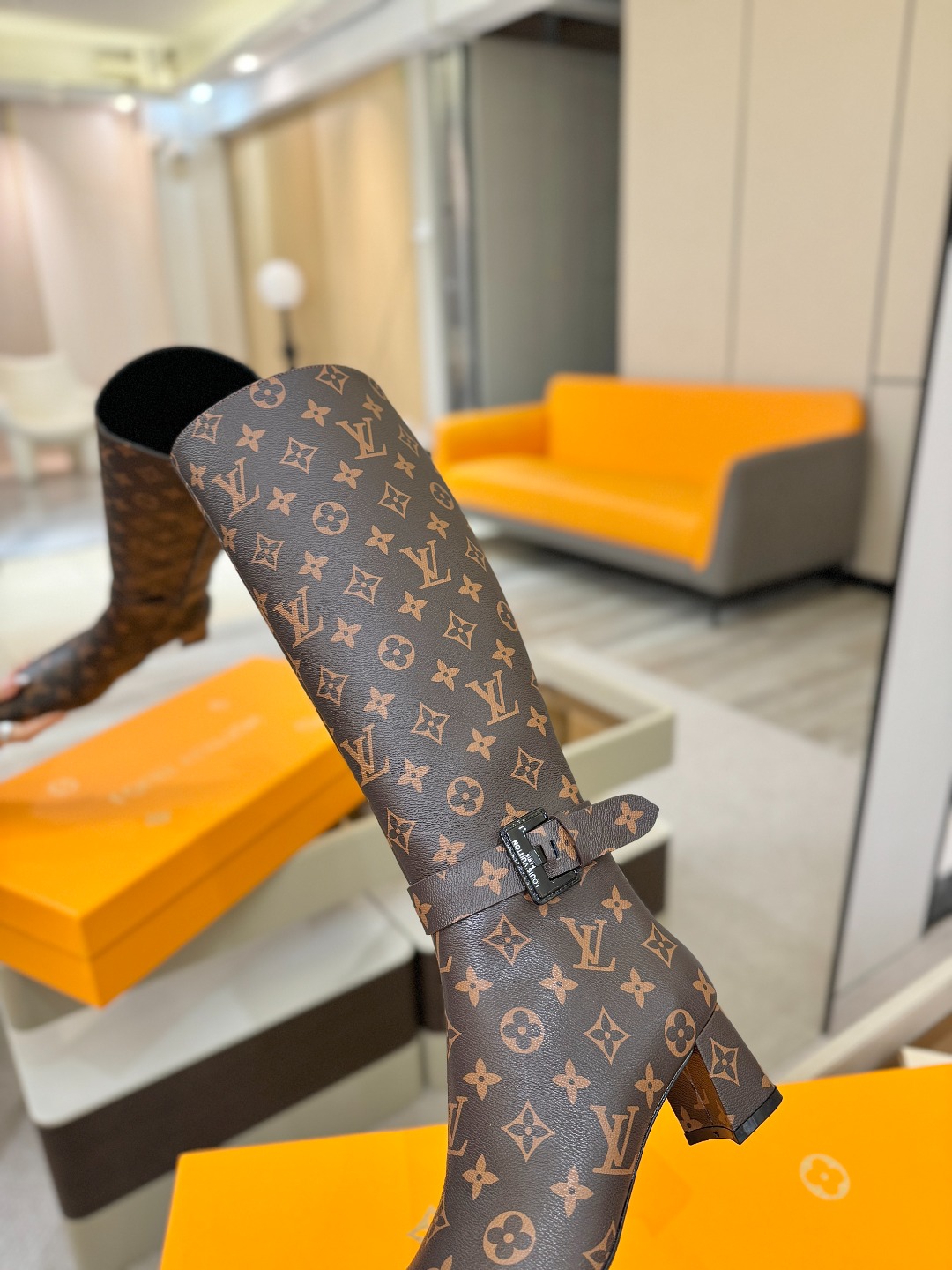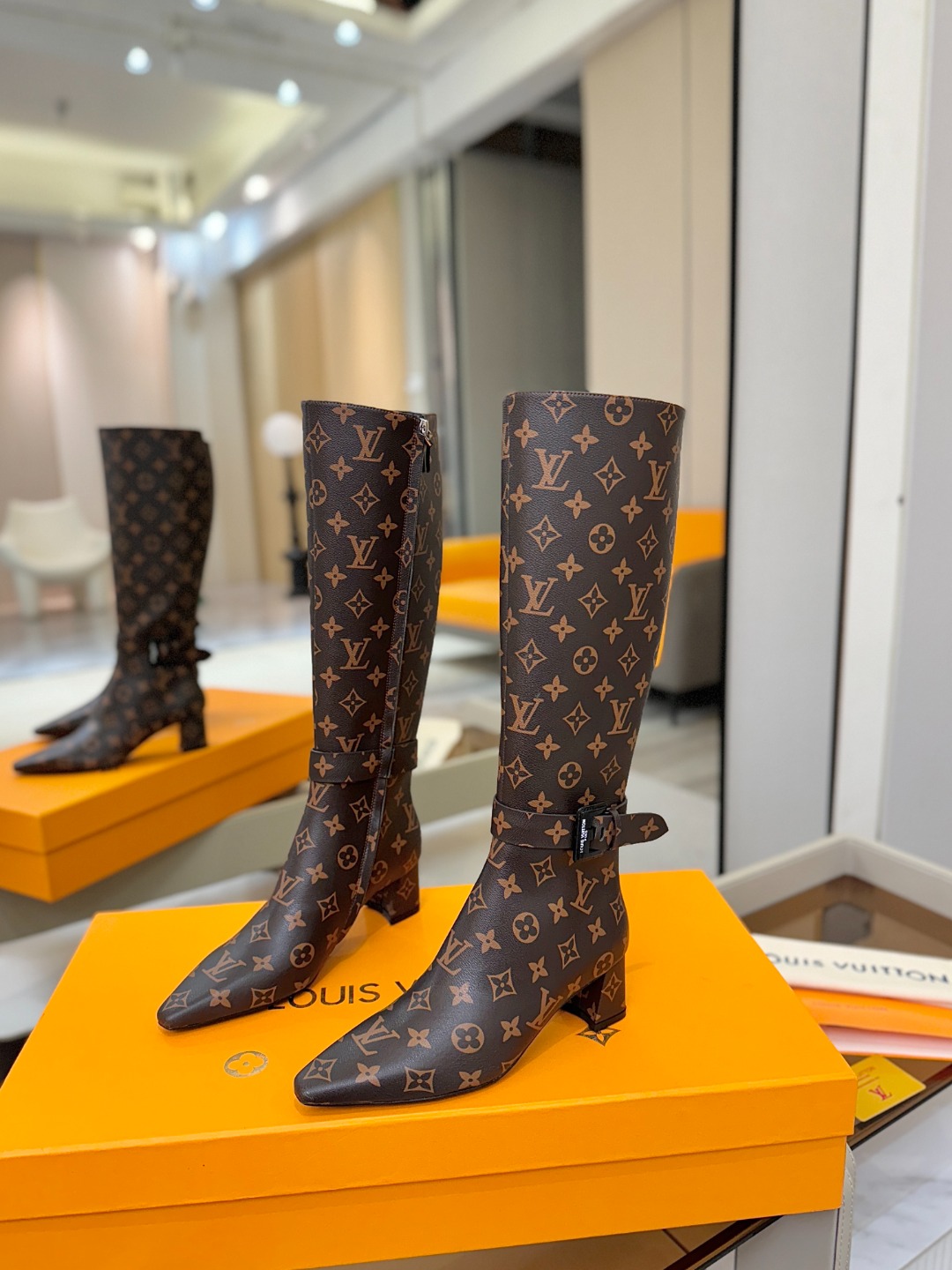 Эти стильные женские сапоги Louis Vuitton выполнены из высококачественной натуральной кожи в классическом цвете. Удлинённый мысок и элегантная пряжка с фирменным логотипом LV придают обуви изысканный и современный вид. Средний устойчивый каблук обеспечивает комфорт на каждый день, а боковая молния — легкость и удобство при надевании. Эта пара идеально дополнит как деловой, так и повседневный гардероб, подчеркнув Вашу индивидуальность и безупречное чувство стиля.