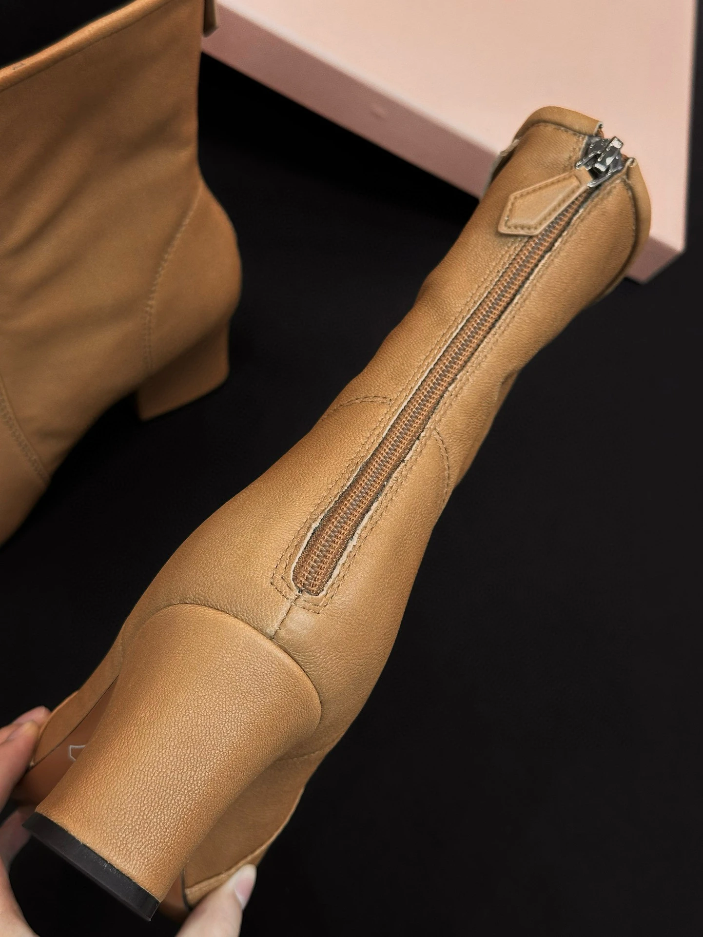 Женские ботильоны из овчины MIU MIU — это элегантное сочетание стиля и функциональности. Модель выполнена из мягкой натуральной кожи черного цвета и дополнена теплой подкладкой из овчины, что обеспечивает максимальный комфорт даже в самые холодные дни. Классический силуэт с аккуратным закругленным мысом и устойчивым каблуком подойдет как для повседневных, так и для более строгих образов. Задняя молния делает процесс надевания быстрым и удобным, не нарушая лаконичный дизайн. Ботильоны гармонично сочетаются с джинсами, юбками и платьями, добавляя образу утонченности и уверенности.