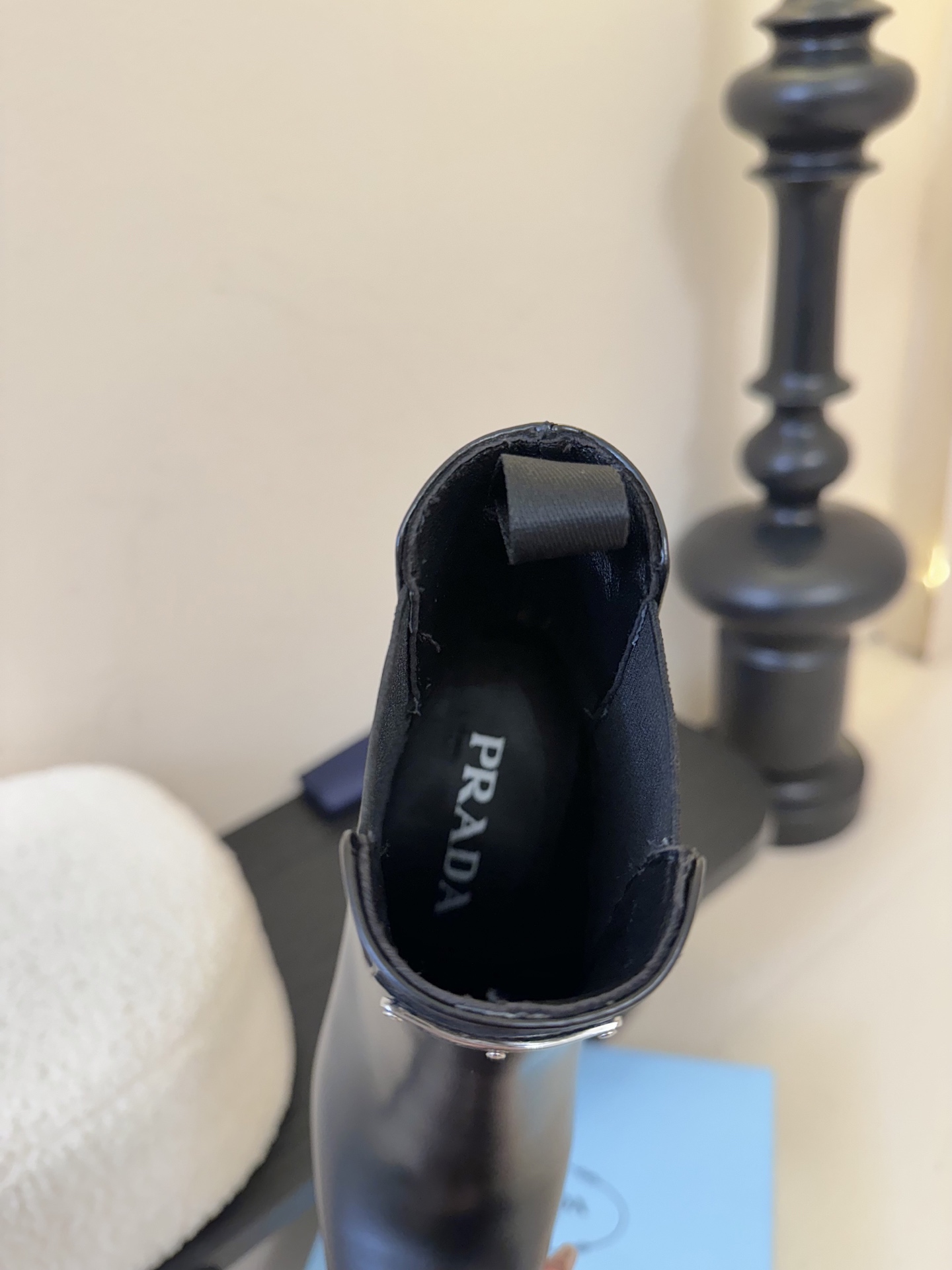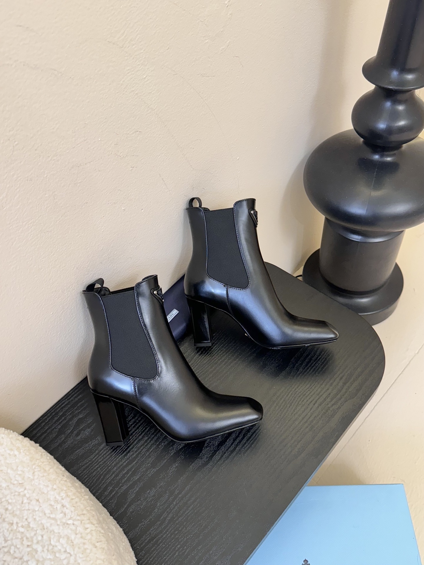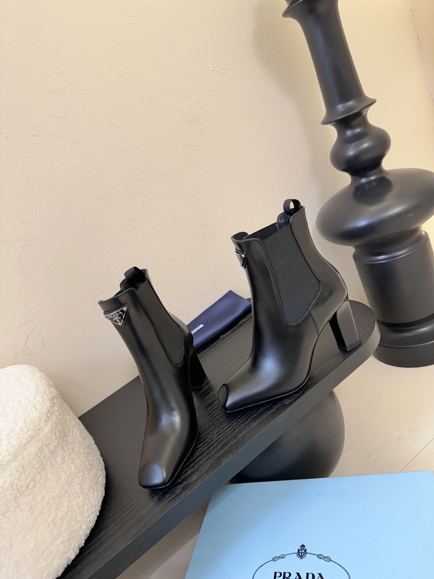 Осенне-зимняя коллекция Prada представляет вам новые ботильоны челси. Дизайн логотипа в виде перевернутого треугольника добавляет оригинальности и подчеркивает уникальность бренда. Верх из импортной коровьей кожи, натуральная подкладка и кожаная подошва создают ощущение стиля и комфорта. Изящный изгиб и форма носка действительно могут подчеркнуть прочность и элегантность обуви.