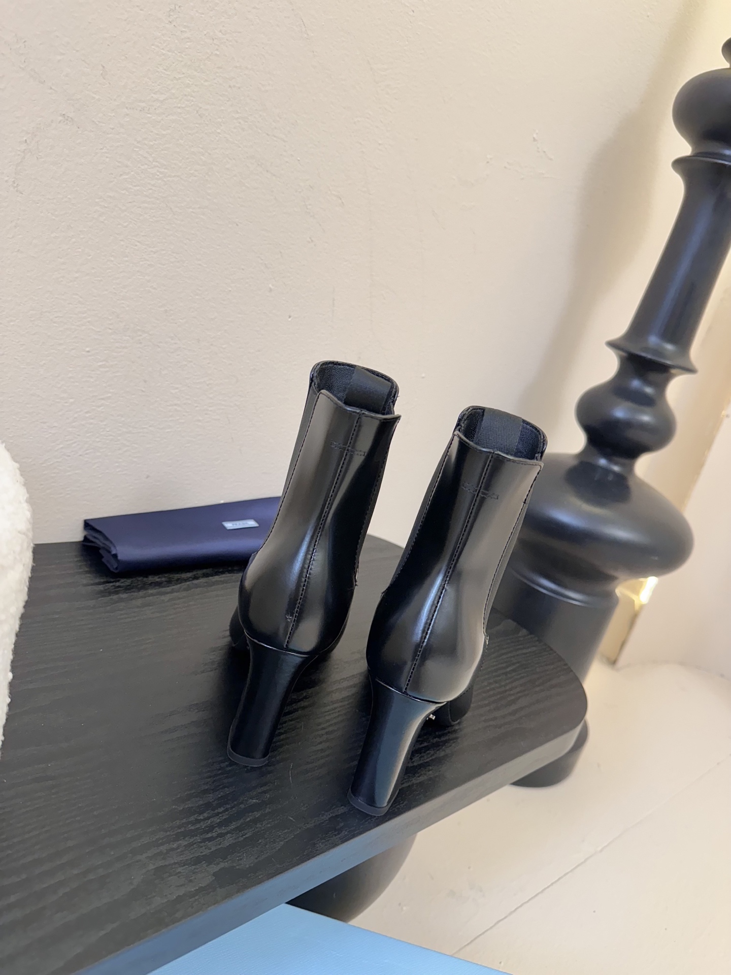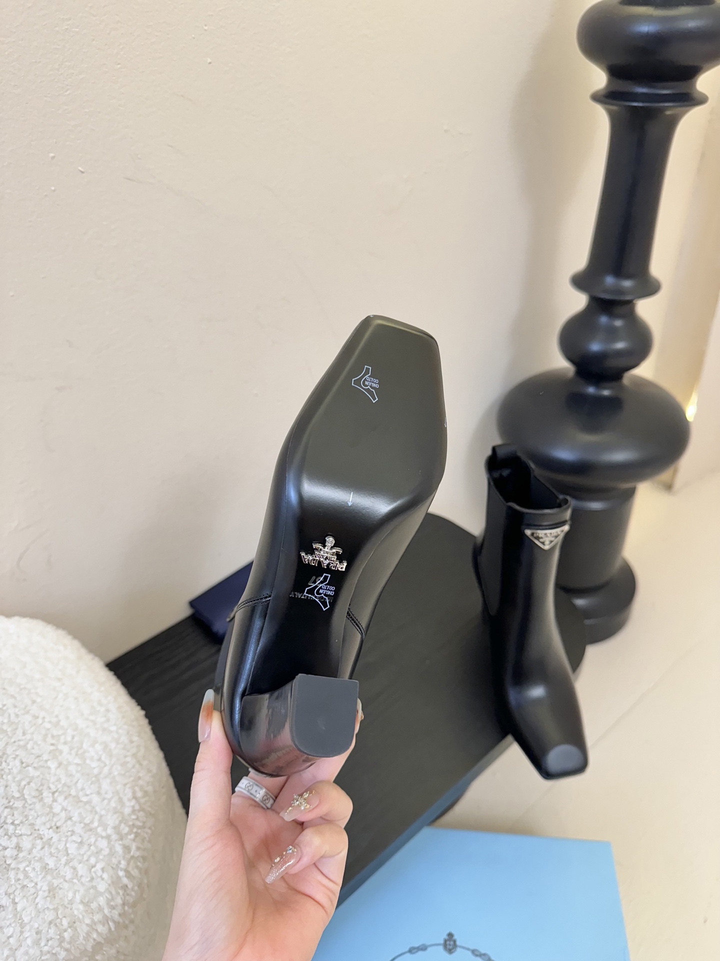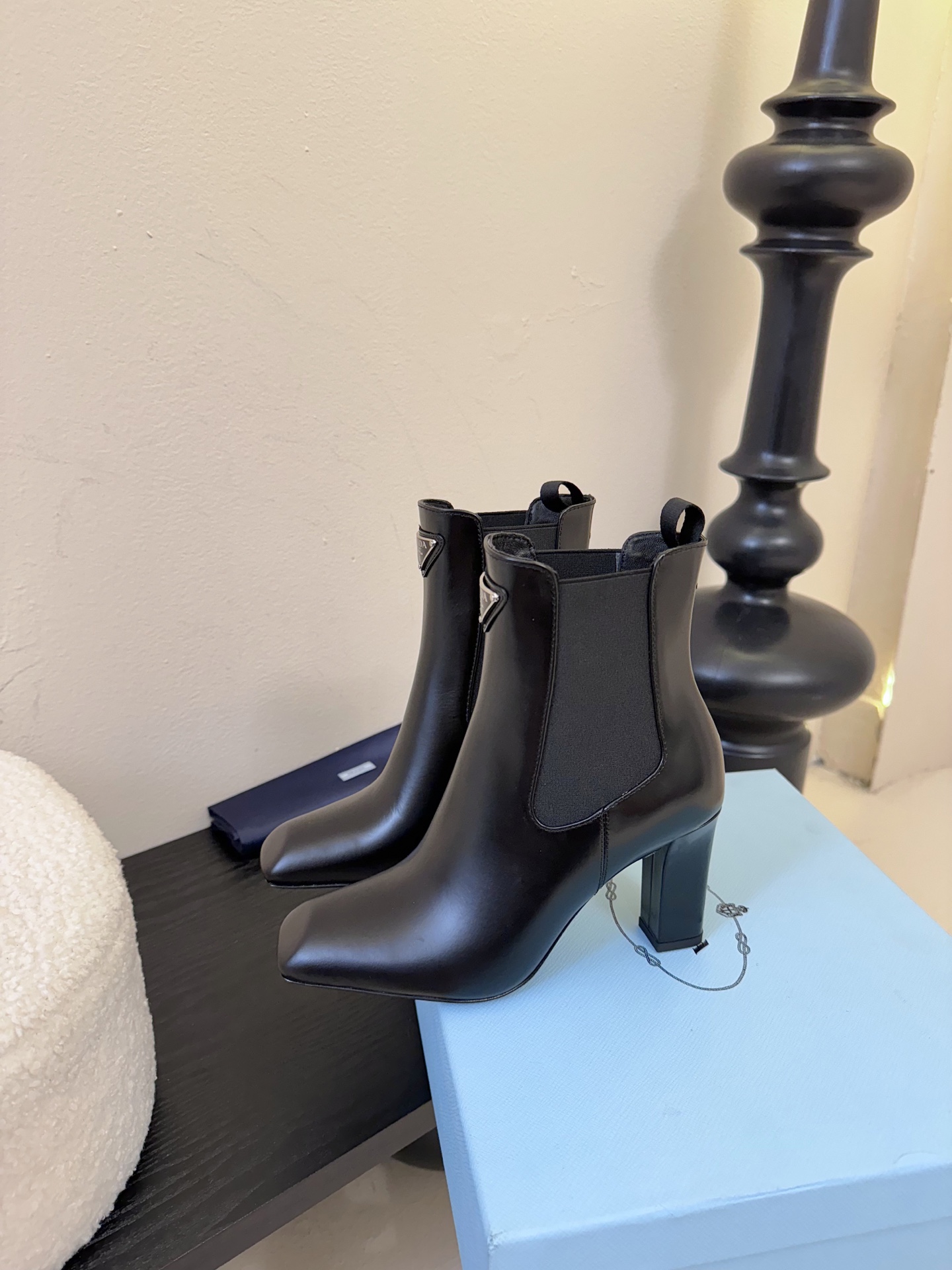 Осенне-зимняя коллекция Prada представляет вам новые ботильоны челси. Дизайн логотипа в виде перевернутого треугольника добавляет оригинальности и подчеркивает уникальность бренда. Верх из импортной коровьей кожи, натуральная подкладка и кожаная подошва создают ощущение стиля и комфорта. Изящный изгиб и форма носка действительно могут подчеркнуть прочность и элегантность обуви.