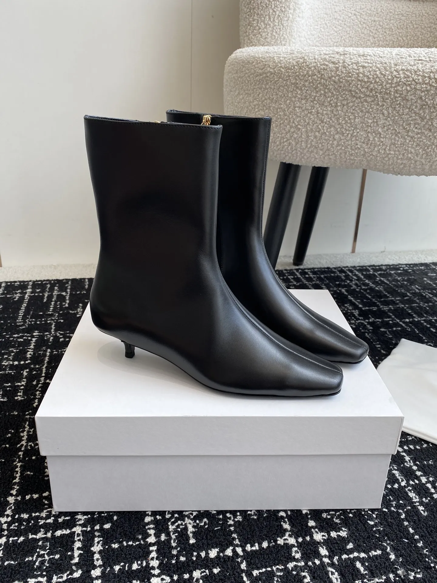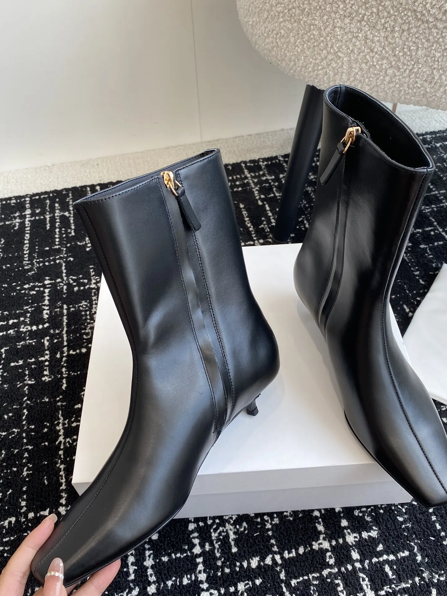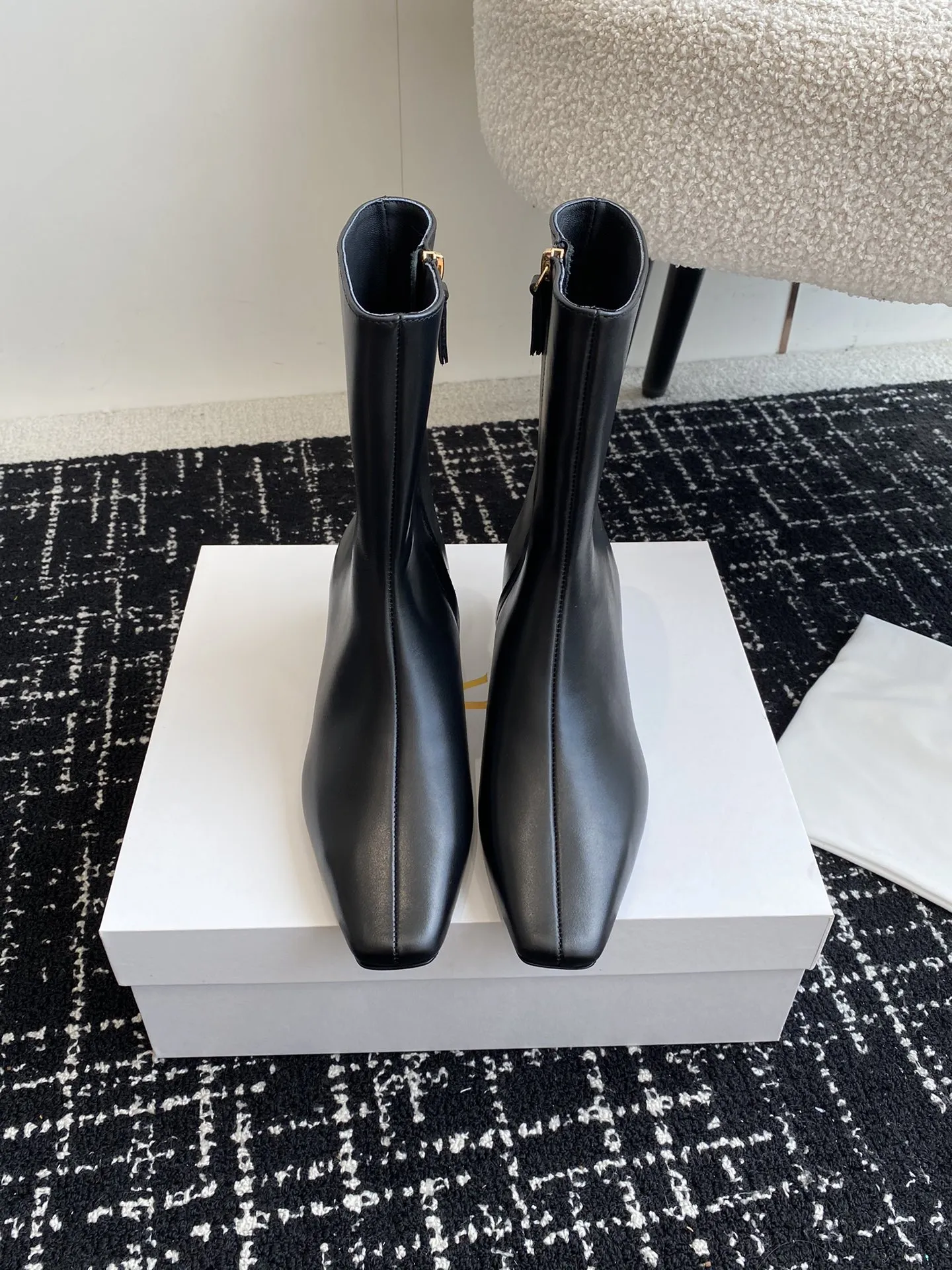 Эксклюзивные короткие сапоги на шпильке с квадратным носком — это идеальный выбор для осенне-зимнего сезона. Верх выполнен из оригинальной мягкой телячьей кожи по индивидуальному заказу. Подкладка из импортной смешанной овчины. Подошва из натуральной кожи.