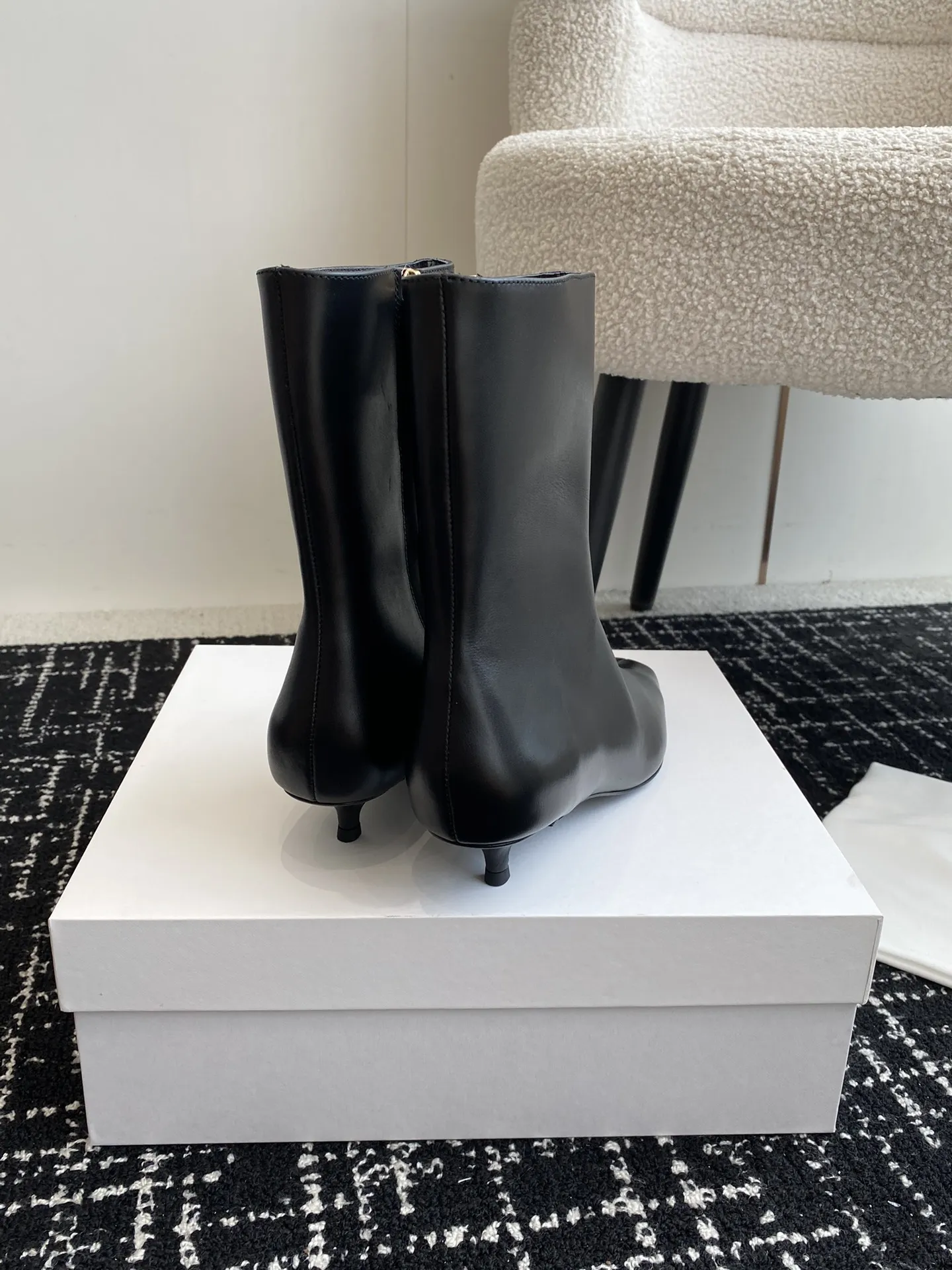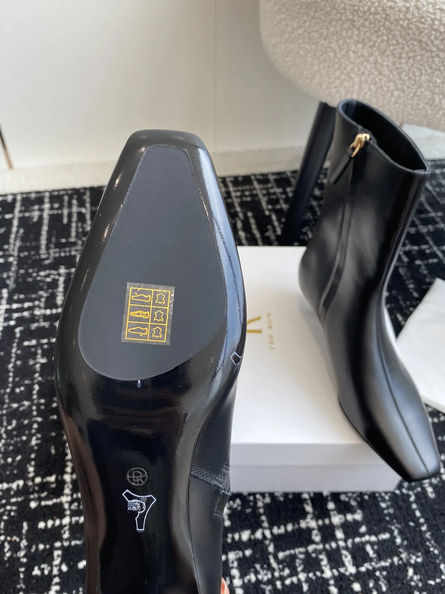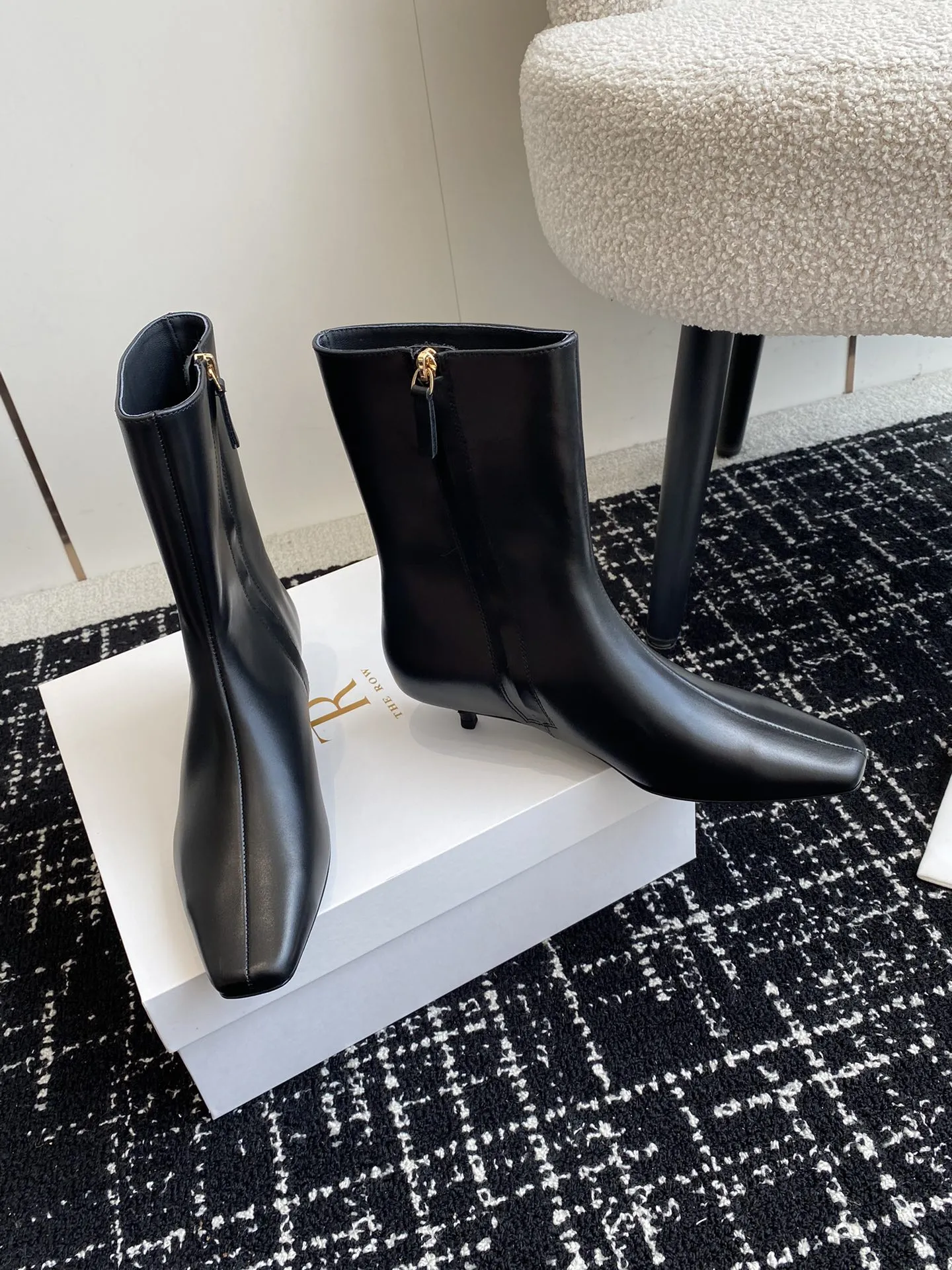 Эксклюзивные короткие сапоги на шпильке с квадратным носком — это идеальный выбор для осенне-зимнего сезона. Верх выполнен из оригинальной мягкой телячьей кожи по индивидуальному заказу. Подкладка из импортной смешанной овчины. Подошва из натуральной кожи.