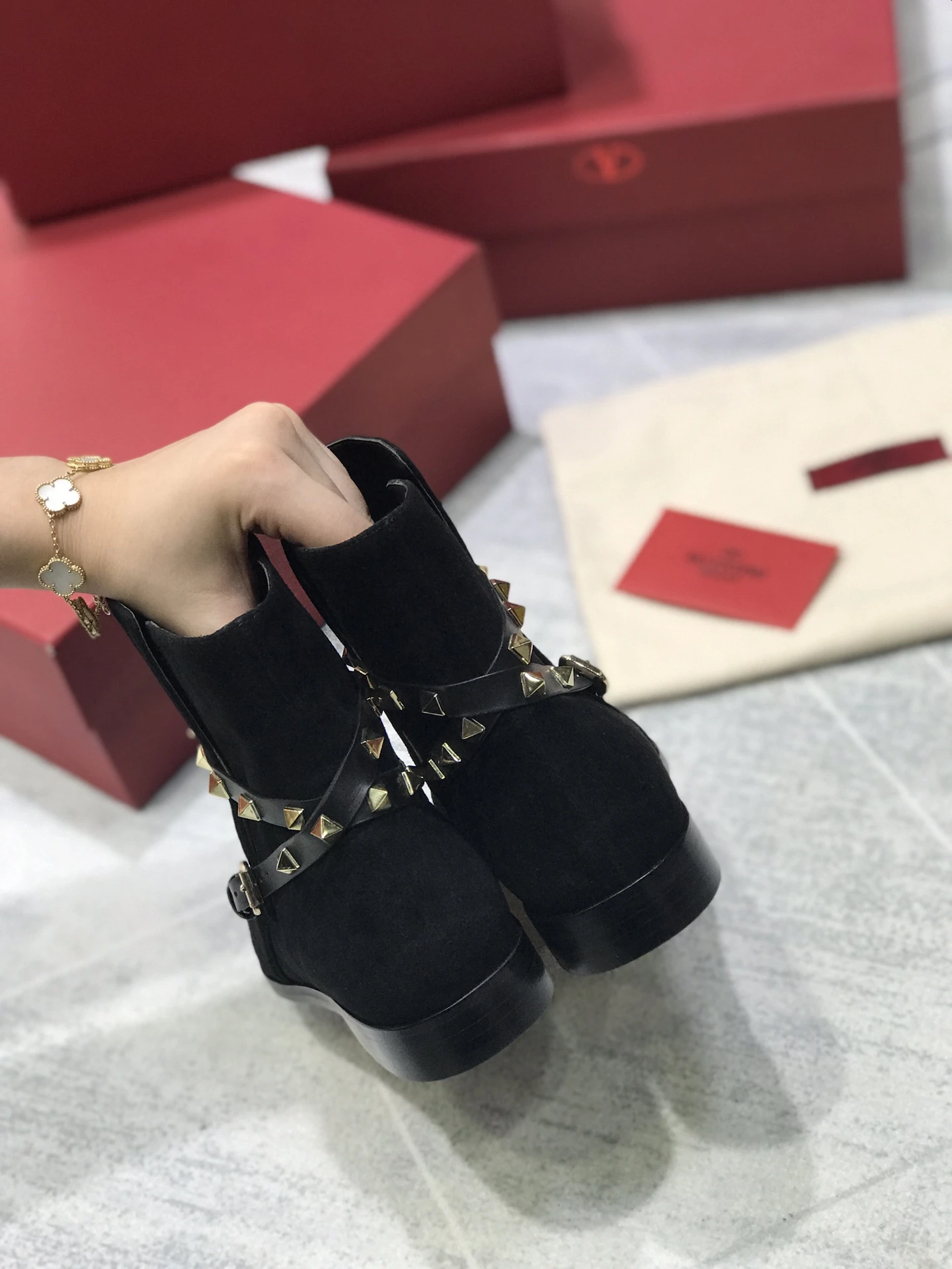 Ботильоны Valentino из коровьей кожи с зернистостью личи — отличный выбор для тех, кто ценит стиль и комфорт. Зернистая текстура придает обуви уникальный вид и делает её менее подверженной повреждениям. Подкладка из овчины обеспечивает мягкость и уют, что особенно важно в холодное время года.