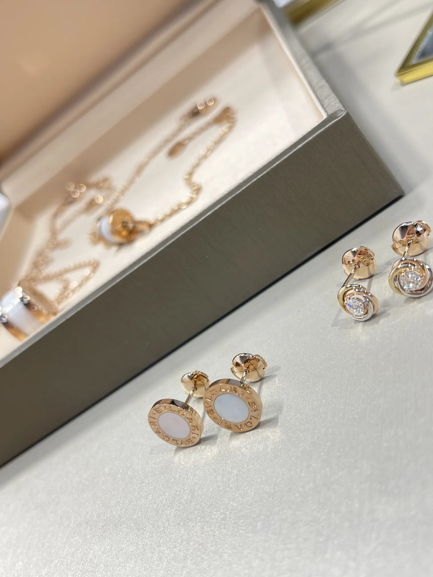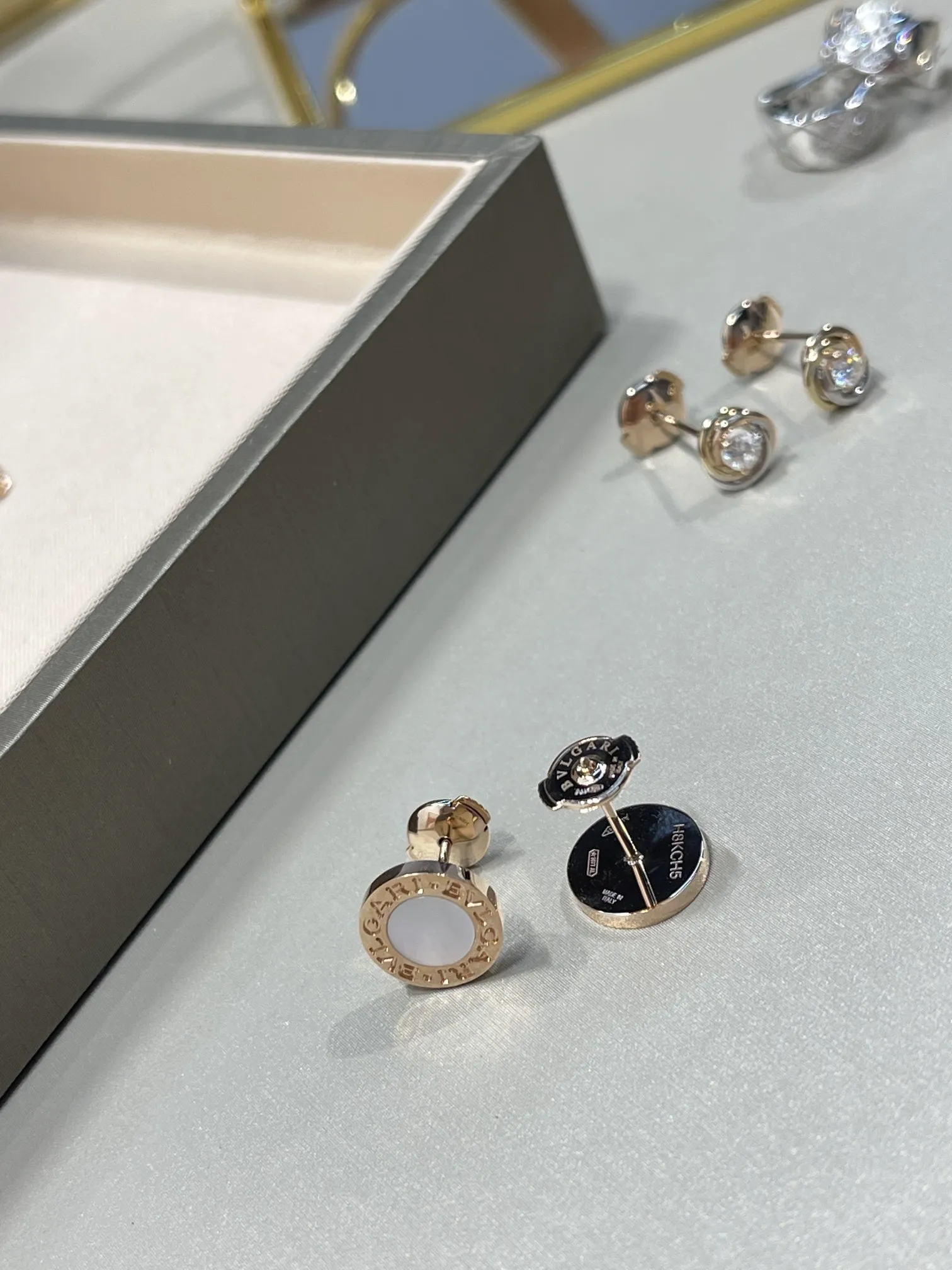 BVLGARI Серьги-пуссеты розовое золото 18 карат, перламутр. Дизайн, вдохновленный античными монетами с их изогнутыми надписями, воплощает элегантное сочетание культурной традиции и современности.