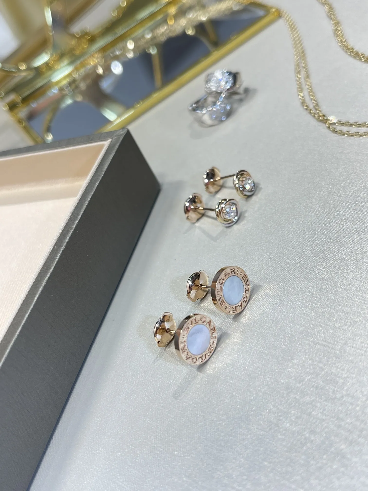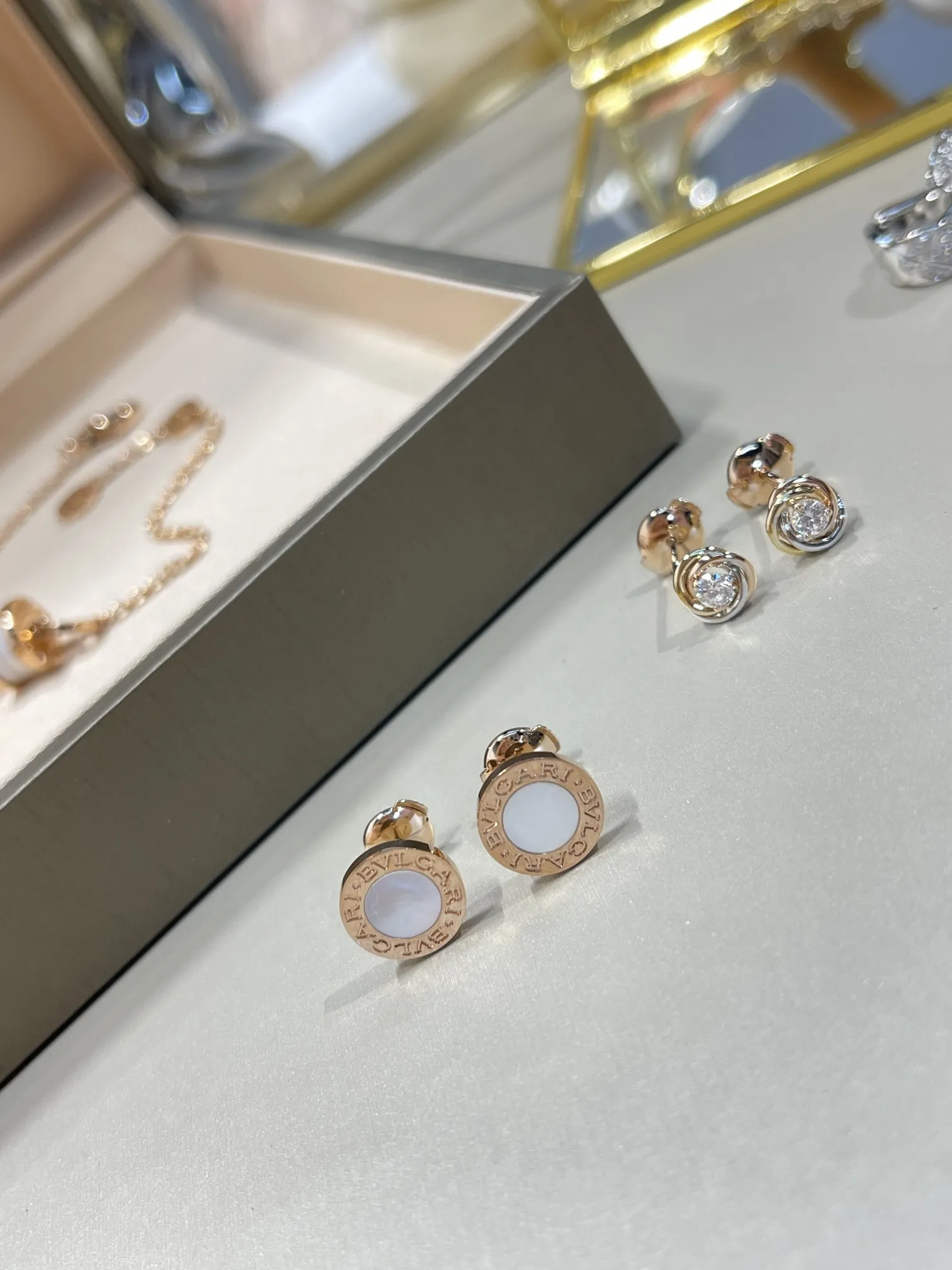 BVLGARI Cерьги пуссеты розовое золото и перламутр