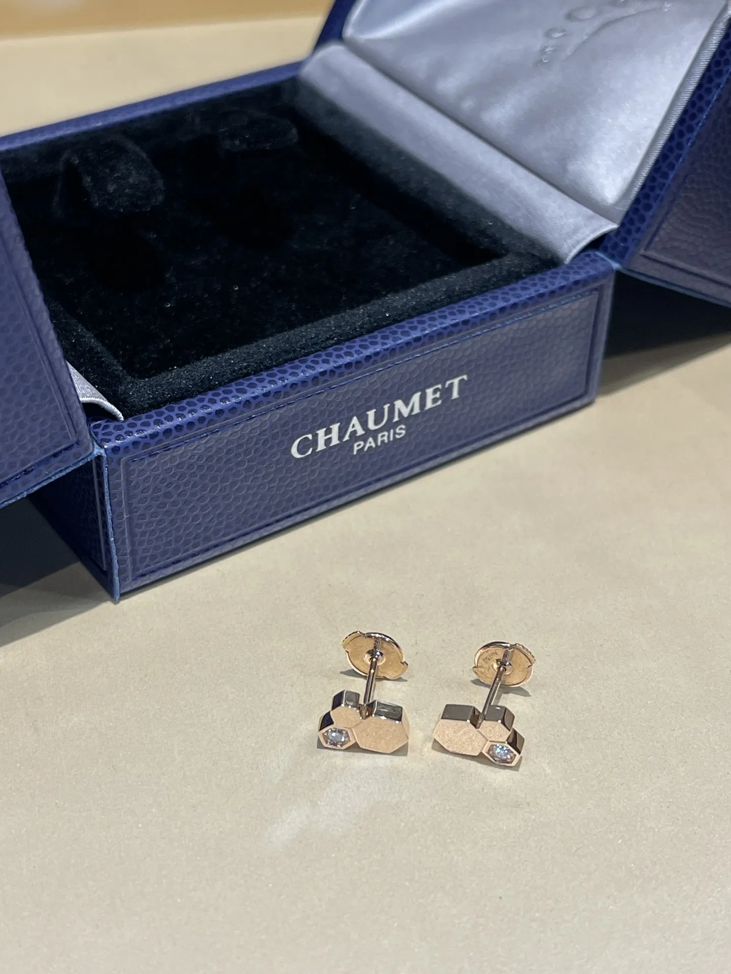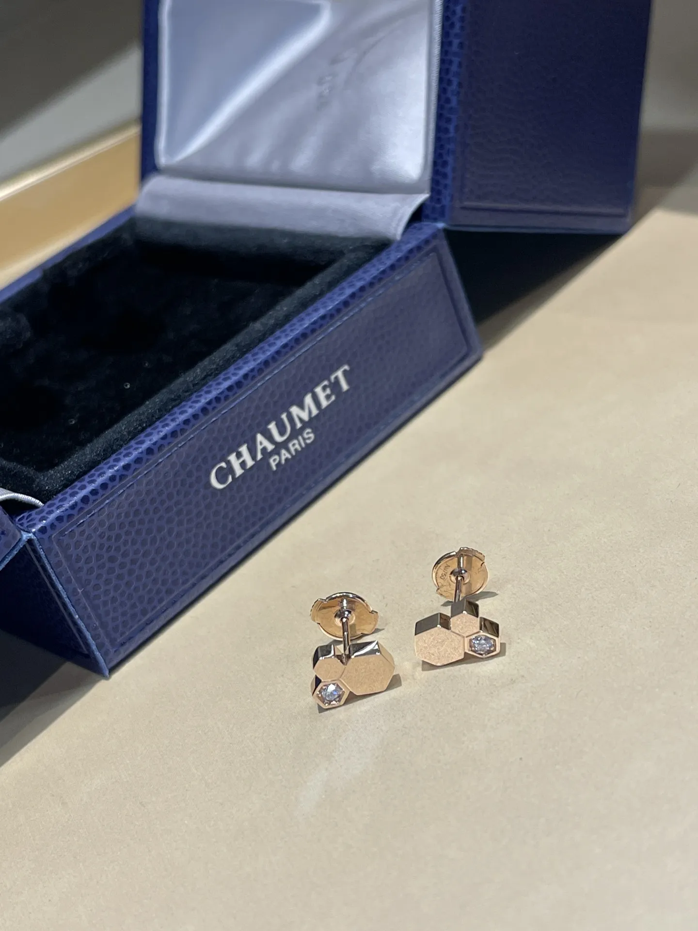 Chaumet Серьги Bee My Love из 18-каратного розового золота с бриллиантами. Серьги Bee My Love, выполненные из розового золота, олицетворяют собой графическую интерпретацию сот. Вдохновленные символом пчелы, который издревле ассоциировался с императорской властью, эти серьги привносят в образ решительно современный взгляд на этот мотив.