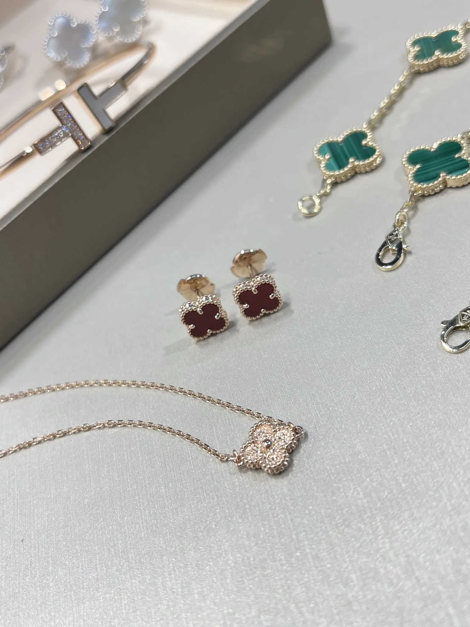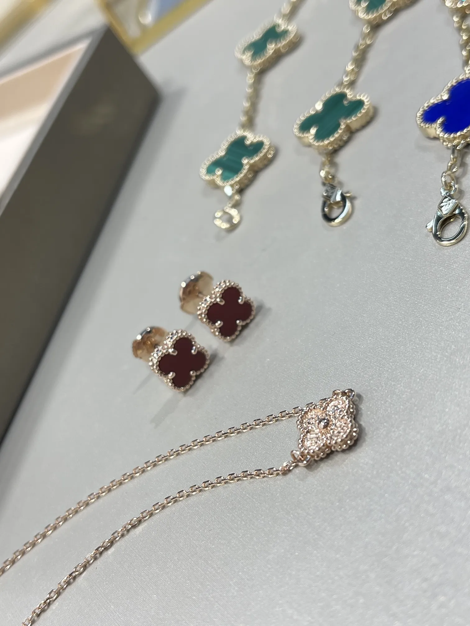 Van Cleef & Arpels Пусеты Sweet Alhambra розовое золото и сердолик