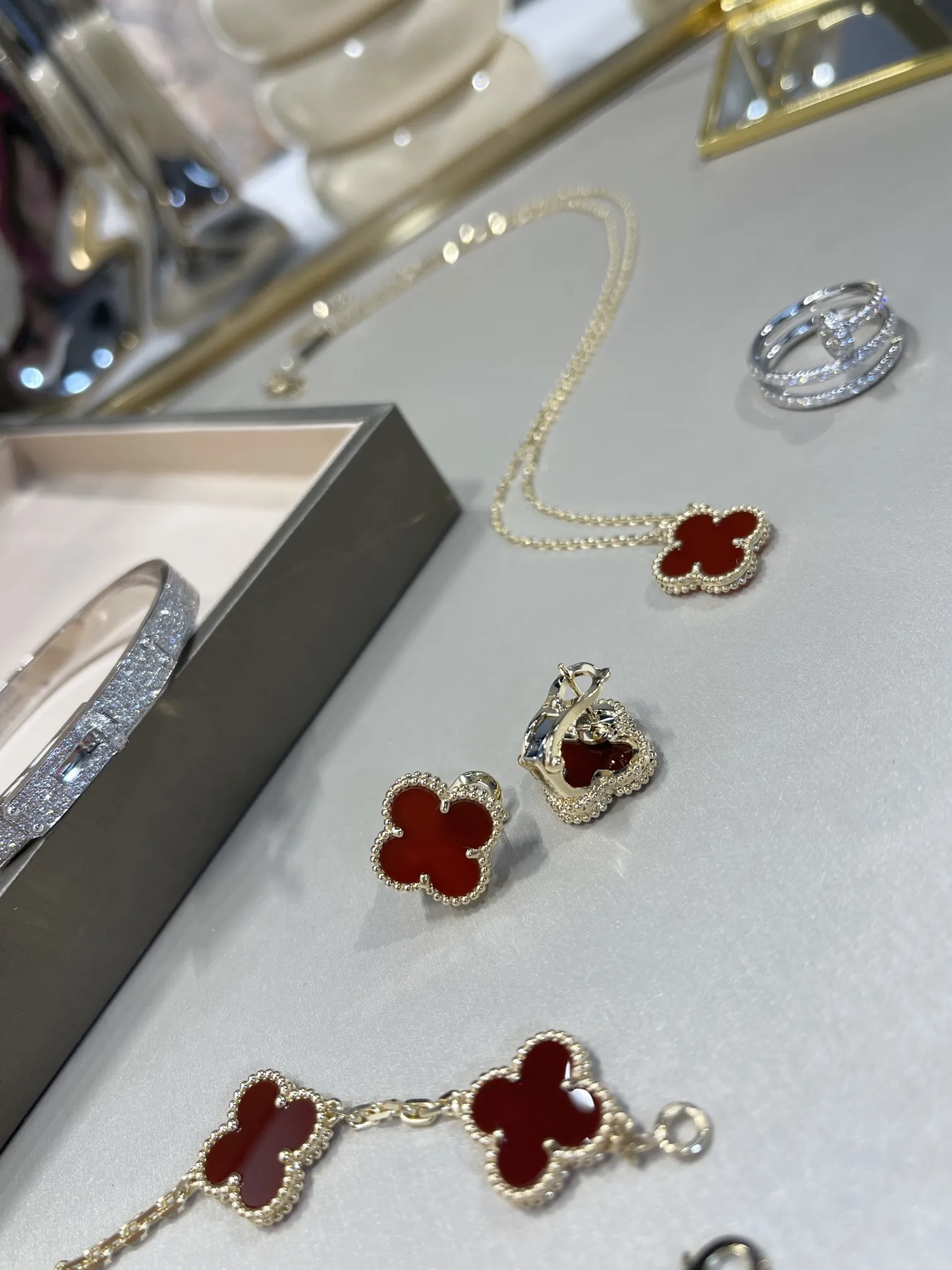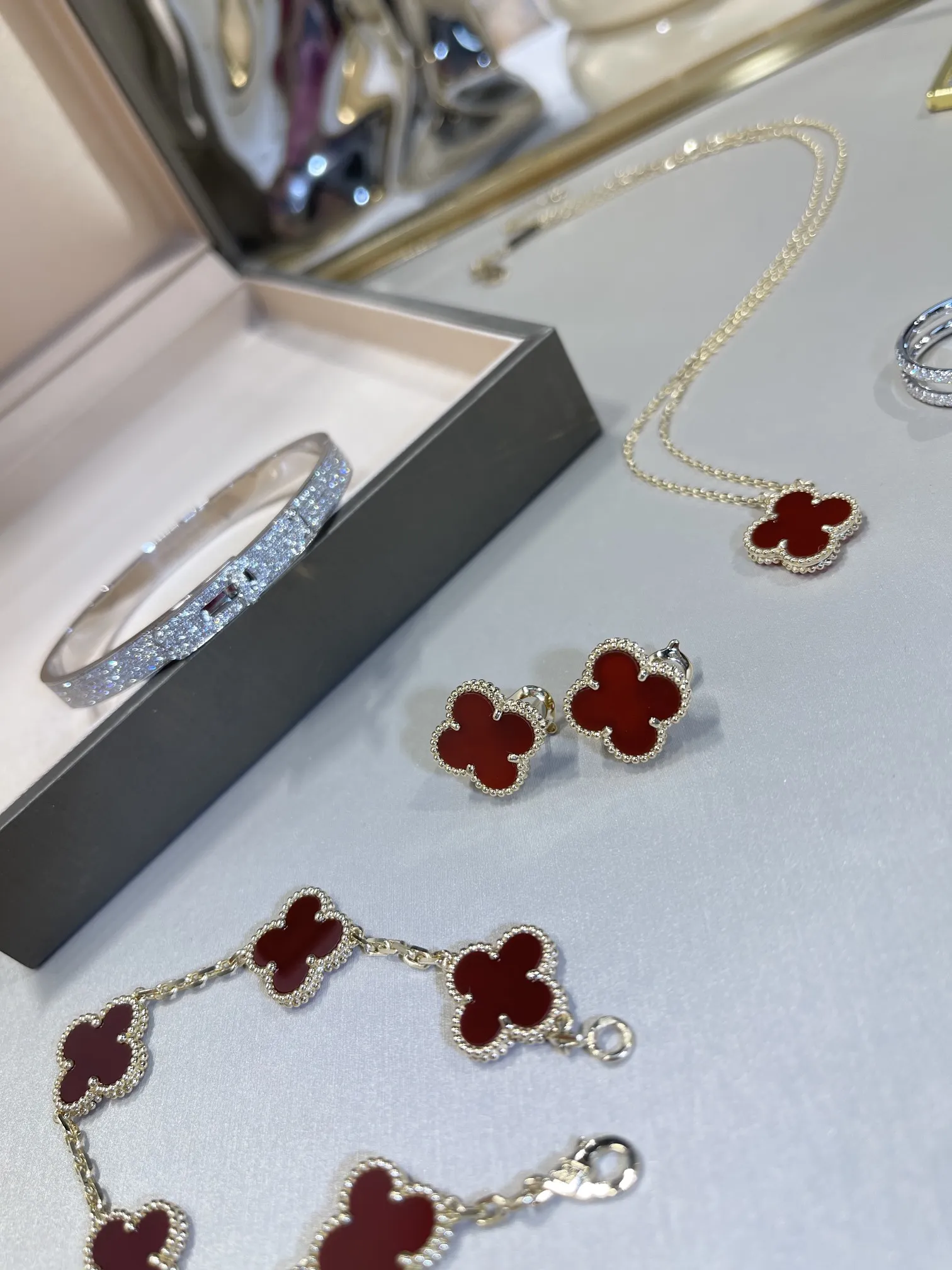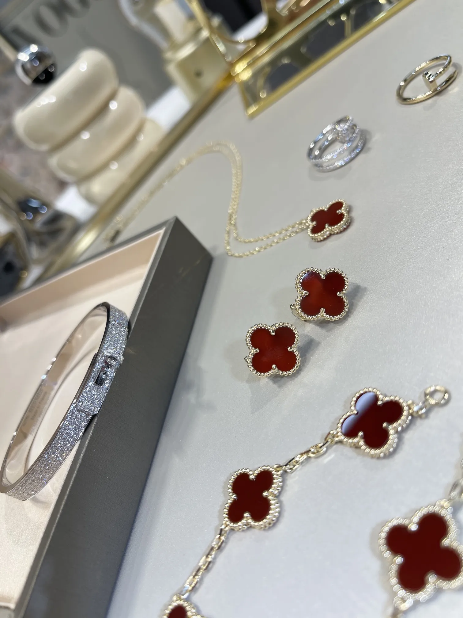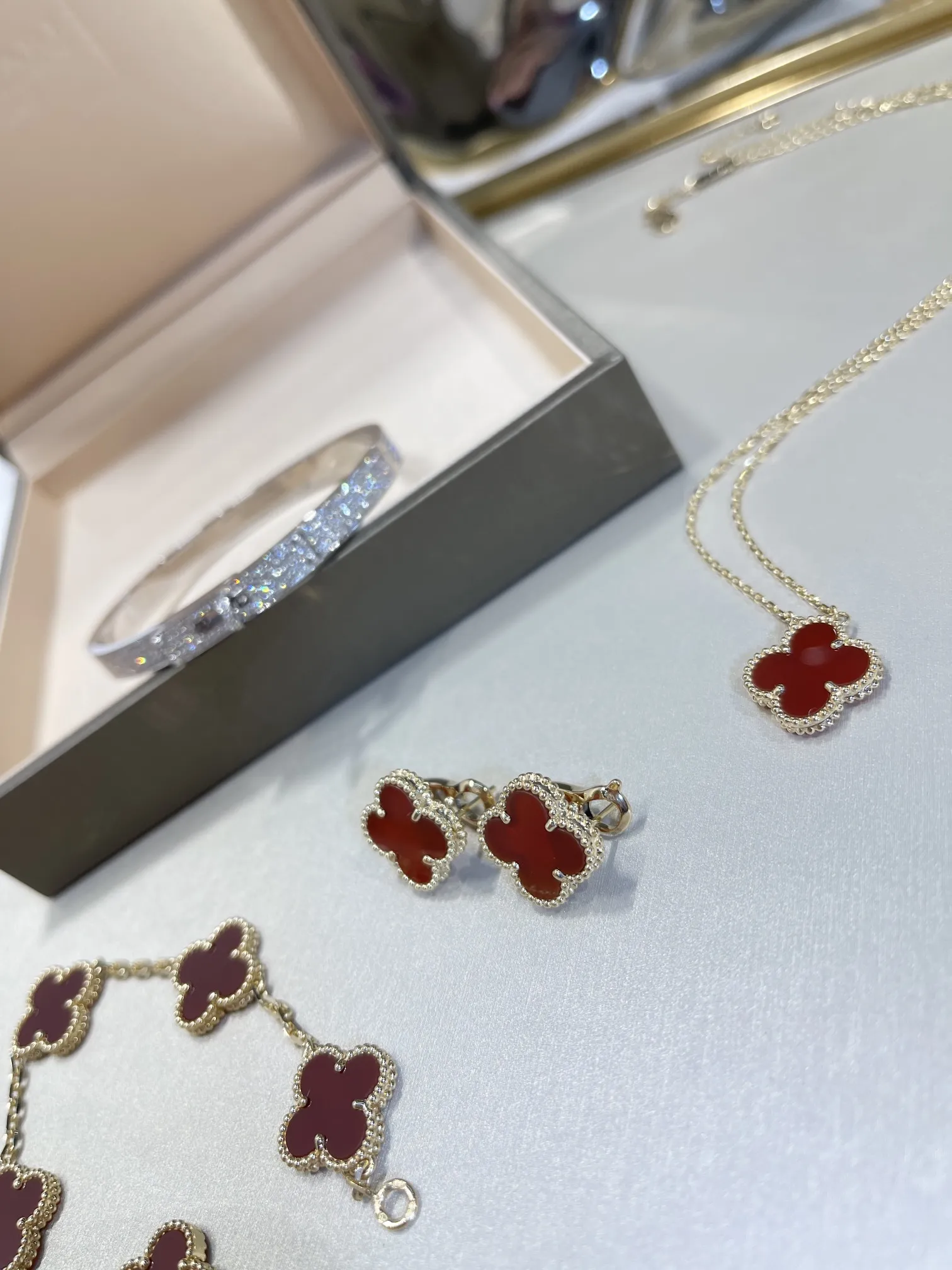 Серьги Vintage Alhambra, желтое золото 18 карат, сердолик.