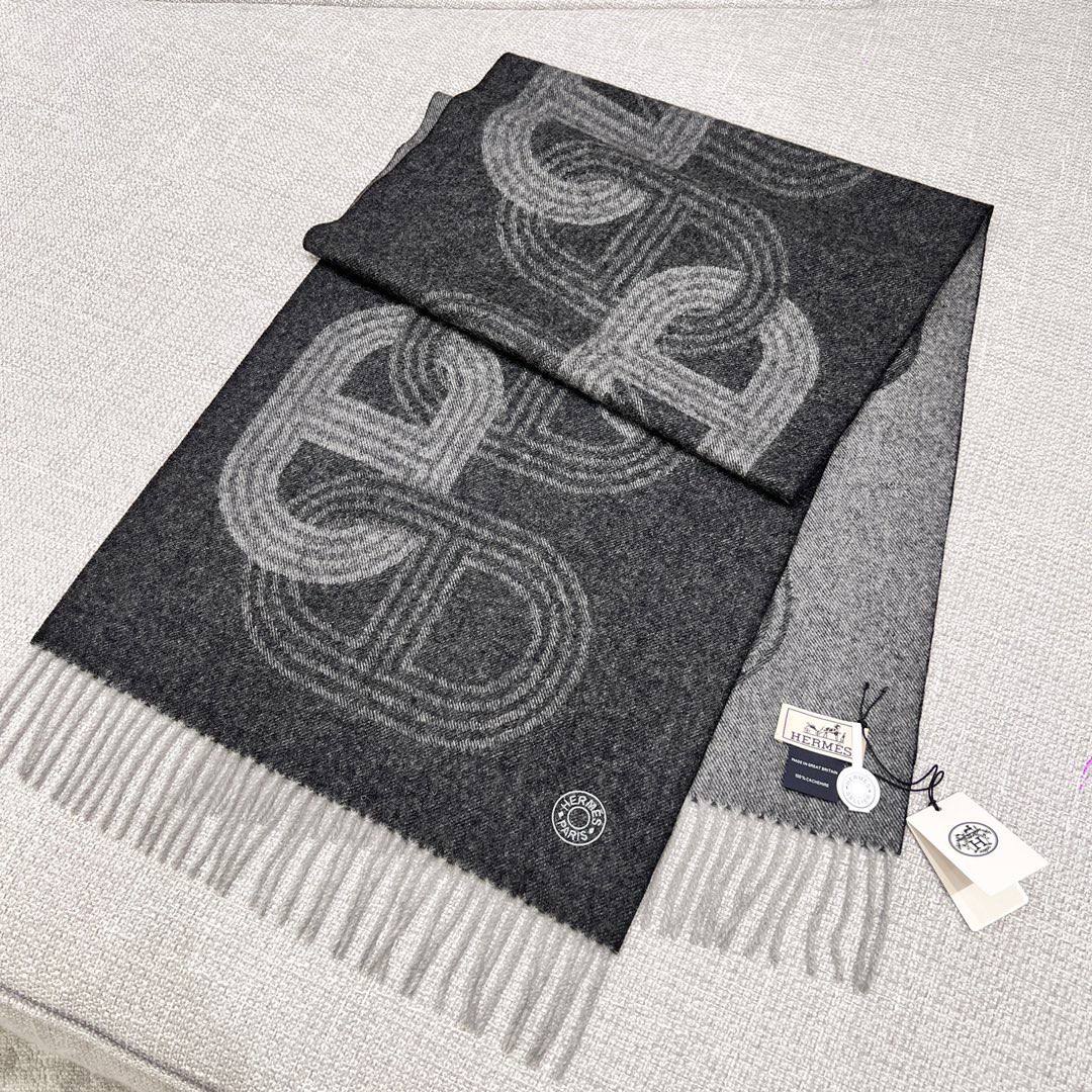 • Дизайн: крупный переплетенный мотив (фирменный орнамент в духе HERMÈS) в тон‑в‑тоне, подчеркивающий утонченность и сдержанность предмета; ровная, аккуратная бахрома по концам.