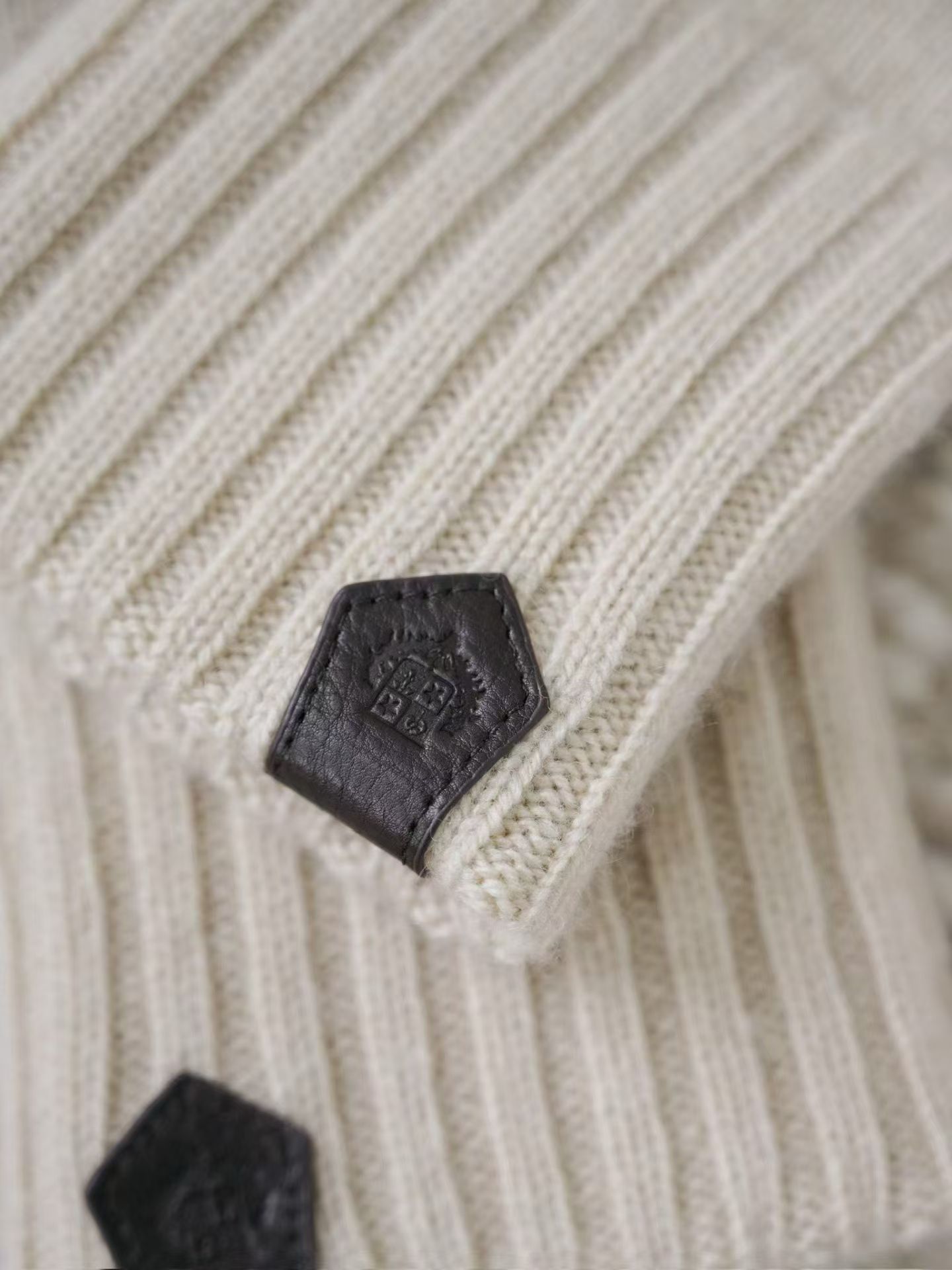 • Декор: минималистичная кожаная метка с логотипом Loro Piana у основания манжеты подчеркивает статус и внимание к деталям.