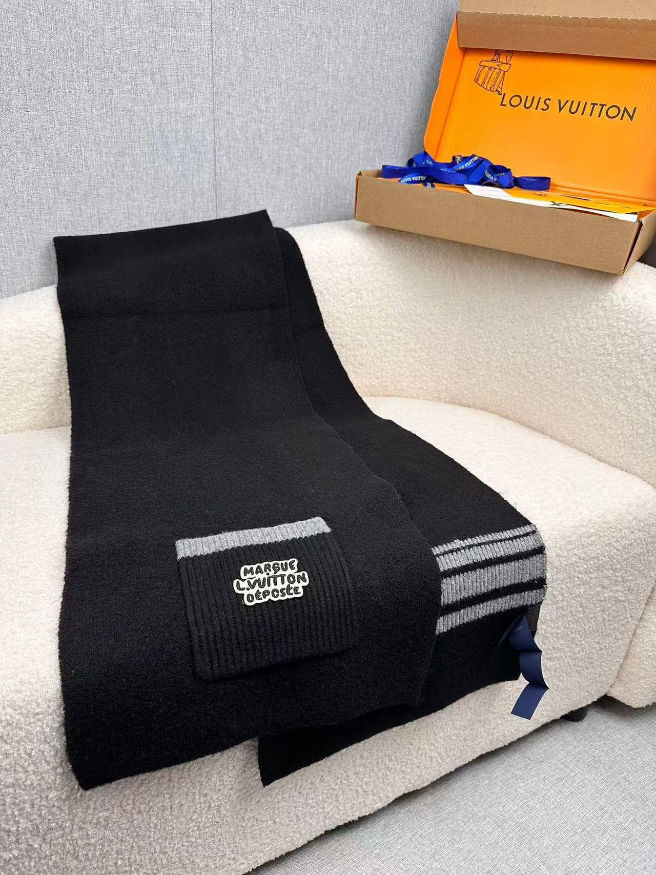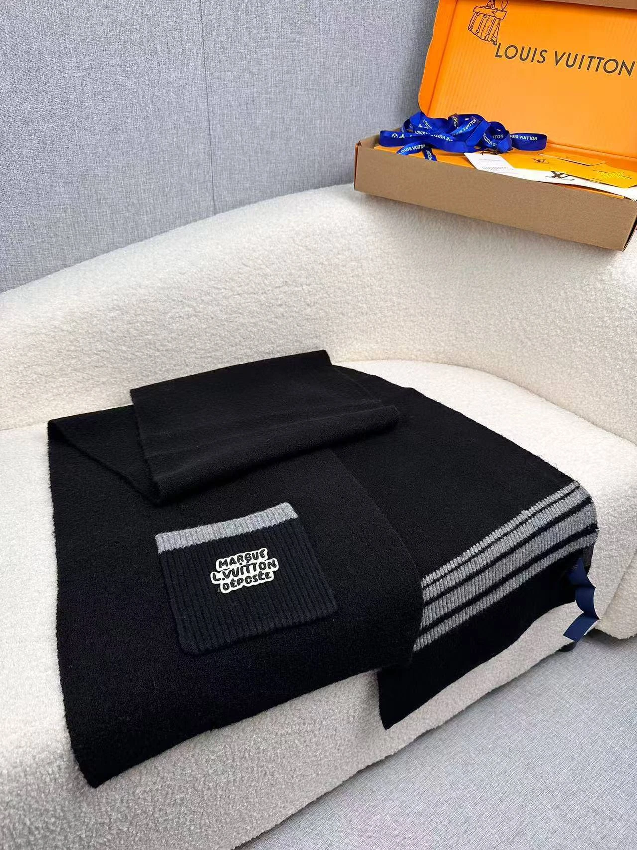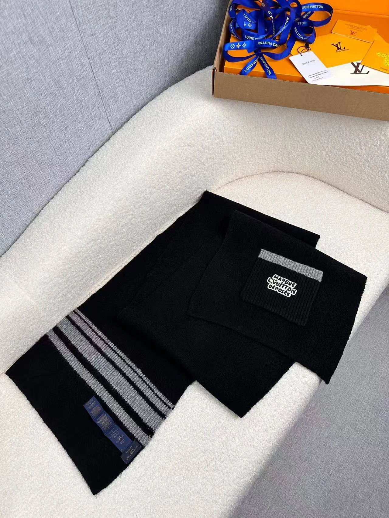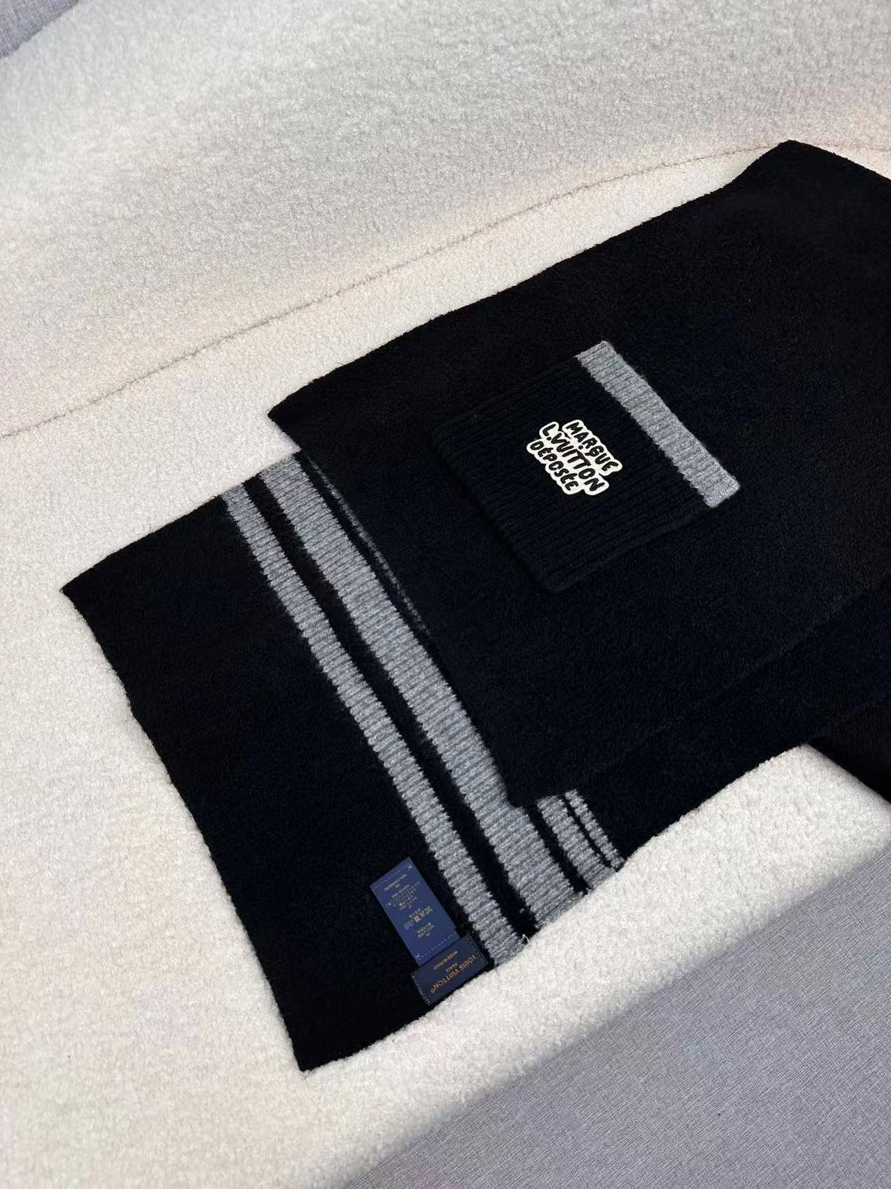 • Дизайн: минимализм с утонченными деталями — рельефная вязаная зона с пришитым фирменным шильдом с надписью «MARQUE LOUIS VUITTON DÉPOSÉE», аккуратные кромки и тонкая фактурная отделка.