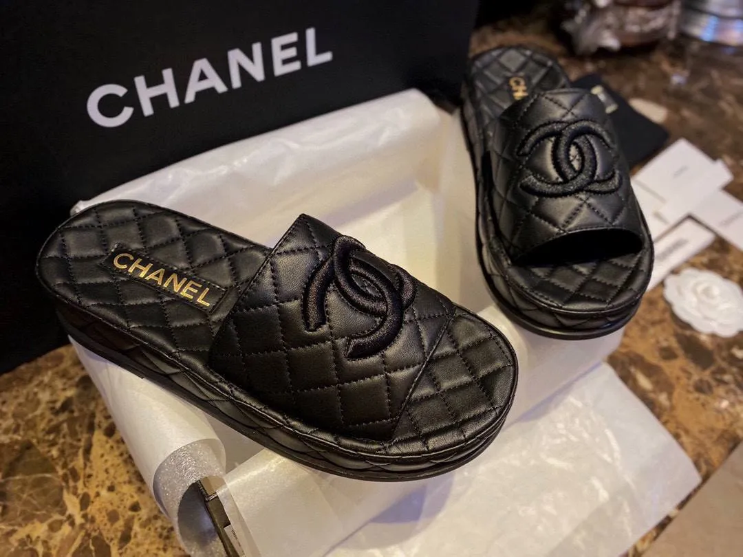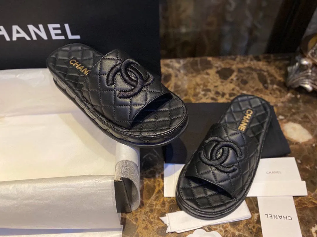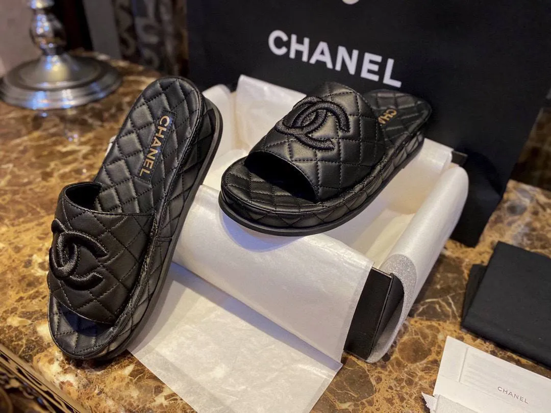 Кожаные шлепки Chanel с ромбовидным узором — это идеальное сочетание элегантности и комфорта. Изготовленные из высококачественной натуральной кожи, они обладают мягкой текстурой и приятны на ощупь. Ромбовидный узор придает модели утонченный вид, выделяя её среди остальных летних обувных решений. Логотип Chanel, изысканно оформленный на обуви, подчеркивает статус и престиж бренда.