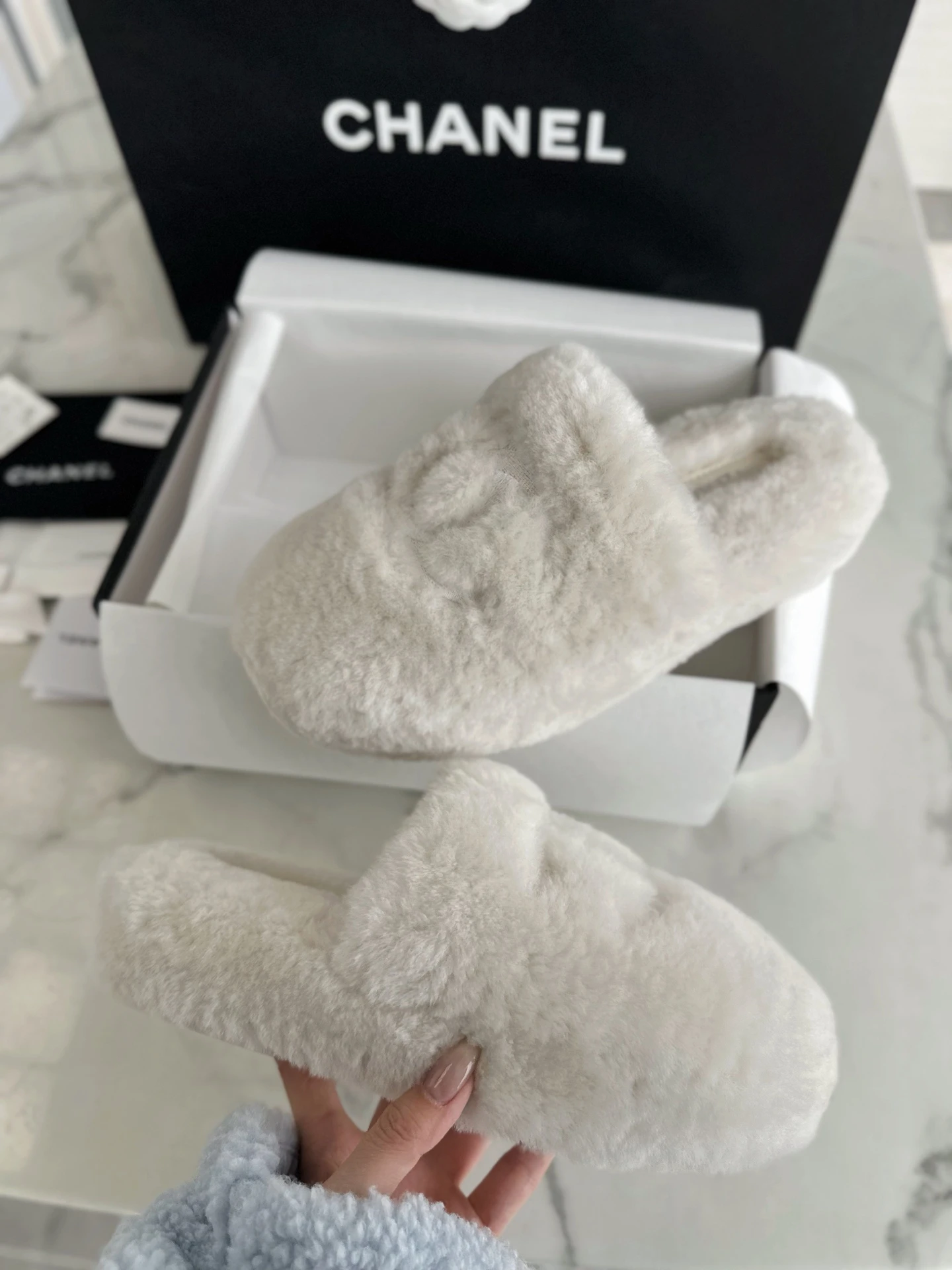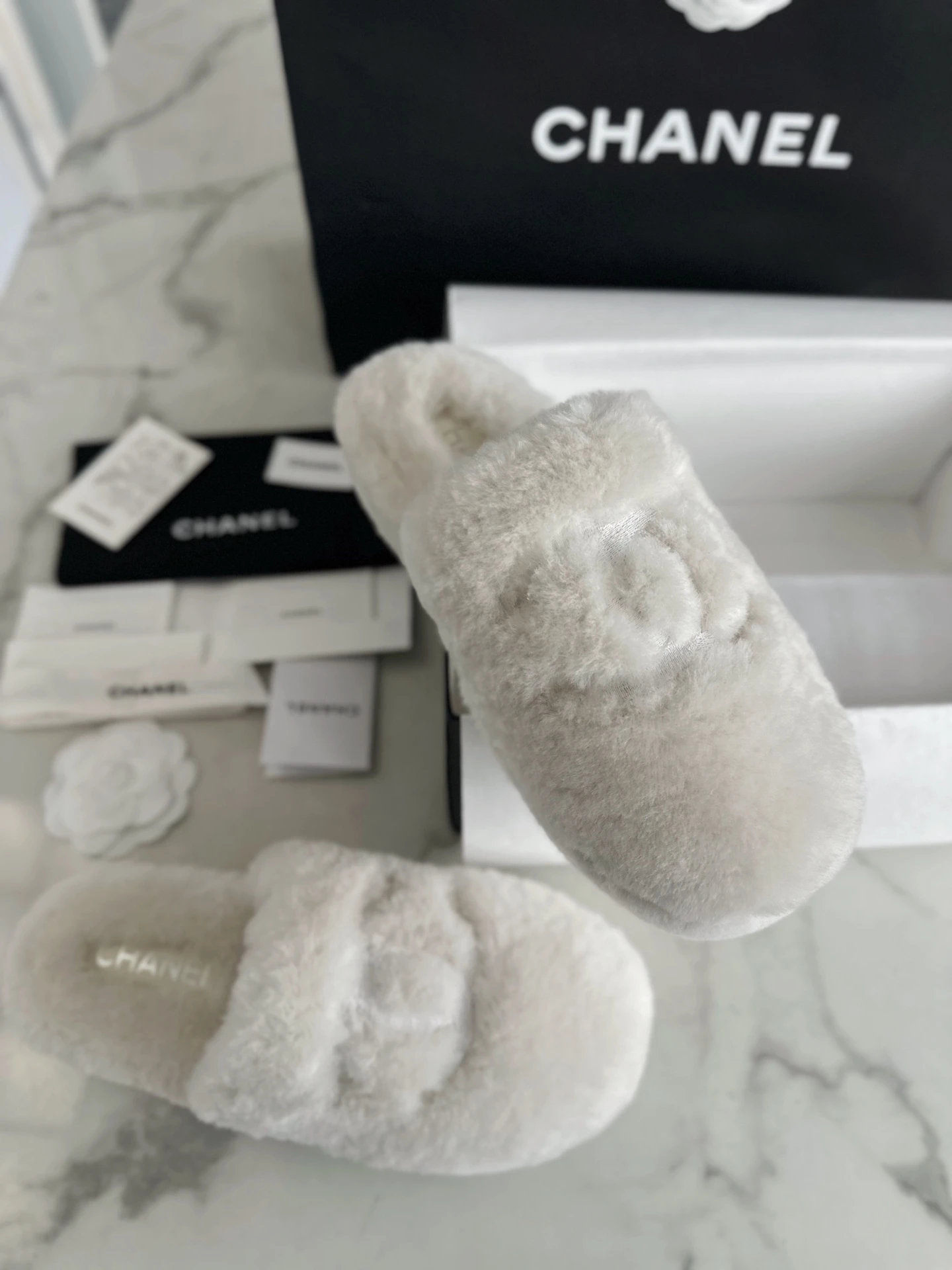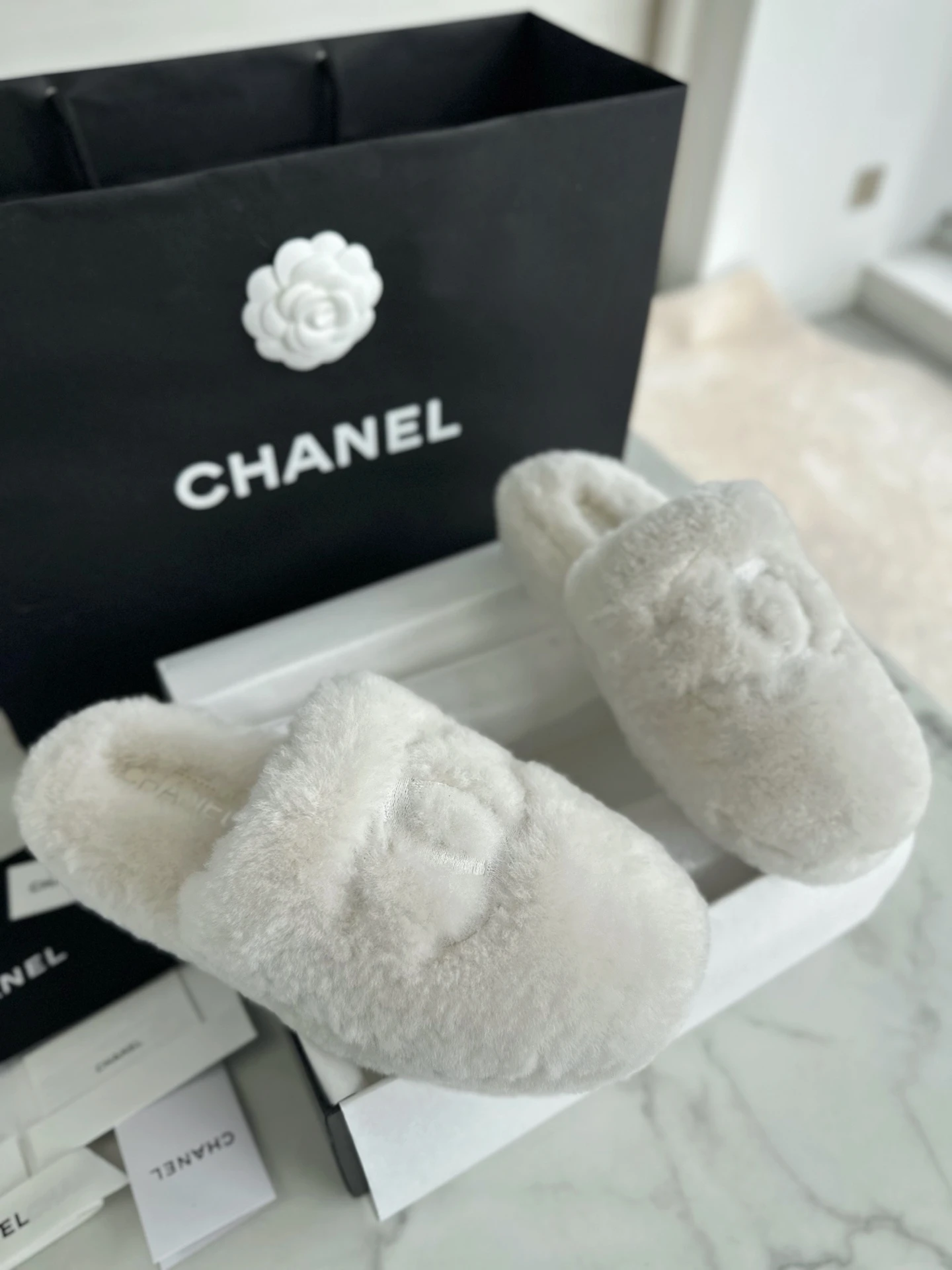 Окунитесь в уют и стиль с фирменными шлепками Chanel, выполненными из натуральной овечьей замши и мягкой шерсти ягнёнка. Элегантный бежевый и чёрный оттенок, культовая стёжка с декоративной фурнитурой в виде логотипа бренда и безупречное качество материалов дарят ощущение комфорта и премиальной заботы о ваших ногах.