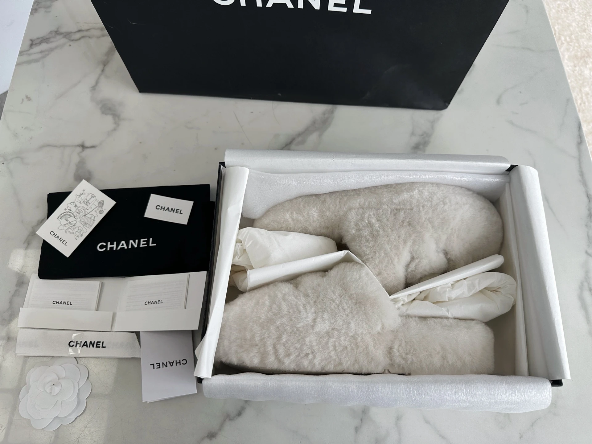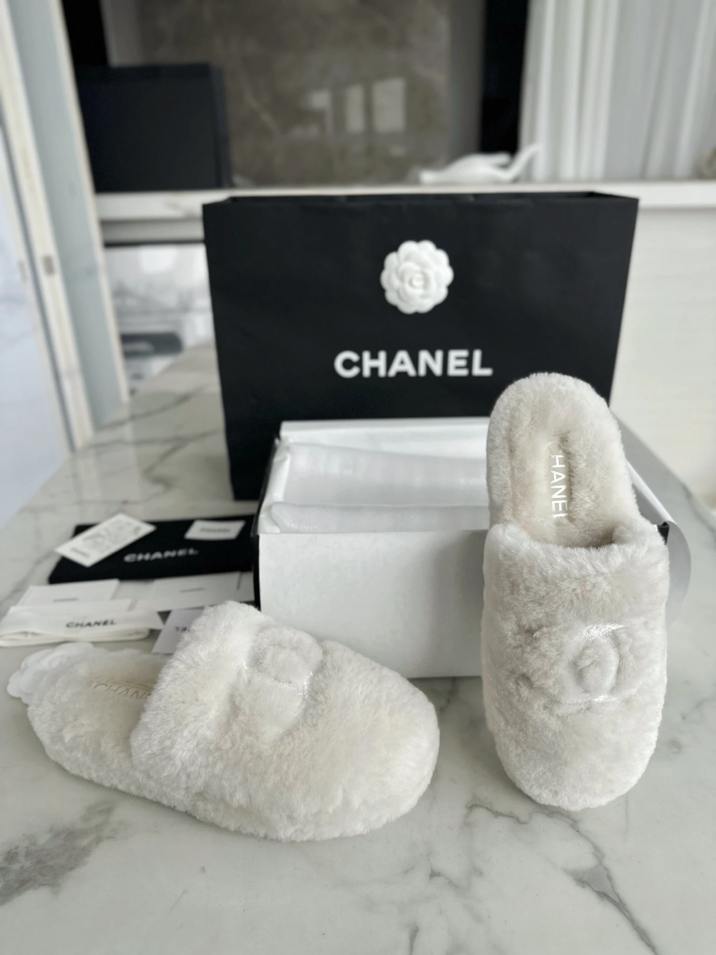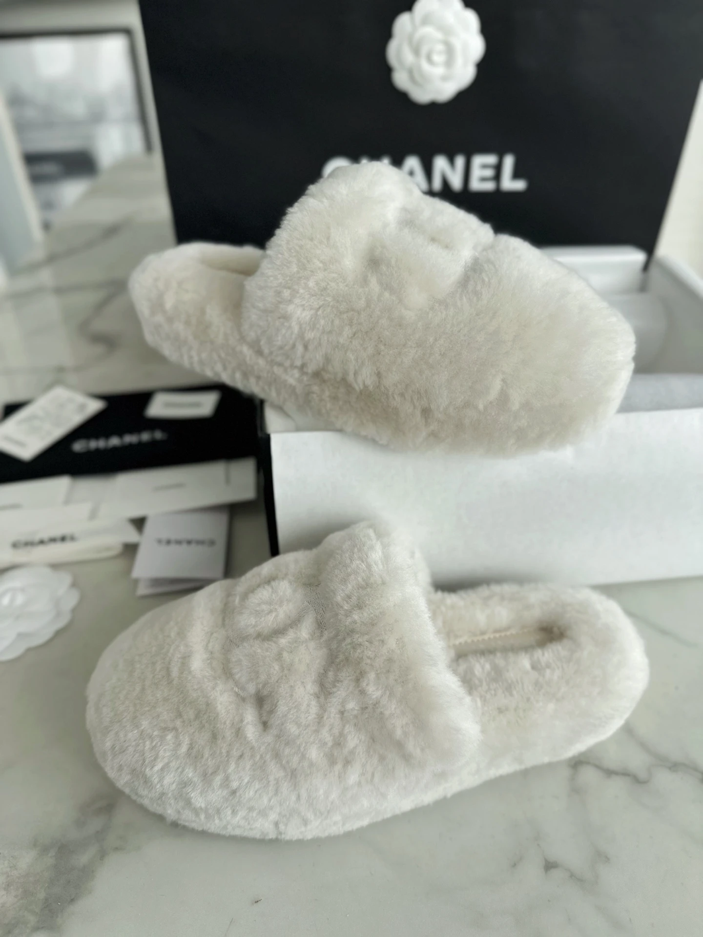 Окунитесь в уют и стиль с фирменными шлепками Chanel, выполненными из натуральной овечьей замши и мягкой шерсти ягнёнка. Элегантный бежевый и чёрный оттенок, культовая стёжка с декоративной фурнитурой в виде логотипа бренда и безупречное качество материалов дарят ощущение комфорта и премиальной заботы о ваших ногах.