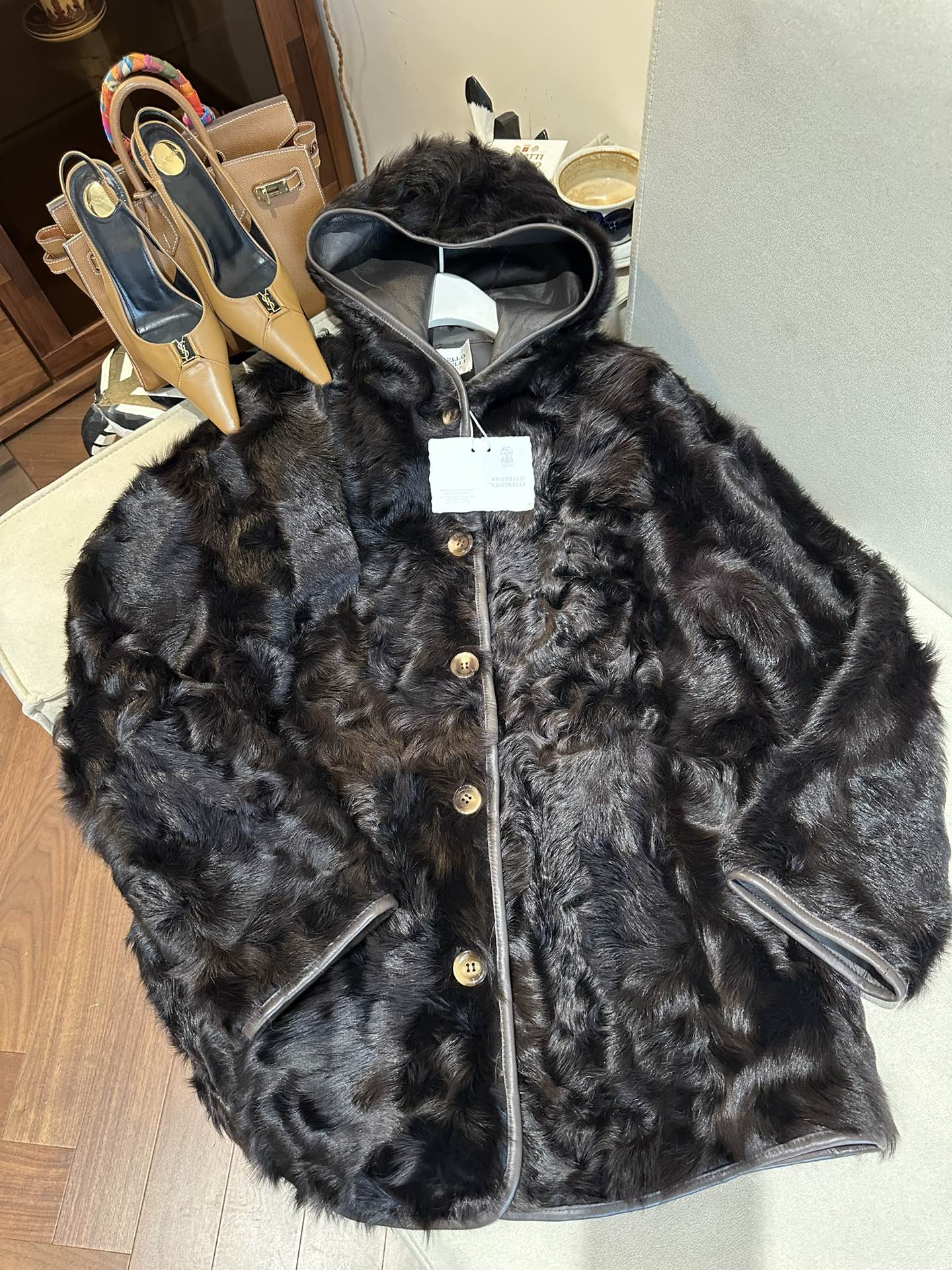 BRUNELLO CUCINELLI Женская замшевая дублёнка с мехом лисы