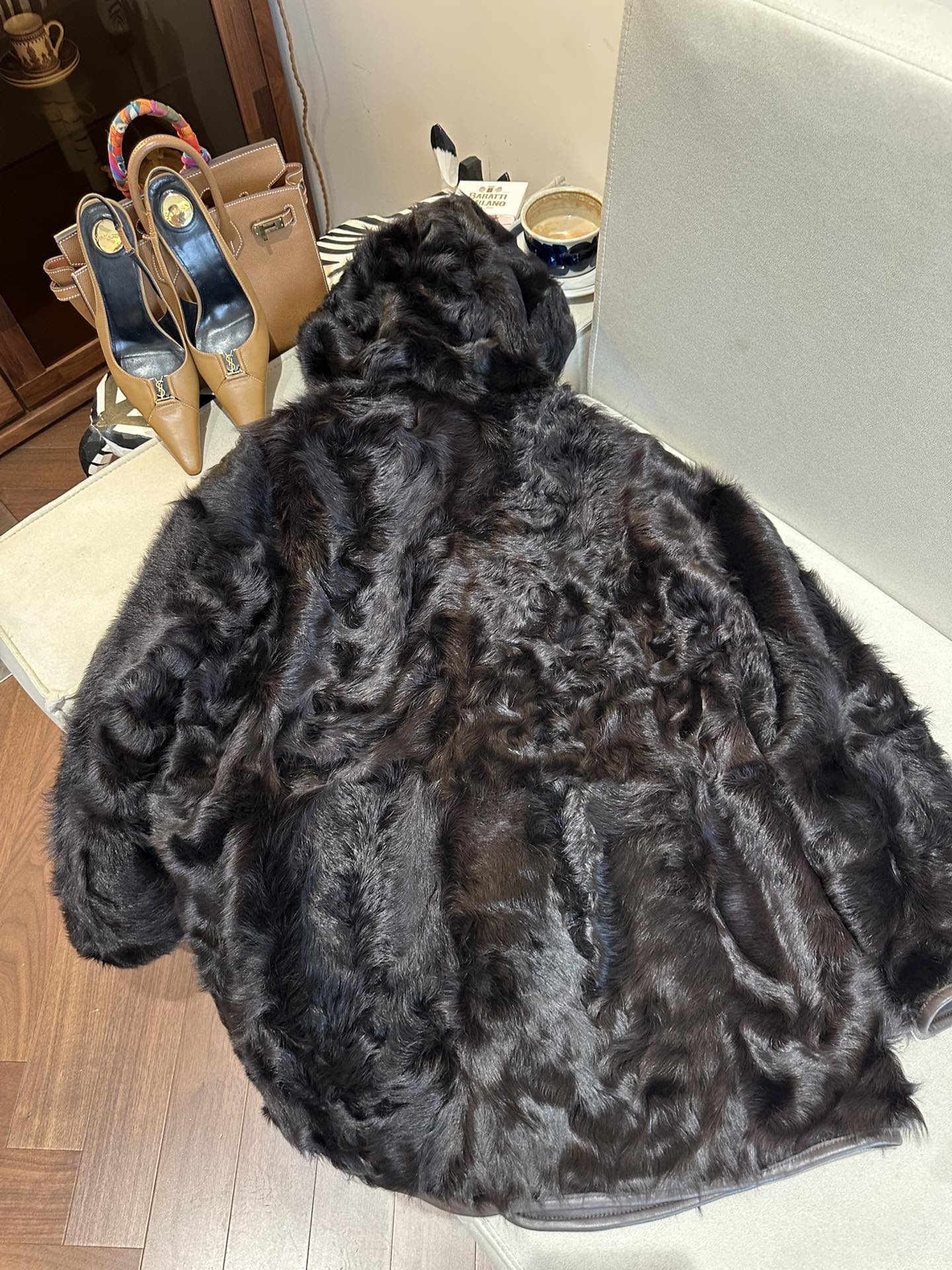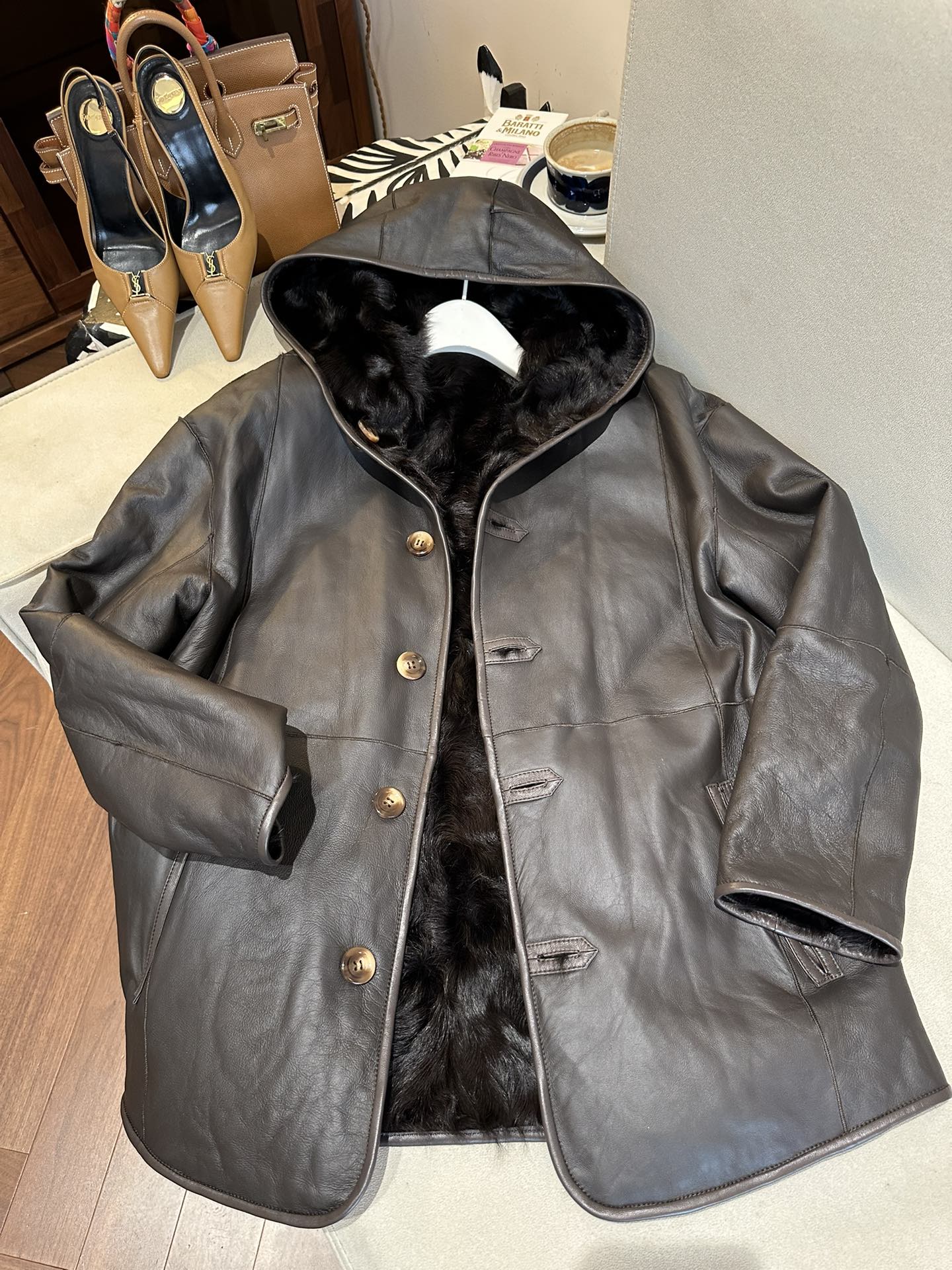 • Двусторонний: Куртка имеет уникальный двусторонний дизайн, позволяющий менять внешний вид в зависимости от настроения или ситуации. Одна сторона — замшевая, с классическим стилем, а другая — меховая, для более нарядного образа.