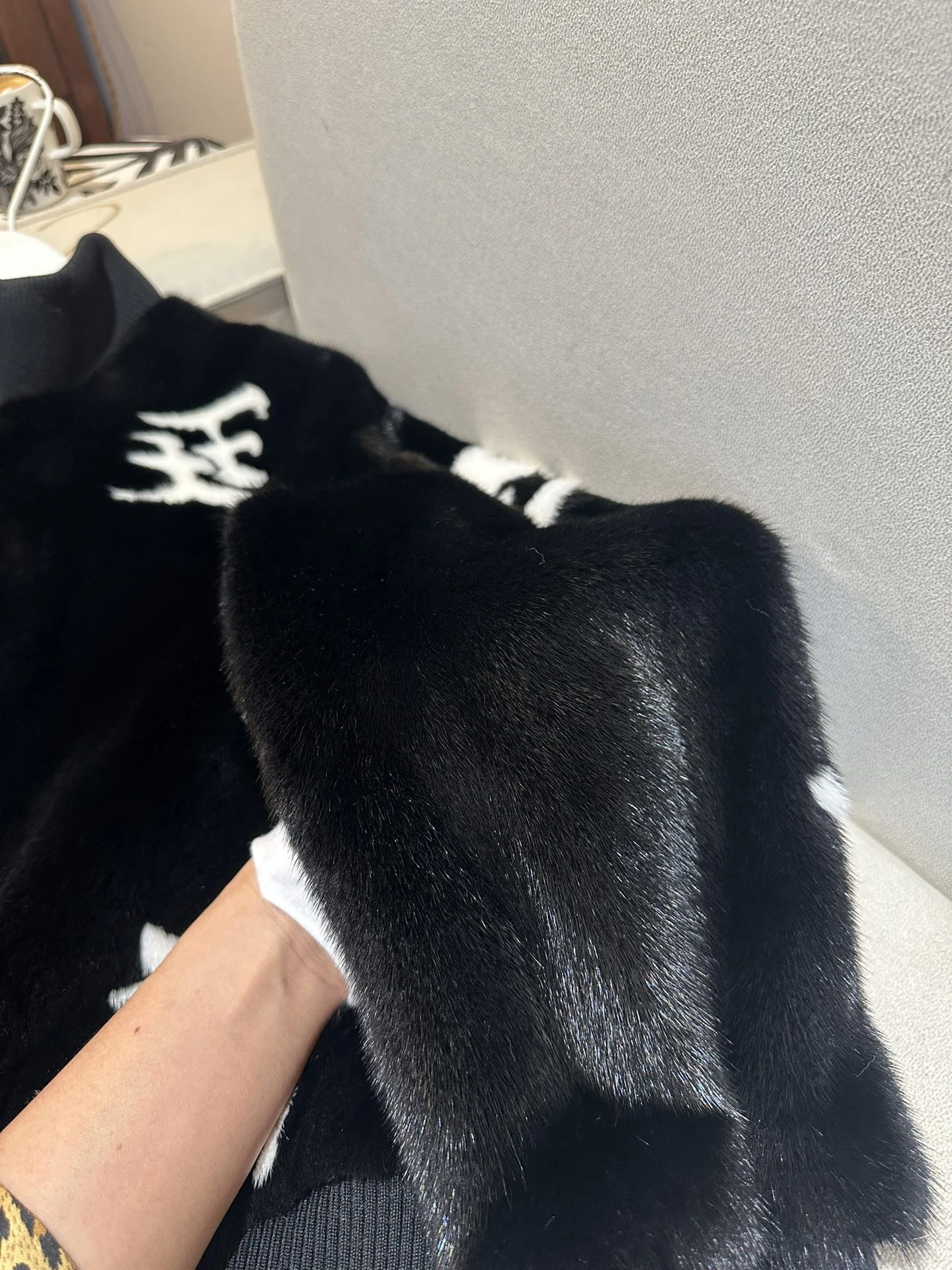 Элегантная женская шуба FENDI из норки — идеальное сочетание роскоши и современной формы. На фото представлена укороченная модель в глубокo‑черном оттенке с контрастными белыми элементами логотипа, которые создают графичный, модный акцент. Модель выполнена в стиле бомбер: лаконичный воротник‑стойка на трикотаже, резинка по низу изделия и на манжетах, создающие аккуратную посадку и комфортную теплоту.