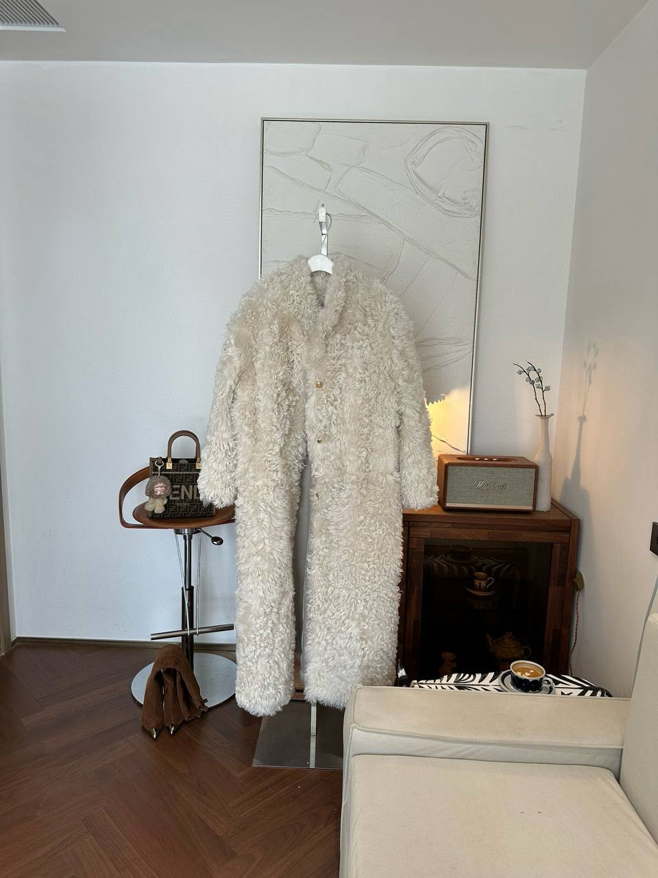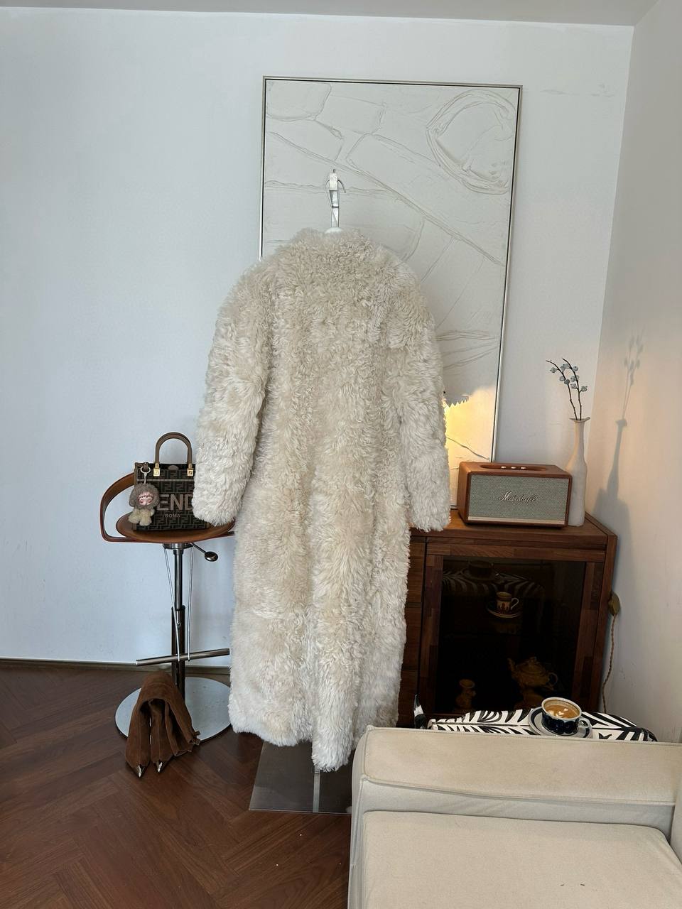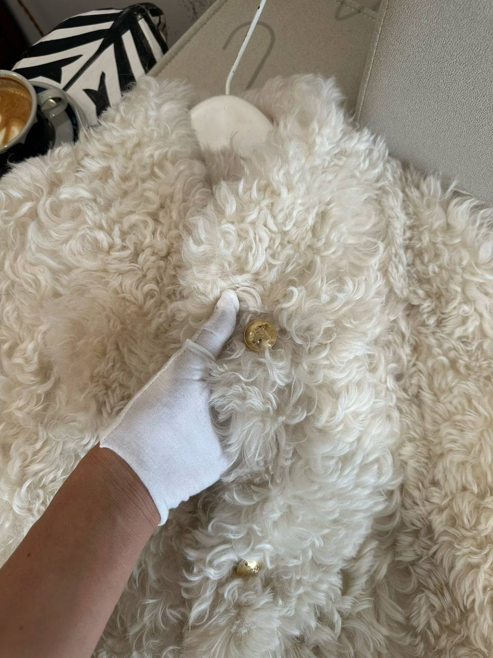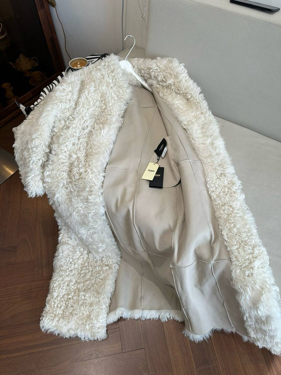 Роскошная шуба FENDI из натуральной овчины в тёплом карамельно‑бежевом оттенке. Длинная, объёмная модель в расслабленном силуэте — идеальный выбор для холодного сезона, сочетает в себе максимальный комфорт и выразительную фактуру меха.