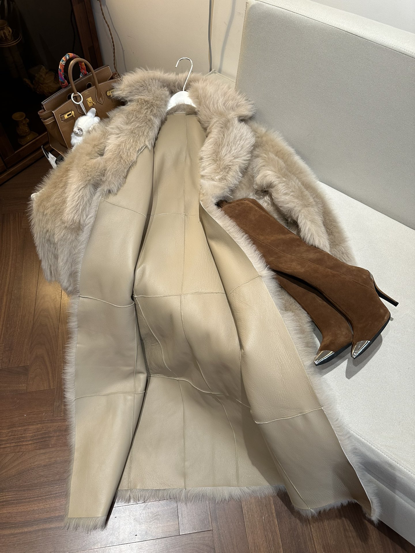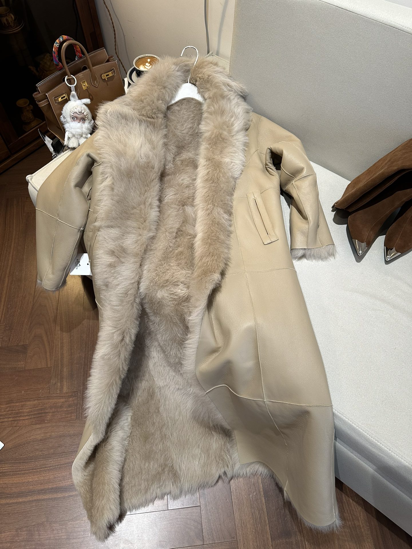 Роскошная шуба из натуральной овчины в мягком бежево‑капучиновом оттенке. Объемный пушистый ворс высокой плотности придает изделию эффект «облака» — тепло и комфорт в сочетании с утончённой лаконичностью силуэта. Идеальное решение для холодной зимы в городском гардеробе и для вечерних выходов.