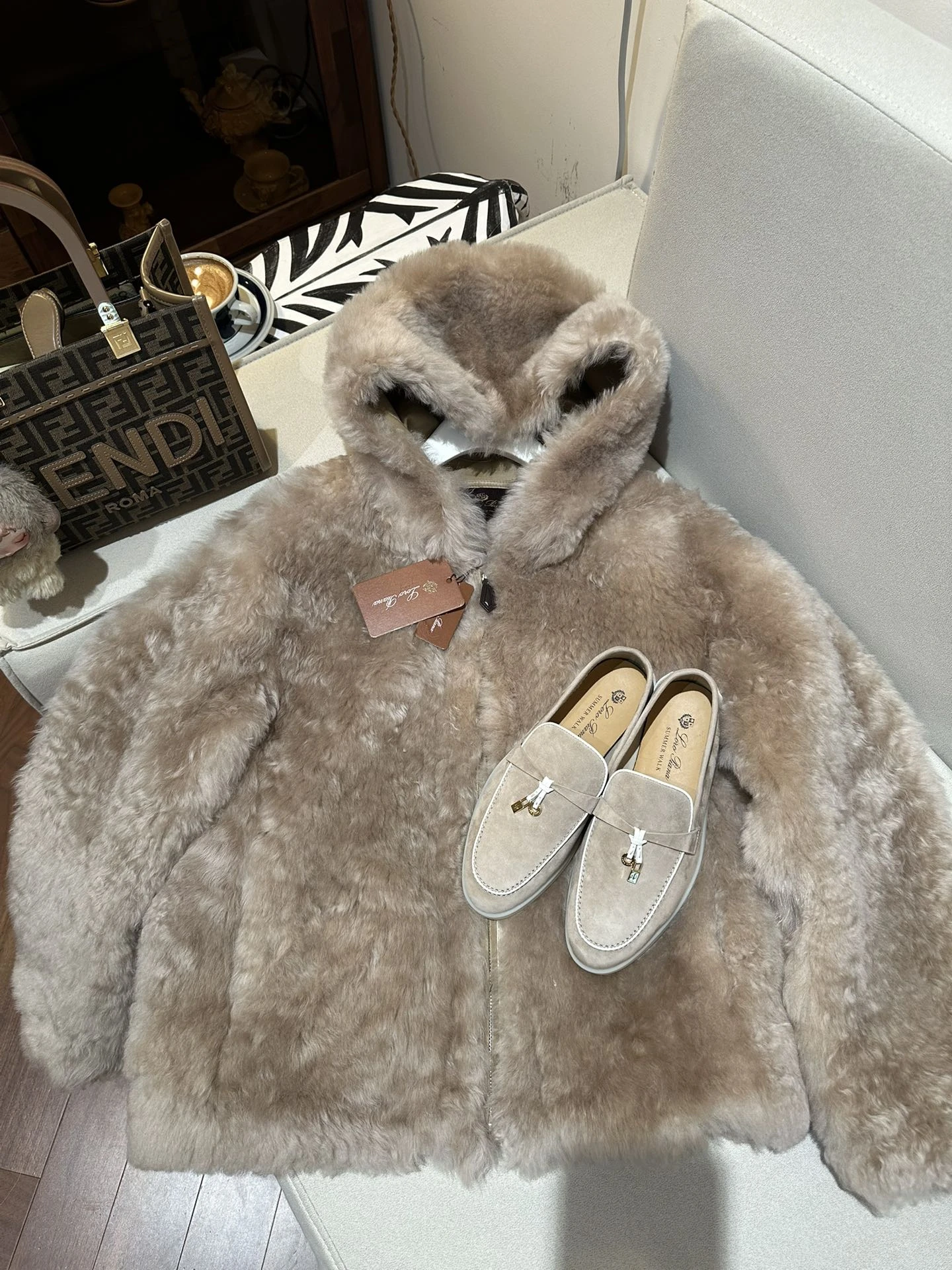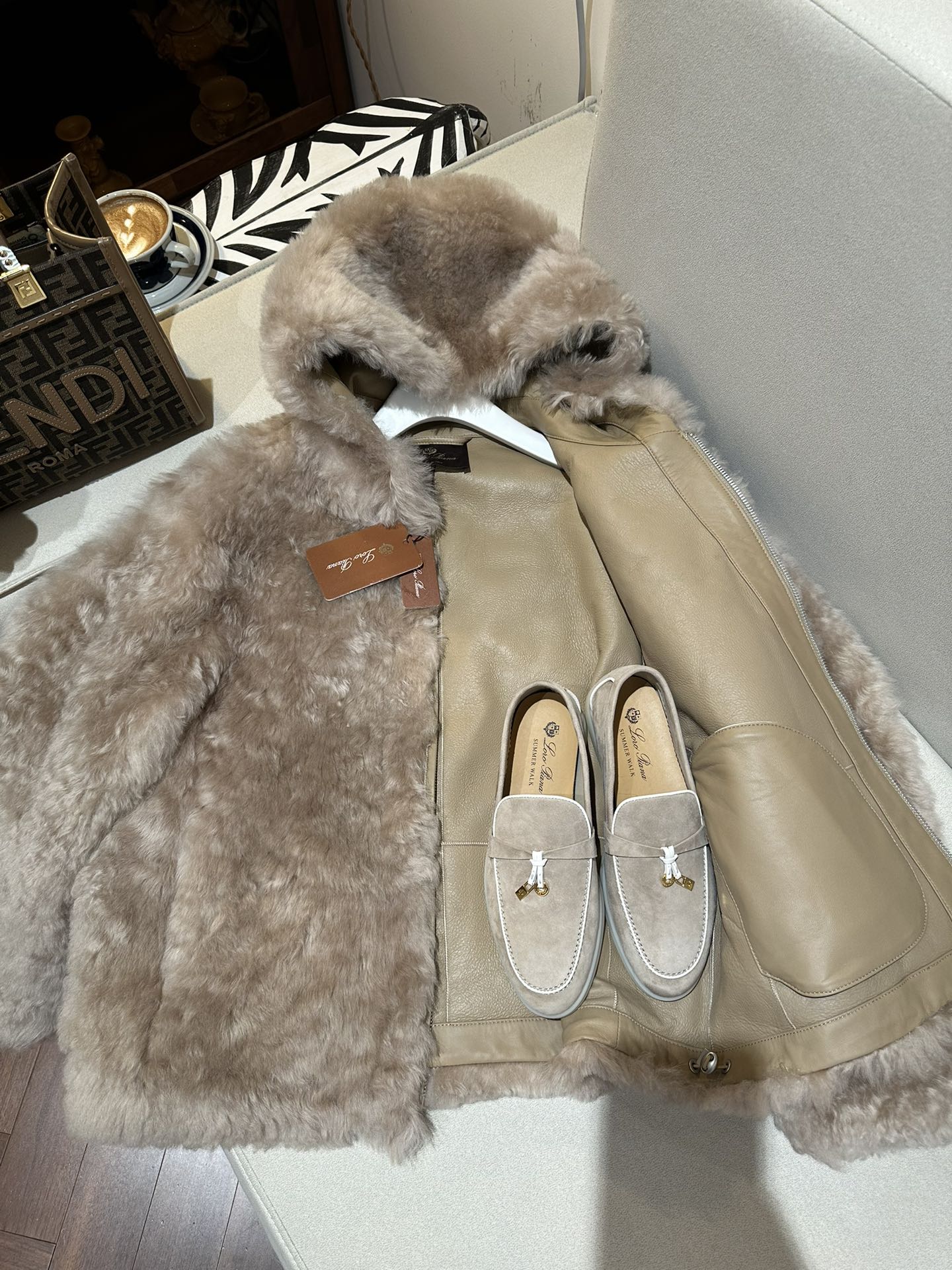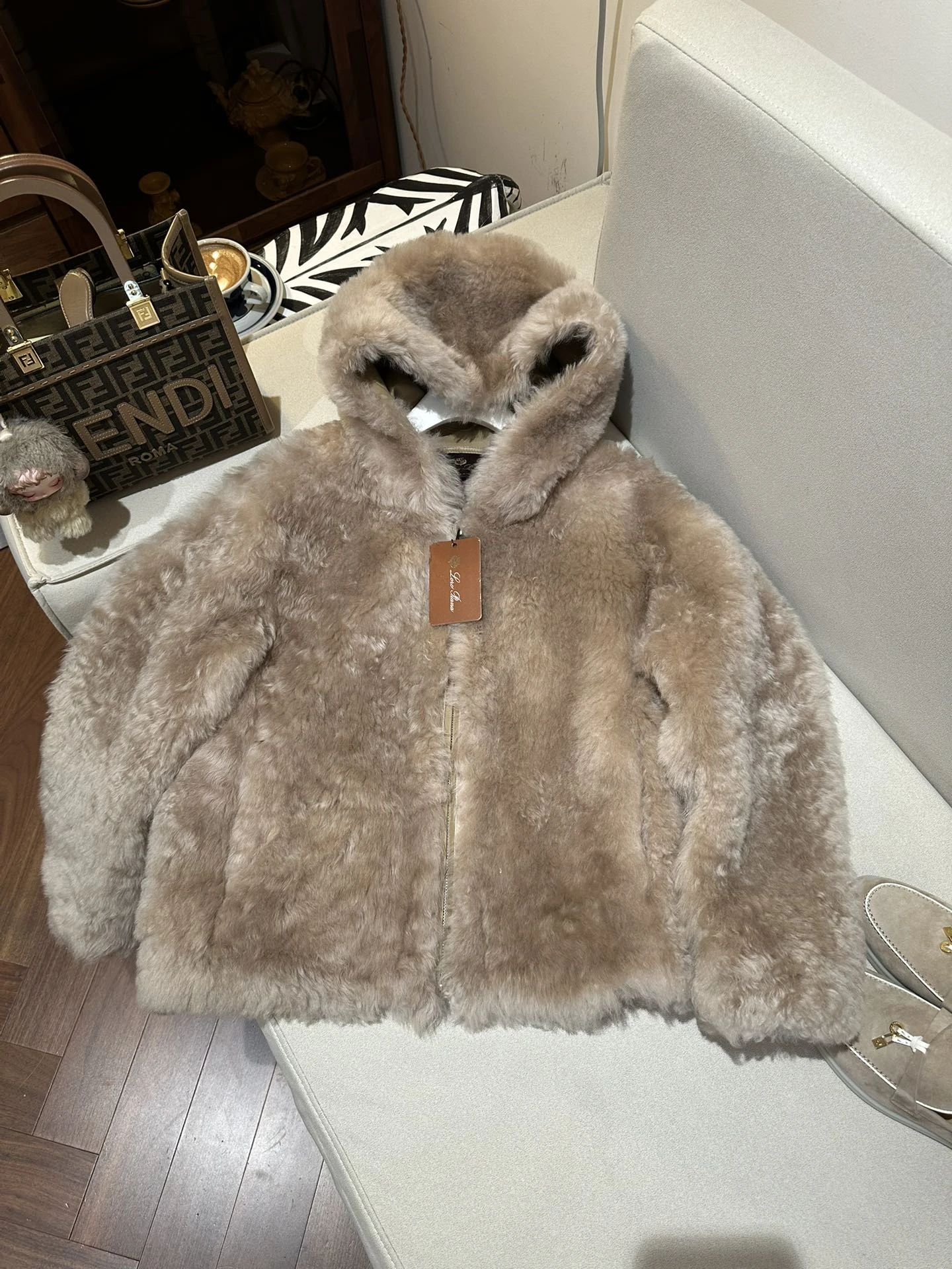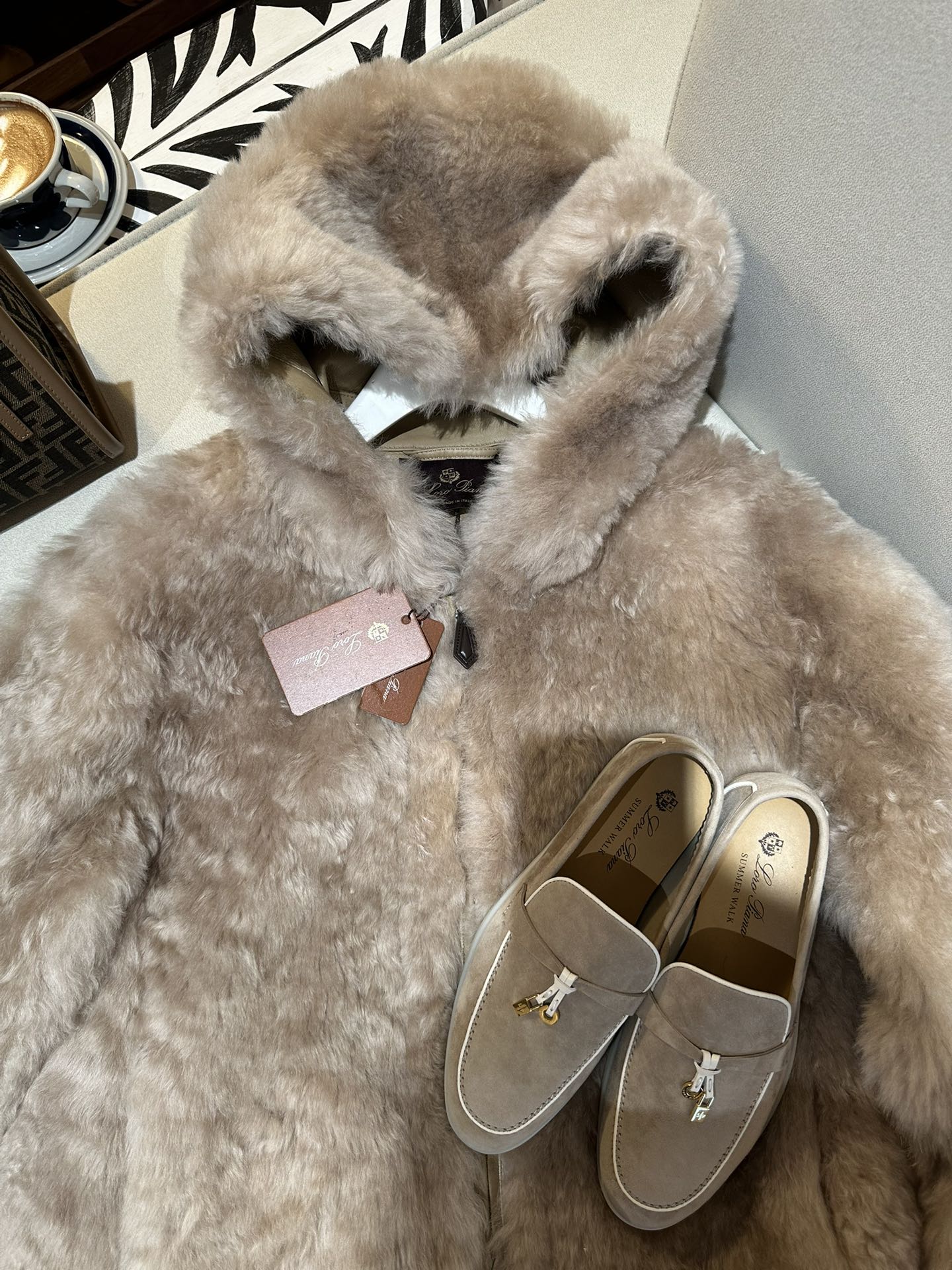 • Отделка: аккуратная кожаная окантовка и декоративные швы, фирменные бирки Loro Piana.