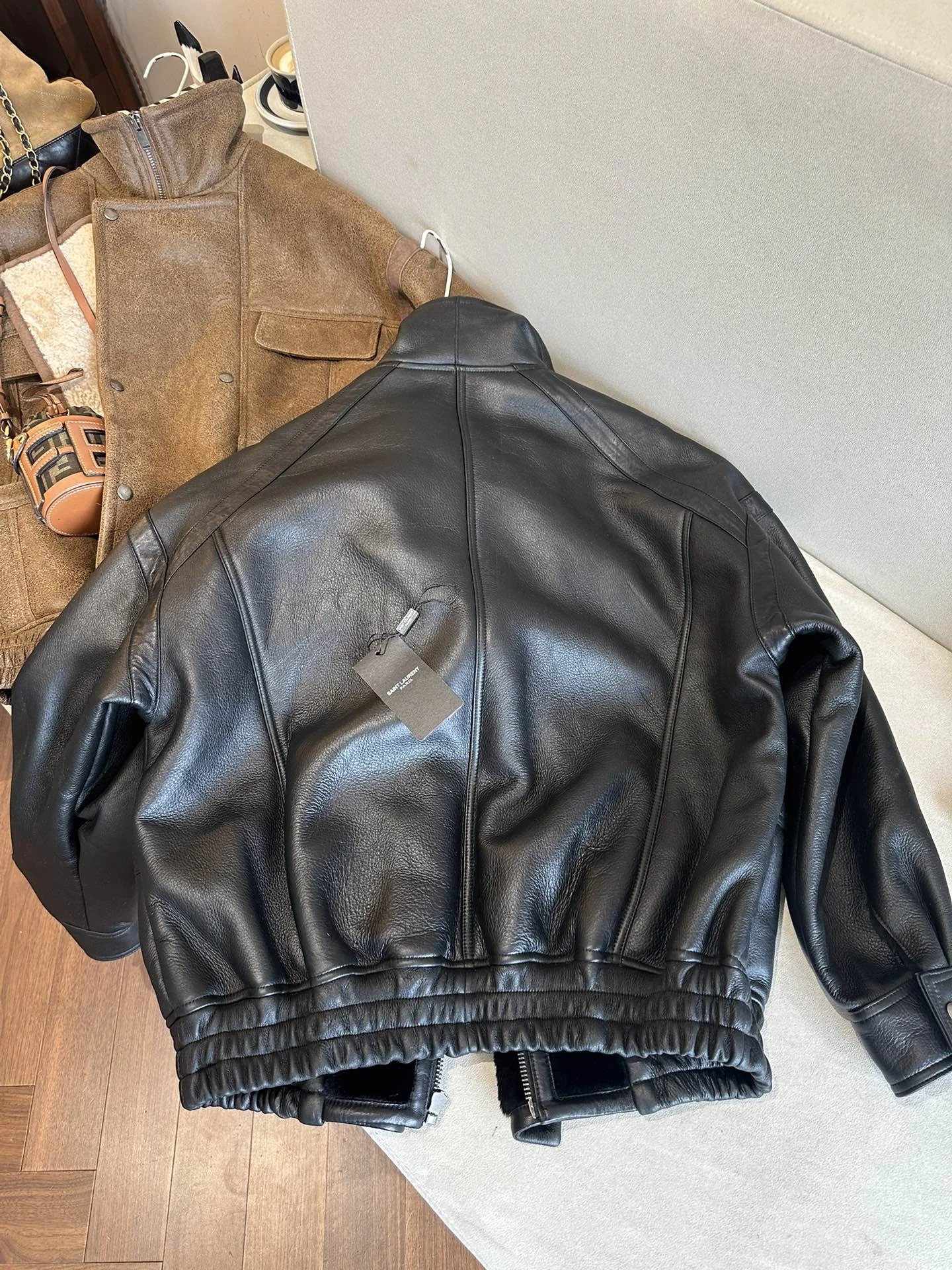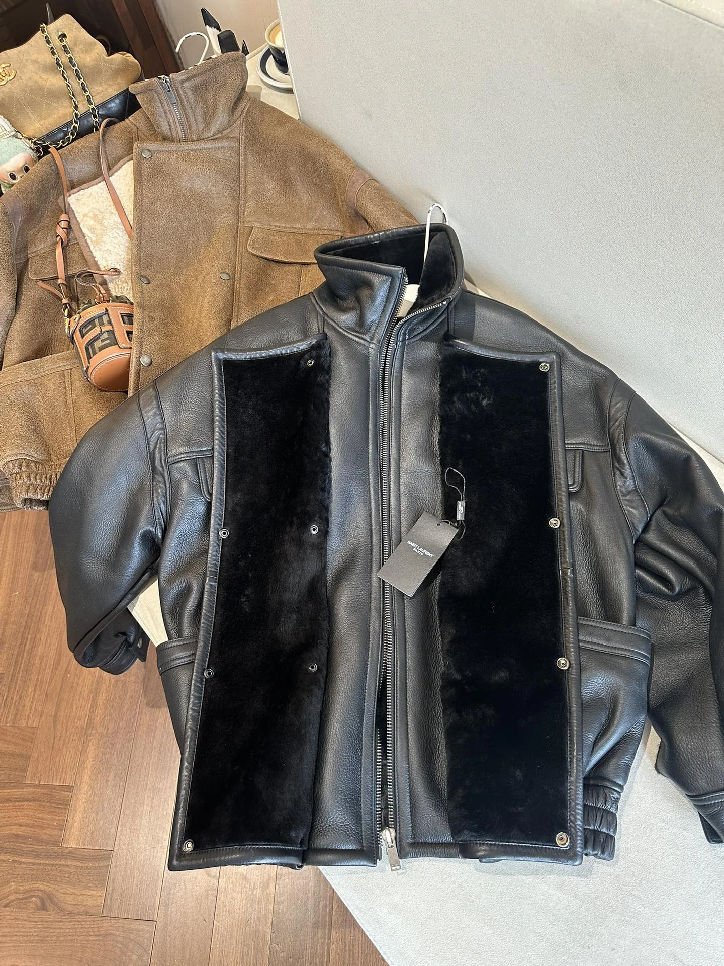 SAINT LAURENT Женская кожаная дублёнка с шерстью