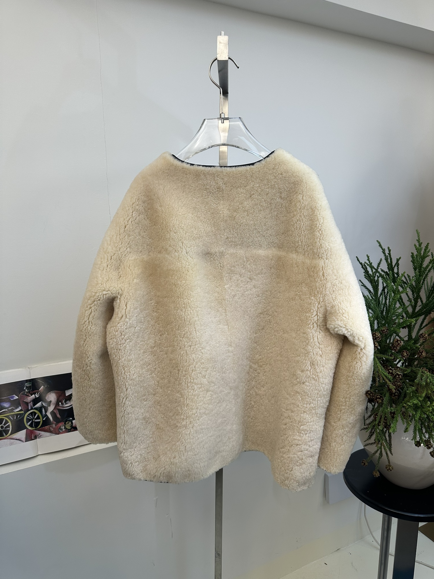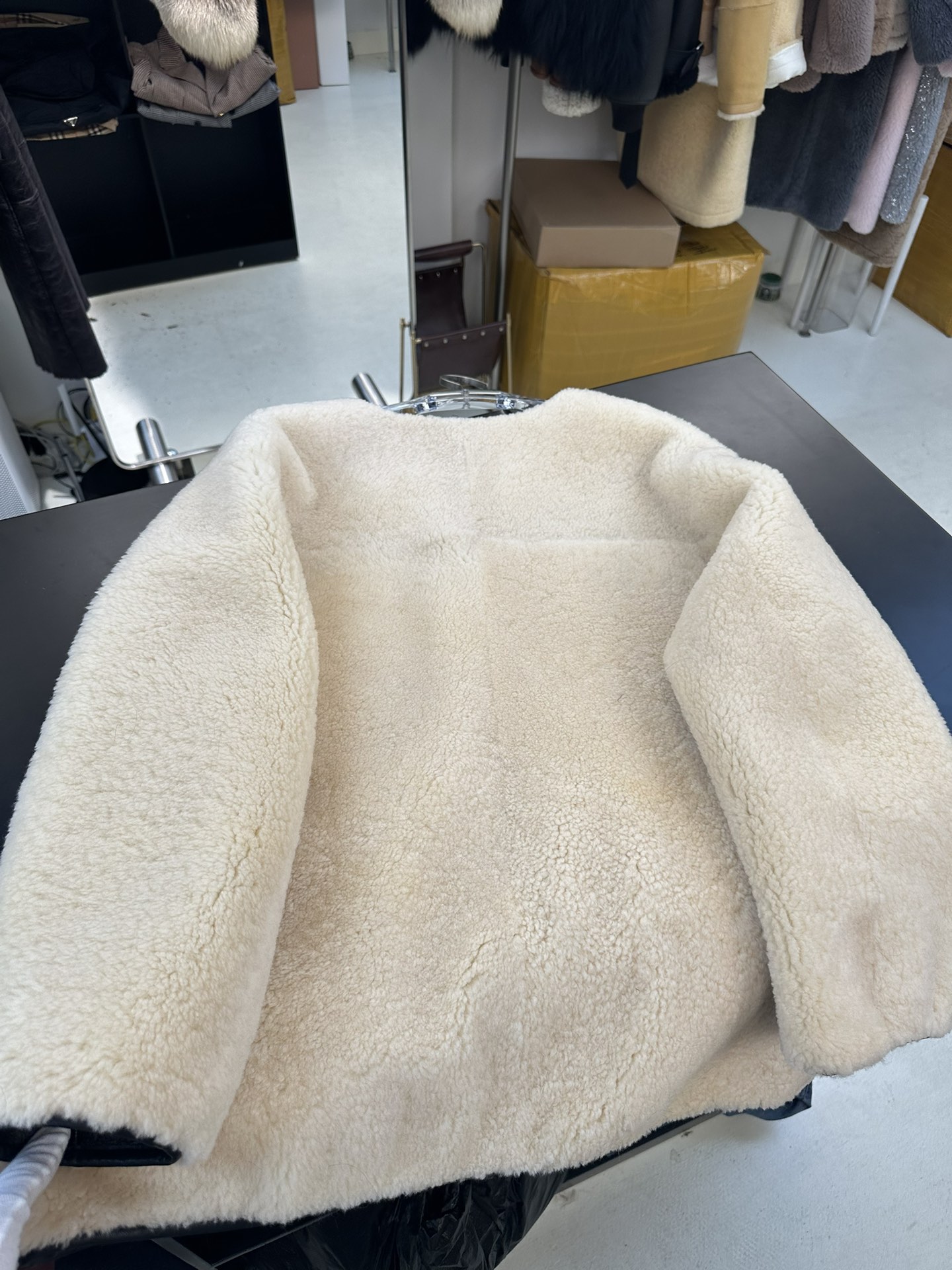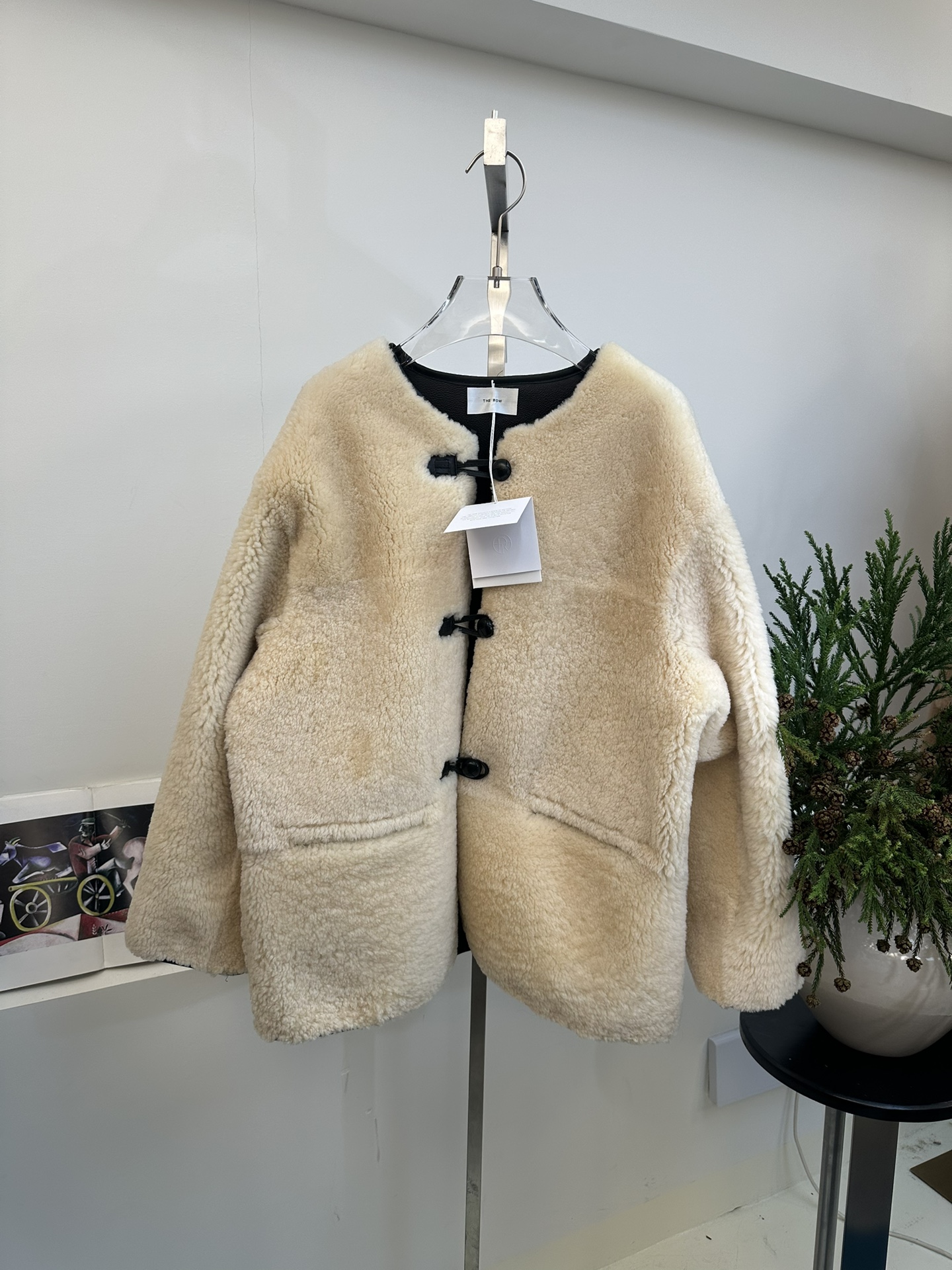 Женская кожаная дублёнка из меха THE ROW - эта модель сочетает лаконичный силуэт и роскошную фактуру натурального меха: плотная, пушистая овчина сохраняет тепло и при этом выглядит чрезвычайно элегантно. Свободный оверсайз‑кроя с приглушёнными плечами и прямыми рукавами создаёт лёгкий архитектурный образ в духе THE ROW. Контрастная внутренняя отделка и тёмные декоративные застёжки подчёркивают минималистичную эстетику. Практичные накладные карманы и аккуратные швы делают вещь функциональной и стильной.