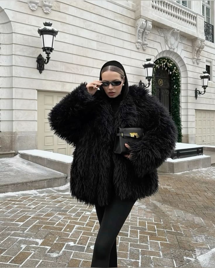 • Натуральная овчина с длинным и мягким ворсом обеспечивает неповторимую тактильность и естественный объем.