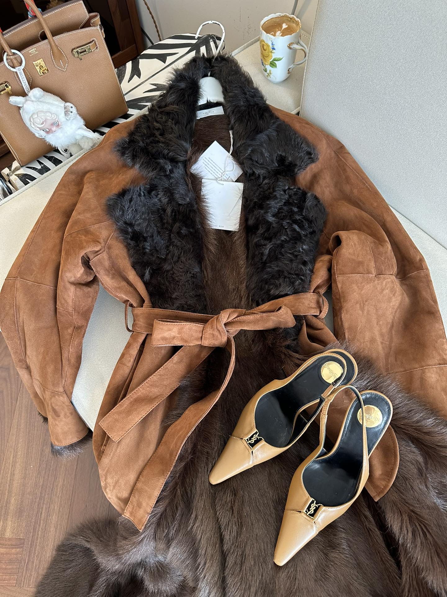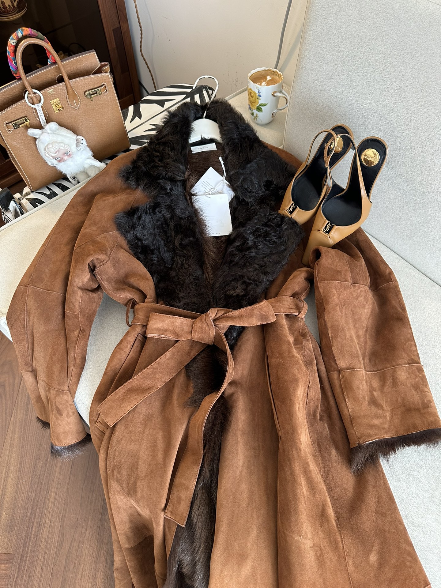 Эффектное женское пальто от THE ROW — воплощение сдержанной роскоши и современного стиля. Модель выполнена из мягкой, высококачественной натуральной замши теплого коньячного оттенка, который смотрится особенно элегантно. Просторный, удлинённый крой с подчеркнутой талией благодаря широкому съемному поясу позволяет создать идеальный образ в стиле effortless chic.