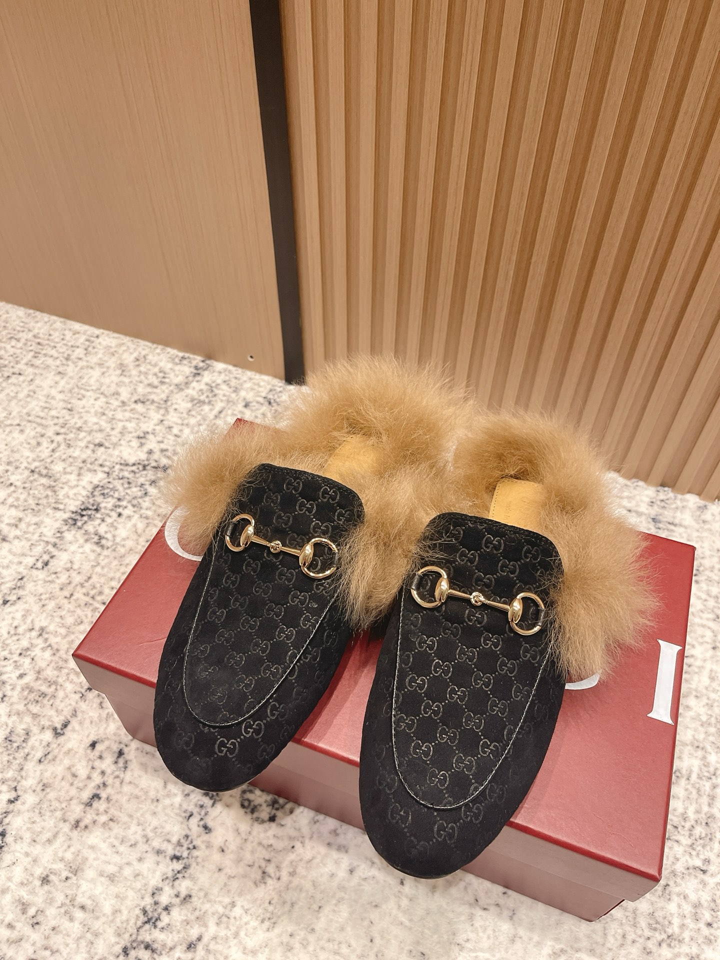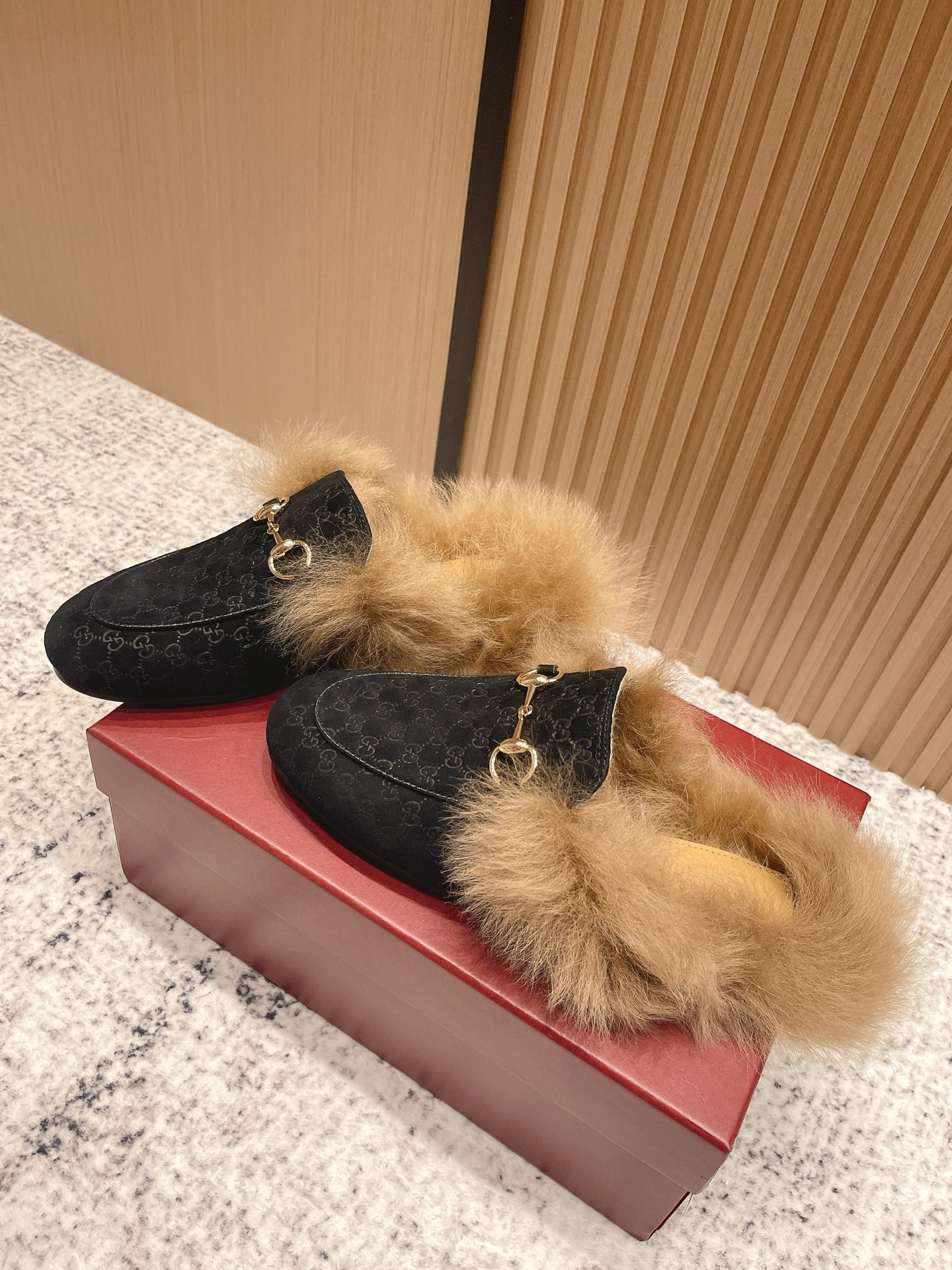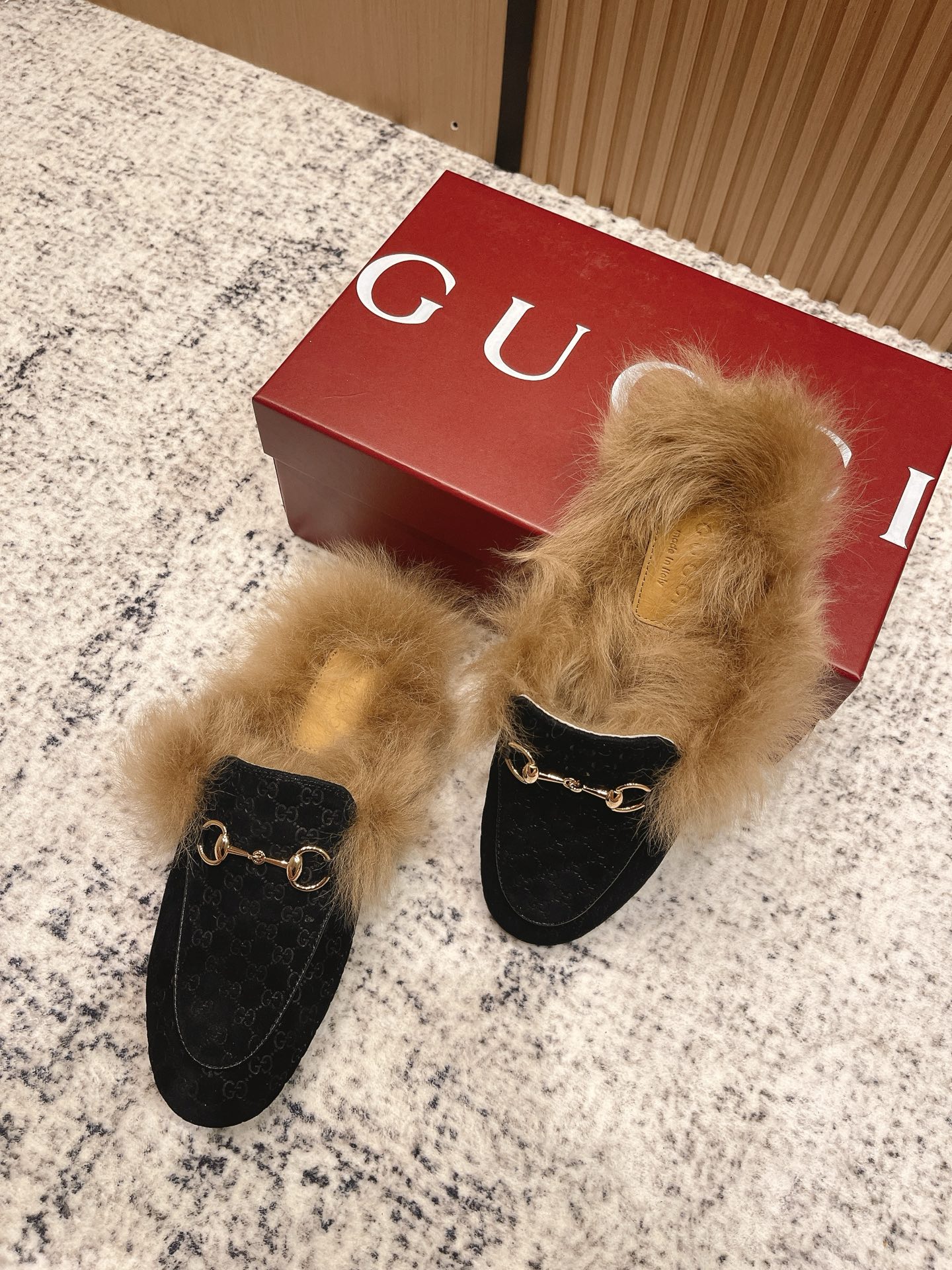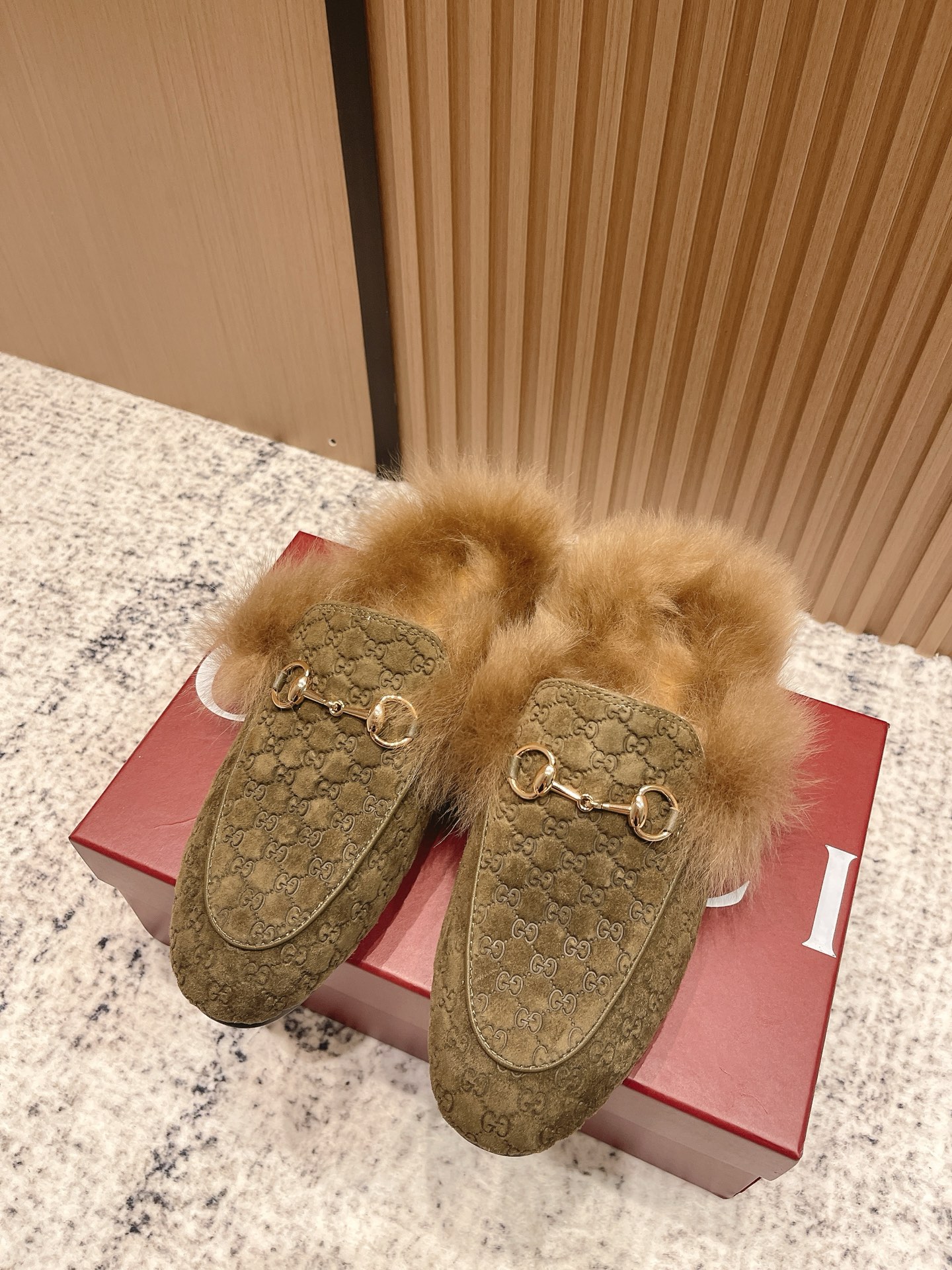 GUCCI Женские мюли Princetown из замши на меху