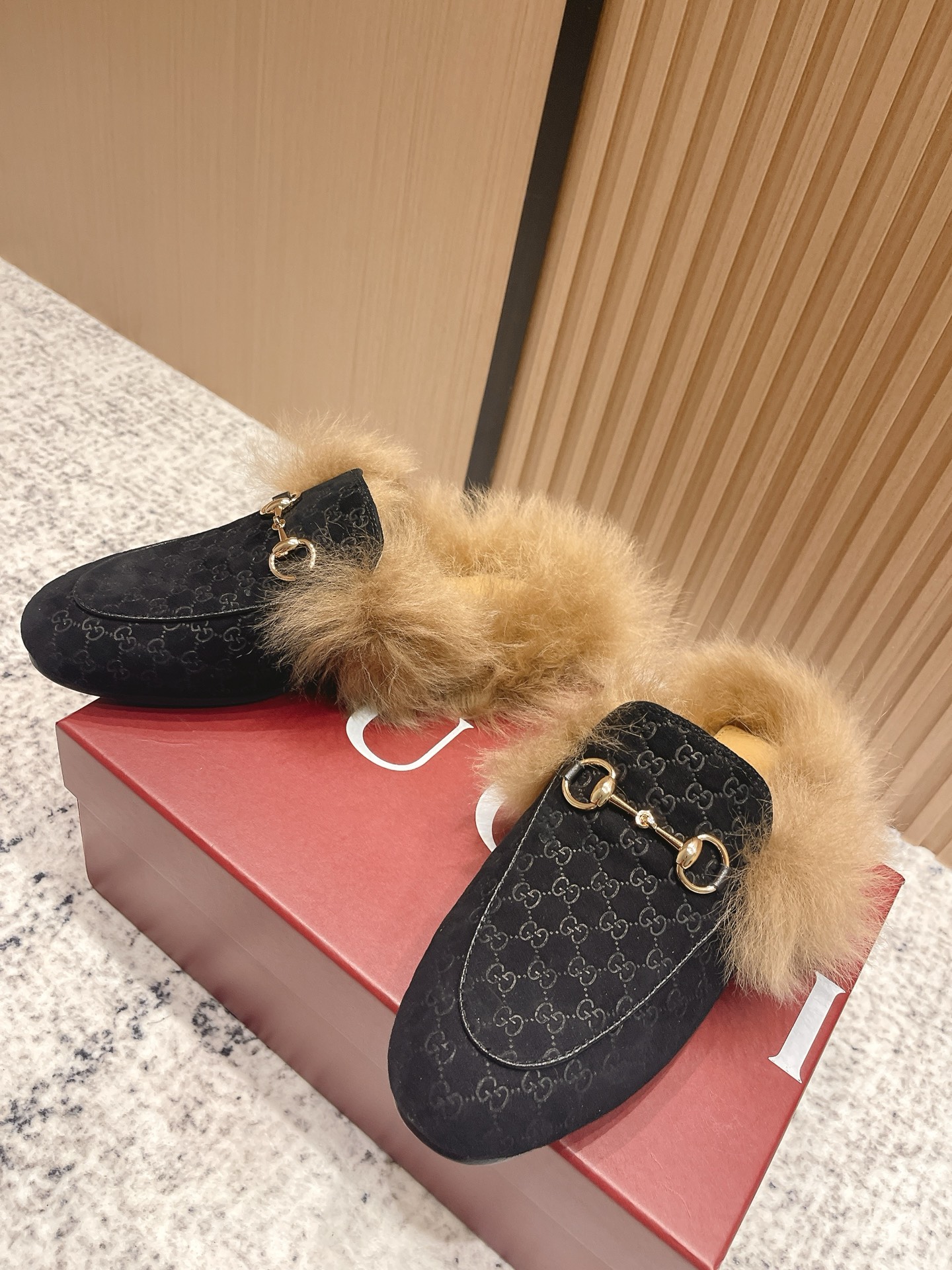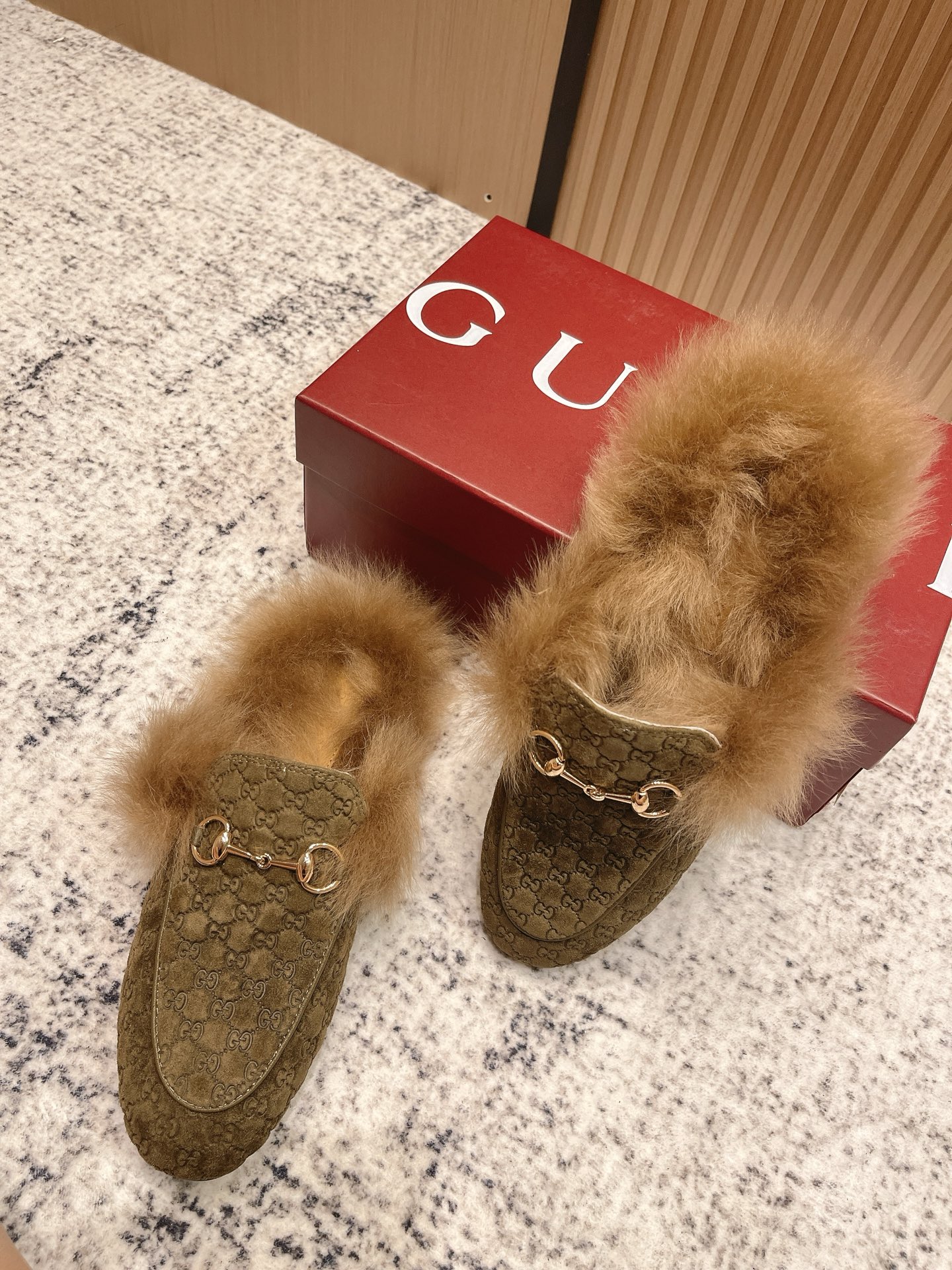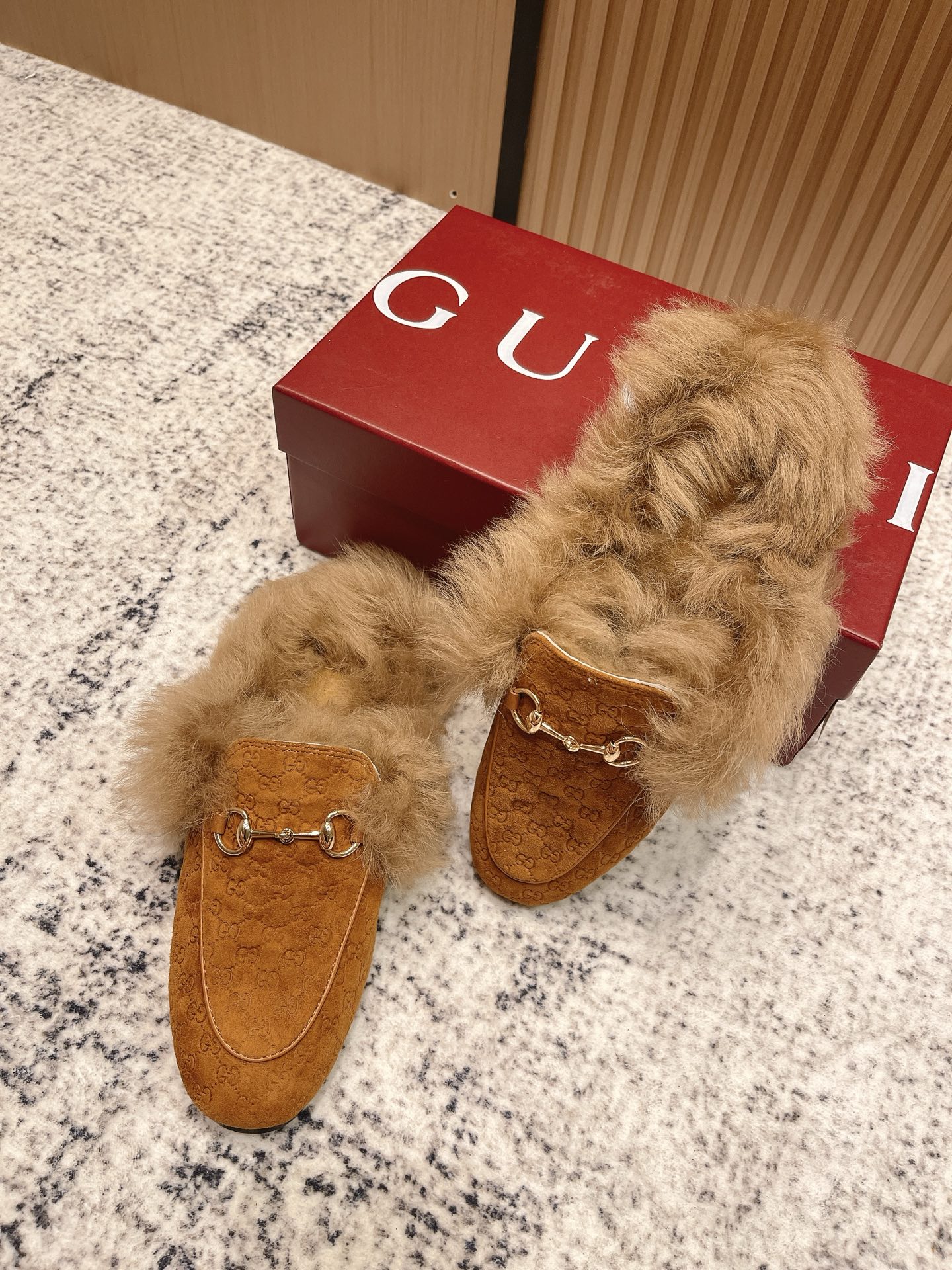 GUCCI Женские мюли Princetown из замши на меху