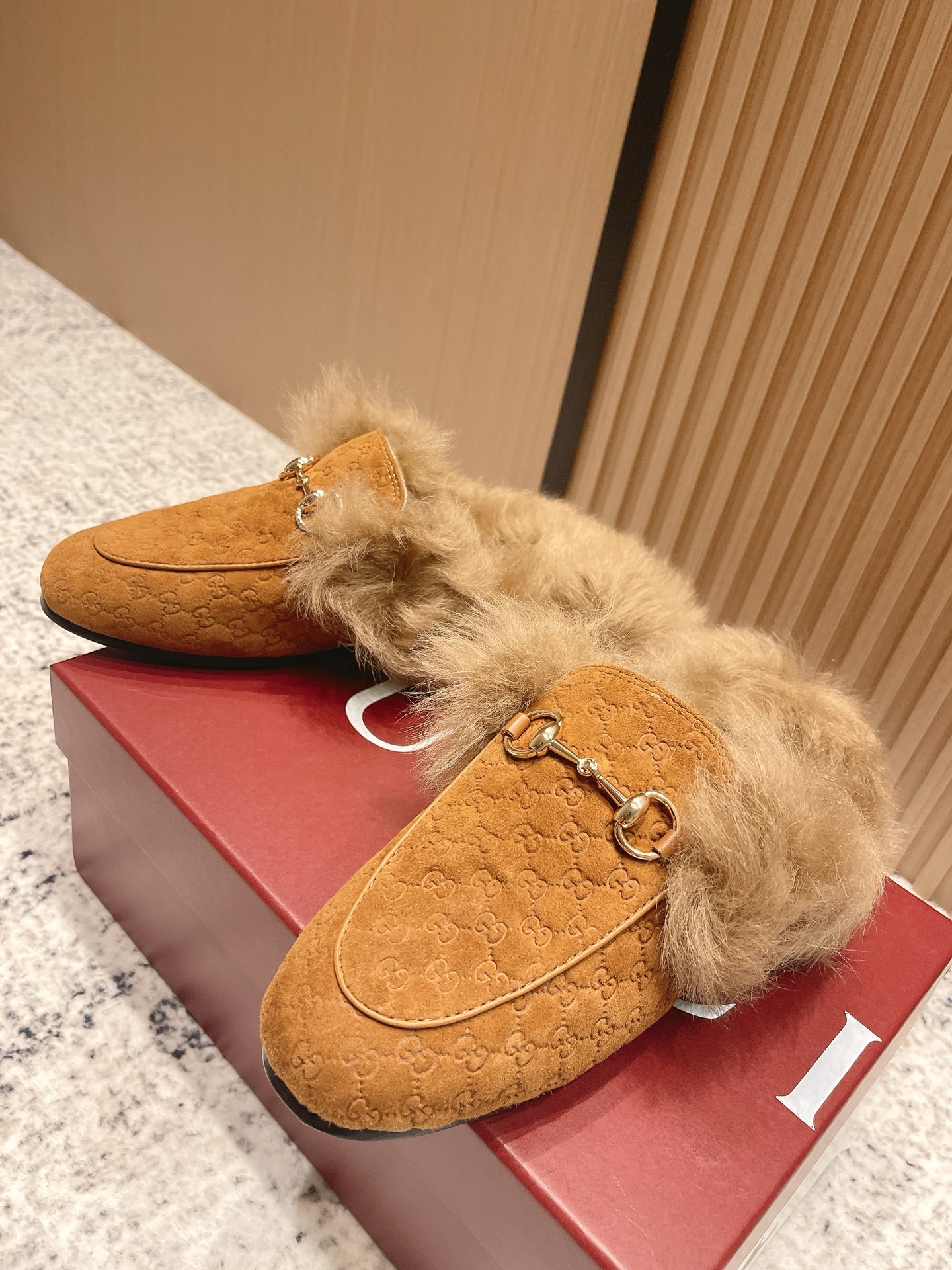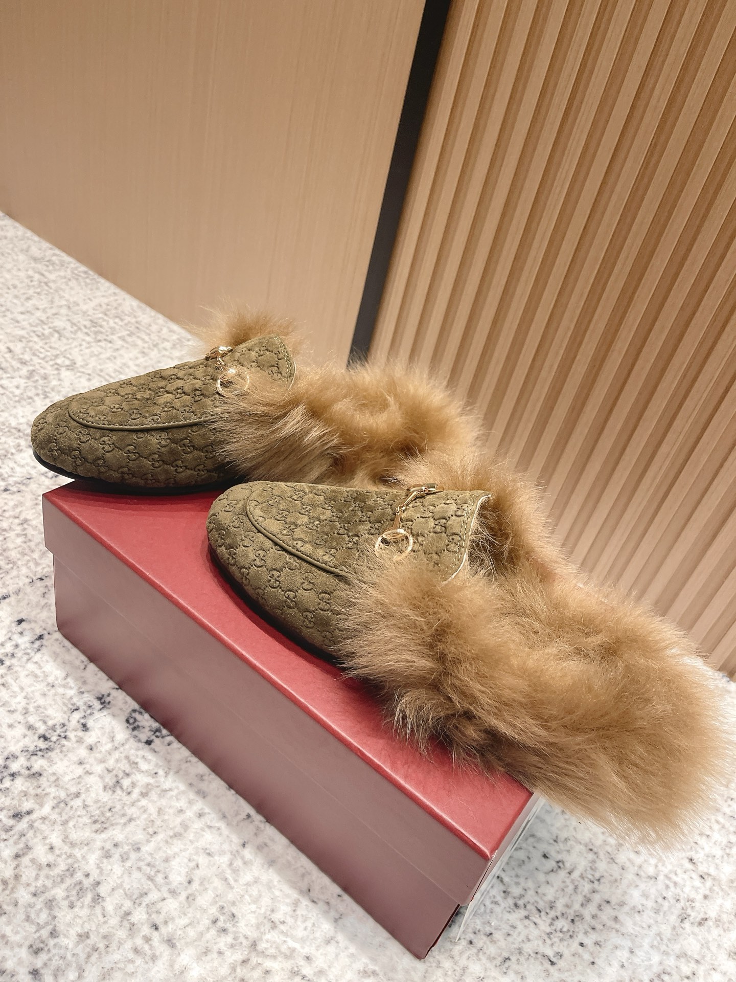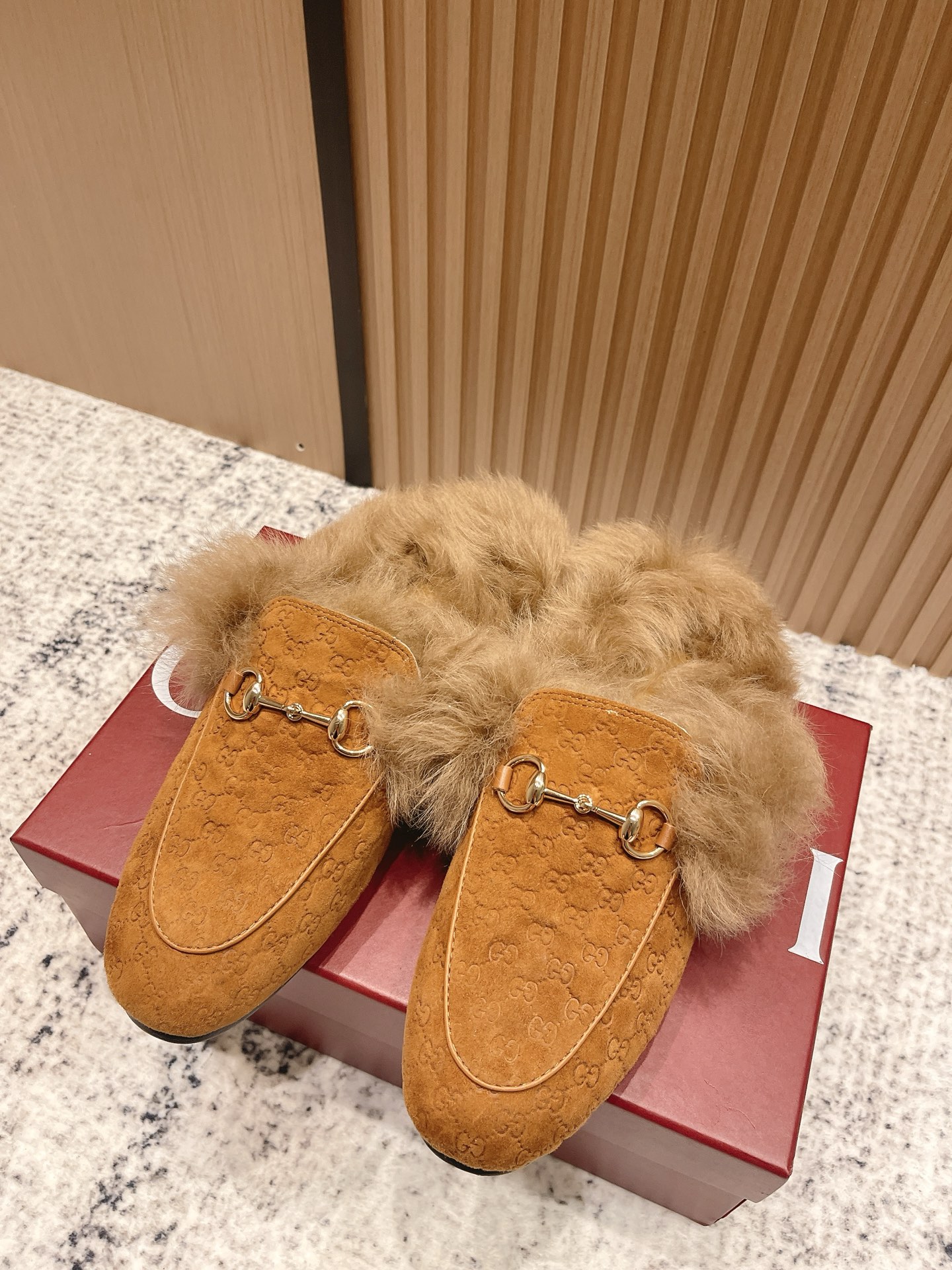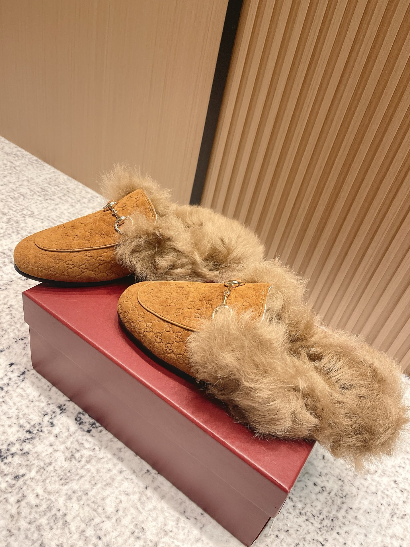 GUCCI Женские мюли Princetown из замши на меху
