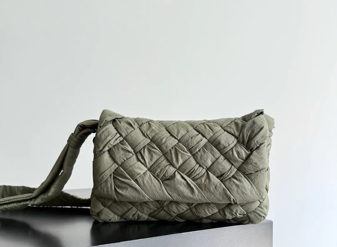 Rumple Messenger – идеальное сочетание легкости и функциональности. Эта сумка через плечо изготовлена из ультралегкого бумажного нейлона в технике Intreccio, что делает ее идеальным компаньоном для ежедневных приключений. Регулируемый ремешок позволяет настроить посадку для максимального комфорта. Узор Foulard Intreccio придает ей узнаваемый стиль Bottega Veneta. Внутри находится один карман на молнии для хранения ценных вещей. Минималистичный дизайн без подкладки подчеркивает ее легкость. Отделка фурнитуры – элегантное серебро.