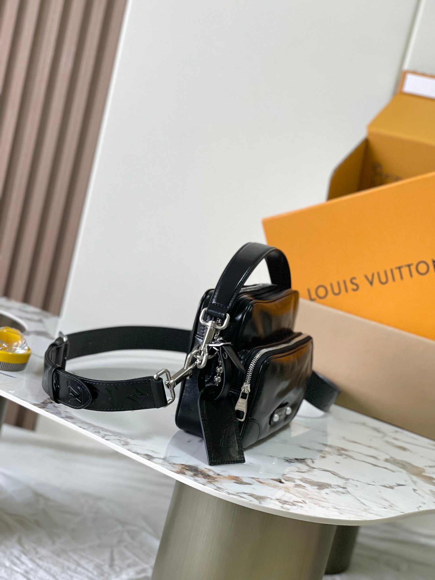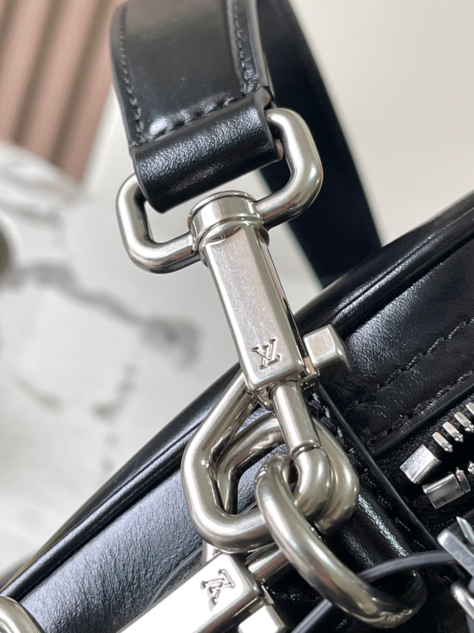 Городская сумка Nil — стильный аксессуар, который идеально подходит для повседневного использования. Чёрная телячья кожа с блеском придаёт ей роскошный вид, а серебристый боковой замок добавляет современный акцент. Основное отделение на молнии обеспечивает безопасность ваших вещей, а подвеска LV Initials на бегунке молнии служит дополнительным элементом брендинга.