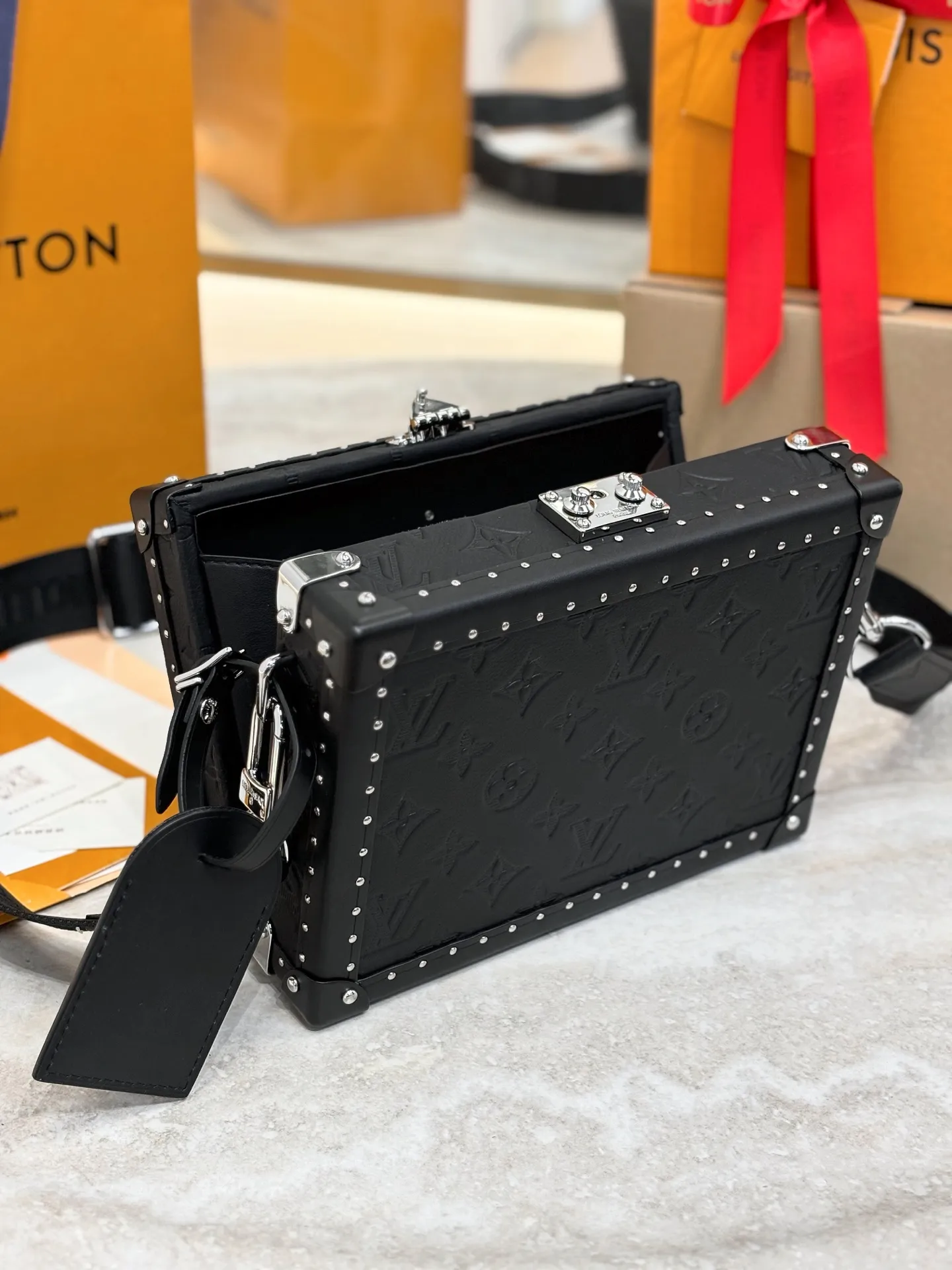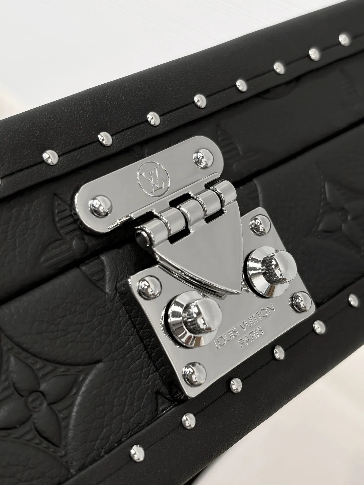 Клатч-бокс из тисненой кожи Monogram Shadow — это элегантный аксессуар, который сочетает в себе традиции и современность. Компактные размеры 24 x 16,5 x 8 см делают его идеальным для вечерних выходов или особых случаев.